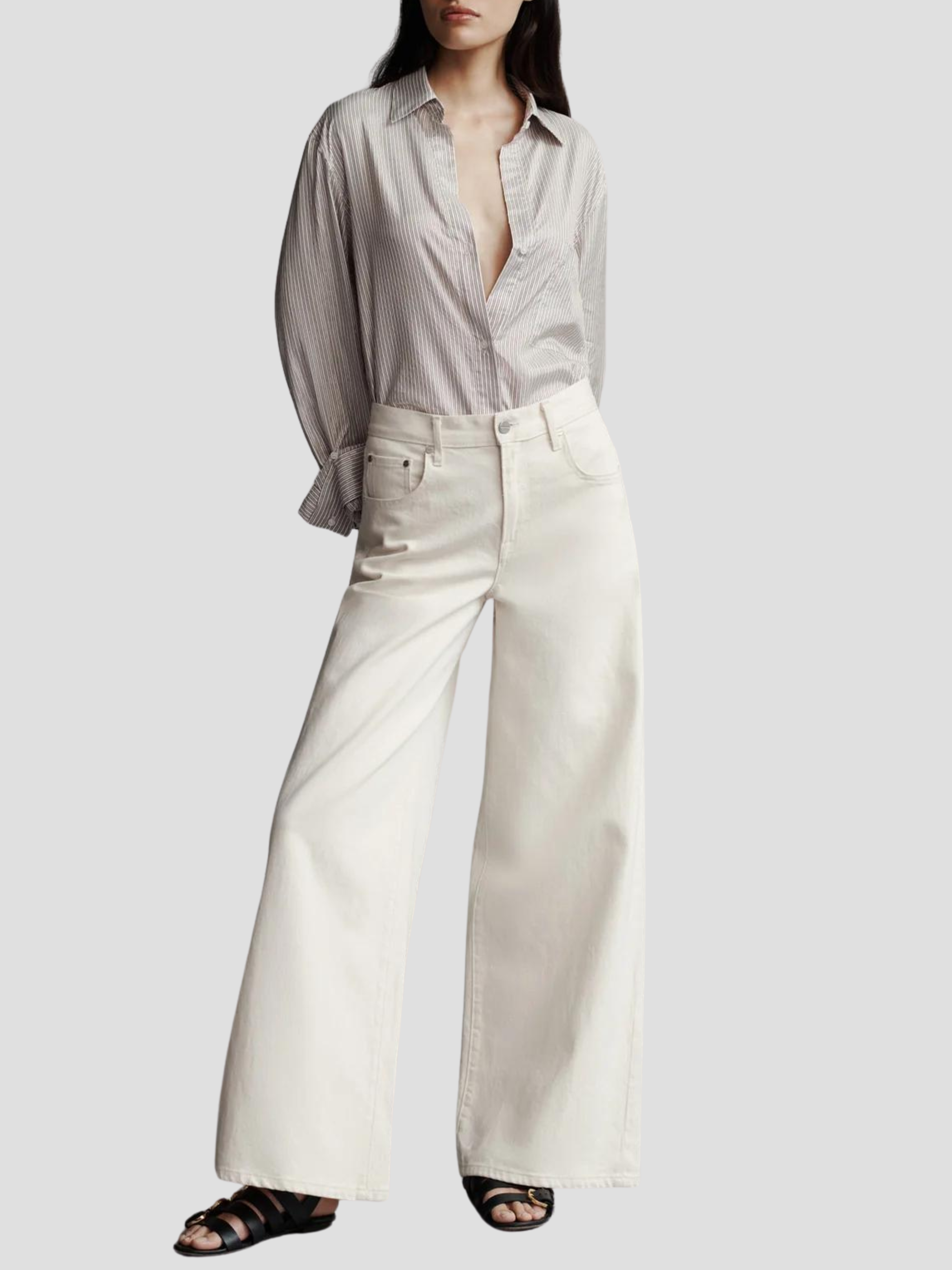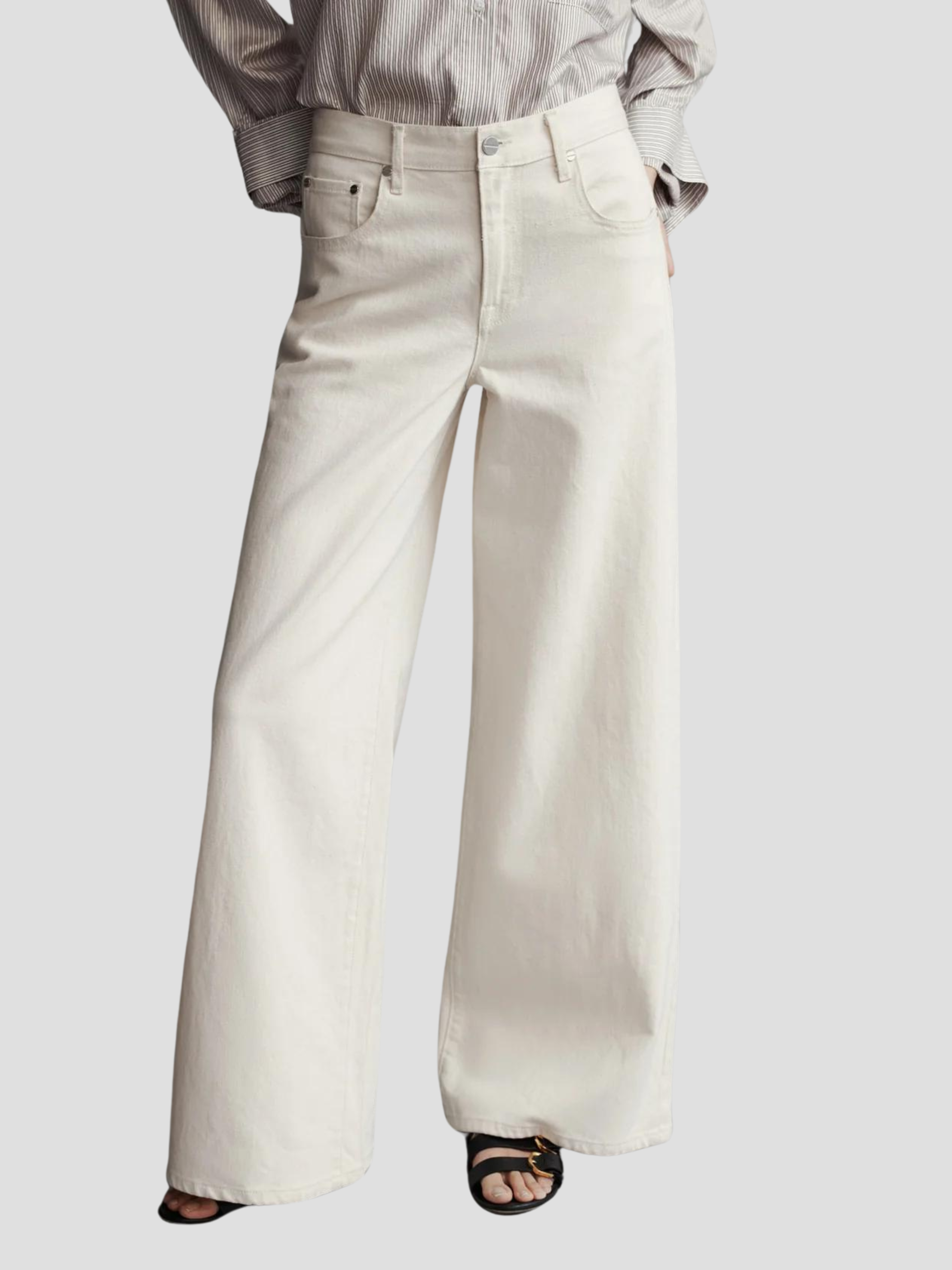 Mid-rise, wide leg jean in soft, lightweight natural denim. The Tiny Dancer is relaxed at the hip, wide at the leg, and features a five-pocket style, detailed with nail head rivet hardware. Complete with a zip-fly, belt loops, and a shank button at the waistband.