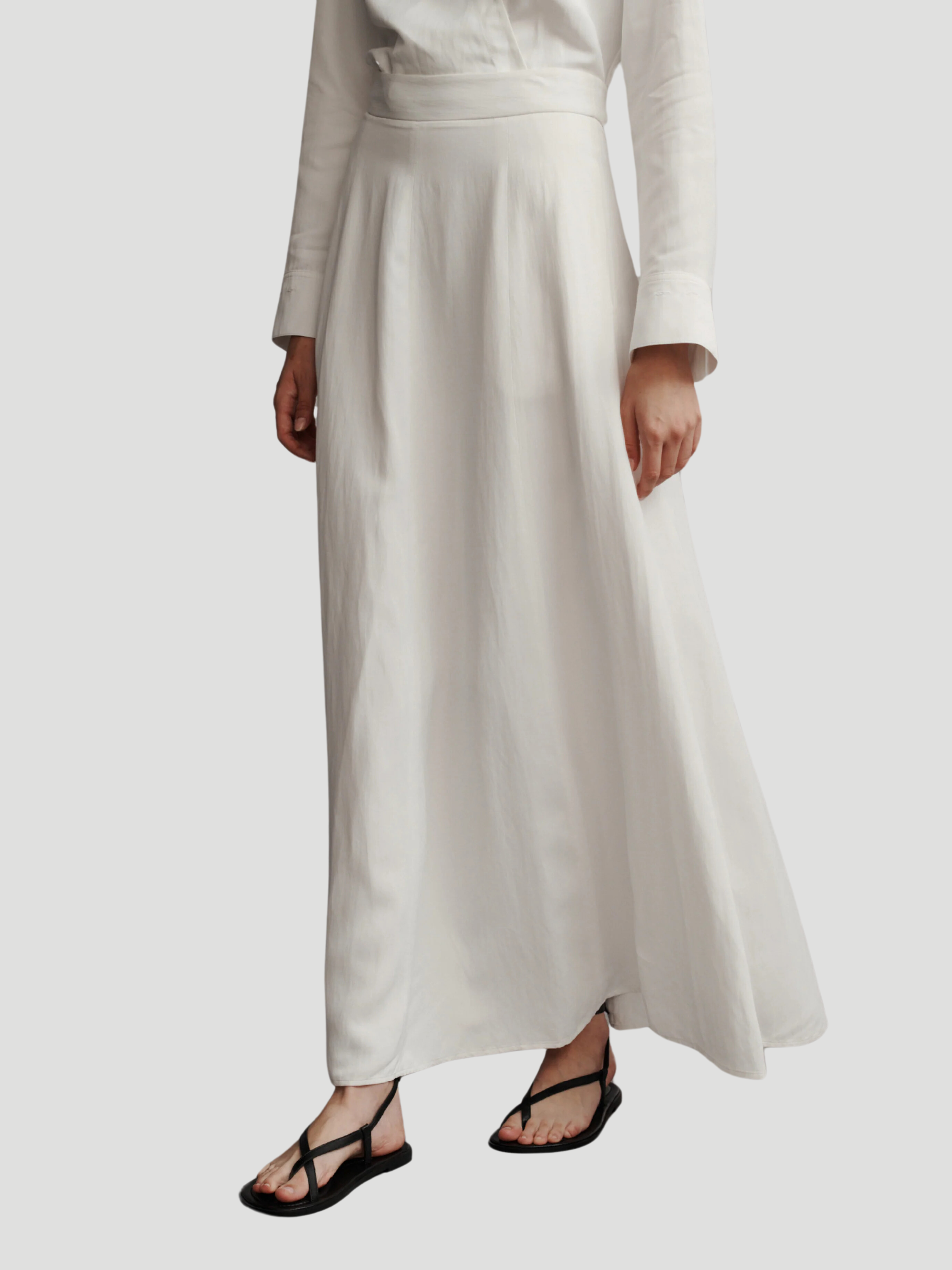 Expertly crafted from soft and breathable cotton poplin, the Kennedy Maxi Skirt in White from TWP offers a comfortable and stylish option for any occasion. With its flowing maxi length, this skirt is perfect for warm weather and can easily be dressed up or down.