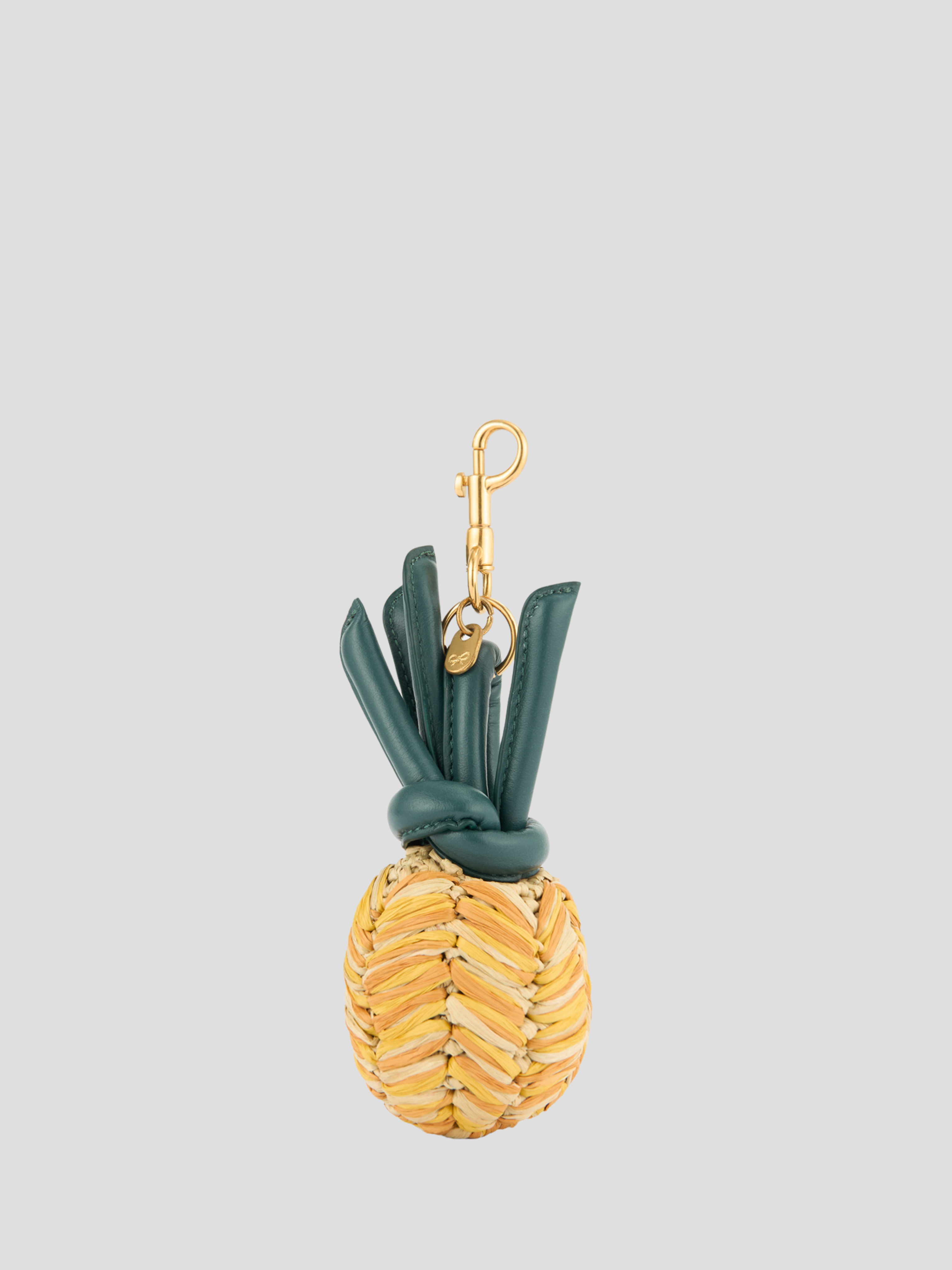 Charm Pineapple in Manilla Raffia with Satin Leather