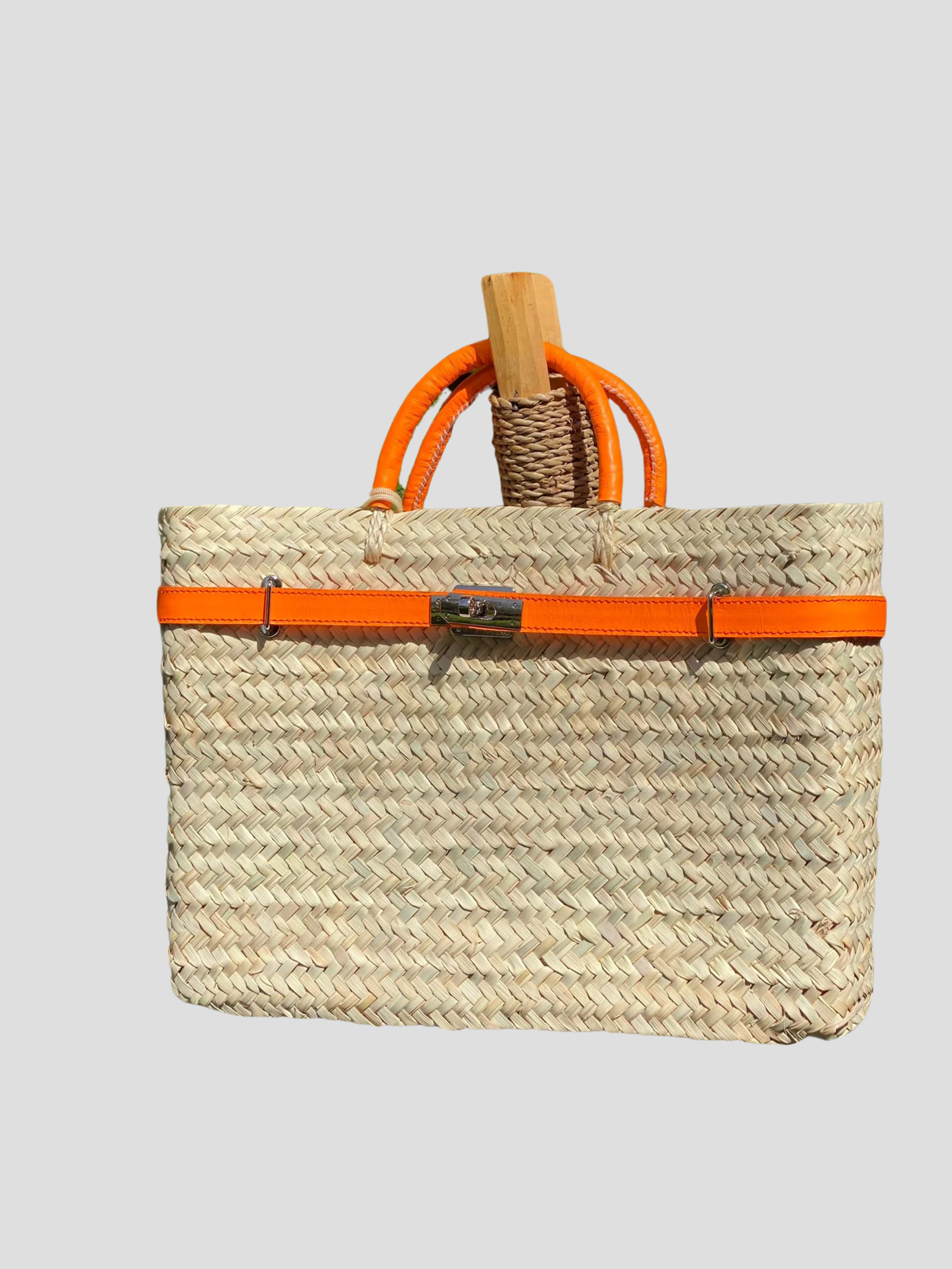 Introducing the Panier Cuir Bag in Orange, a true statement piece for any fashion-forward individual. Made from high-quality leather, this bag combines style and functionality. Its bold orange color adds a pop of color to any outfit. Elevate your wardrobe with this must-have accessory.
