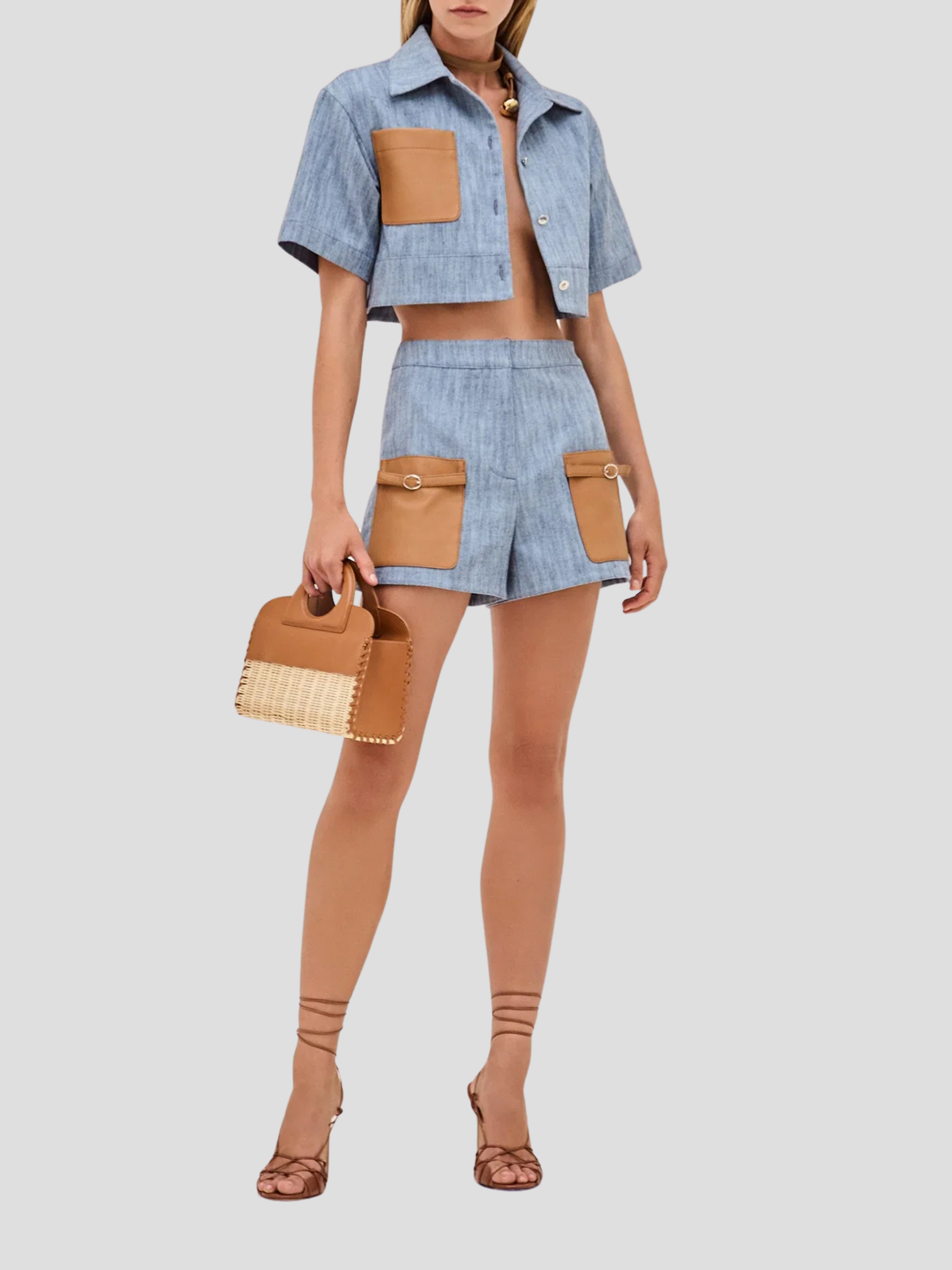 Introducing the Brook Vegan Leather Pocket Top - the perfect blend of fashion and sustainability. Made with high-quality vegan leather, this top is both stylish and eco-friendly. With a convenient pocket for easy storage, it's a must-have for any fashion-forward individual looking to make a positive impact on the environment.