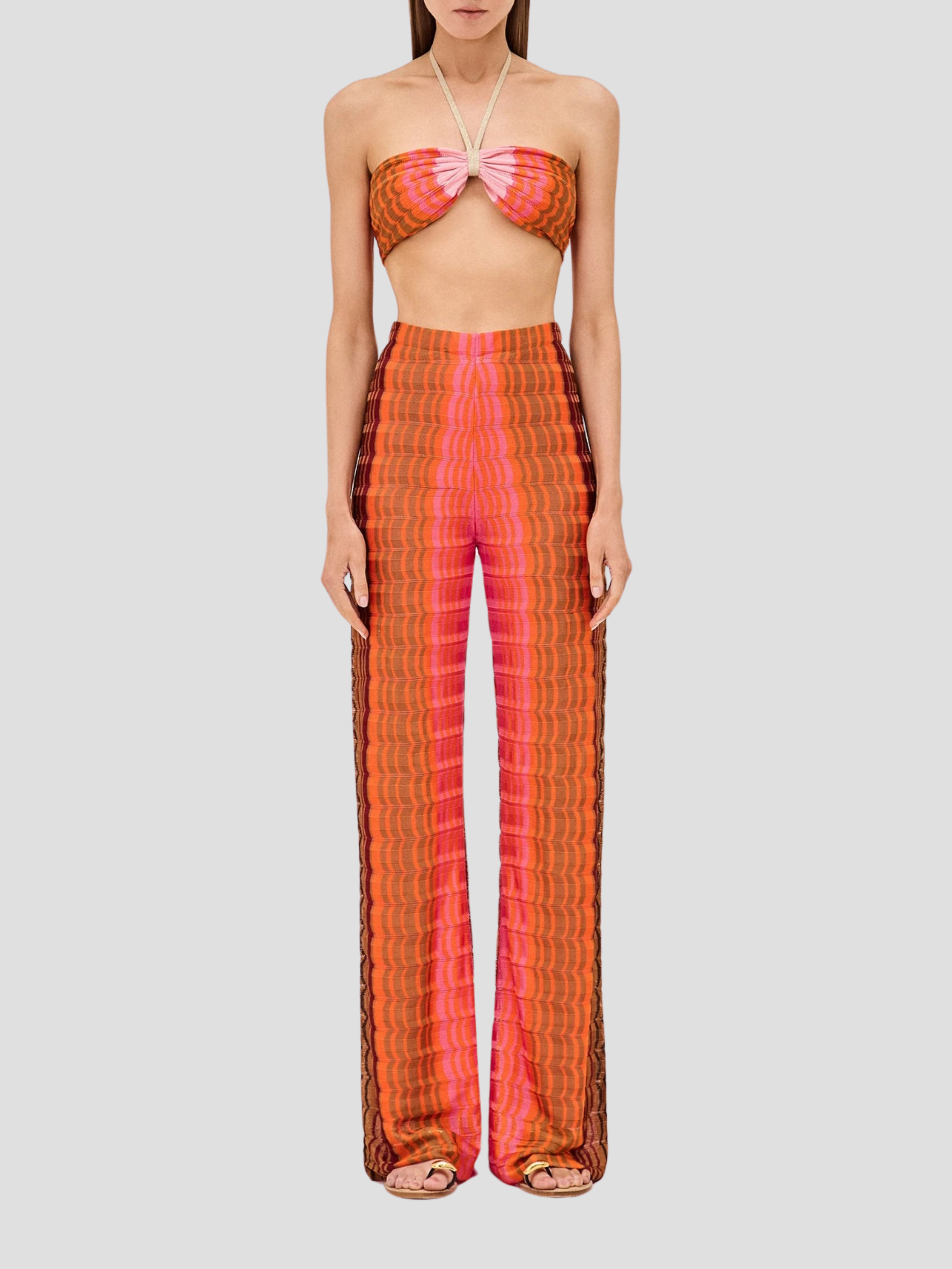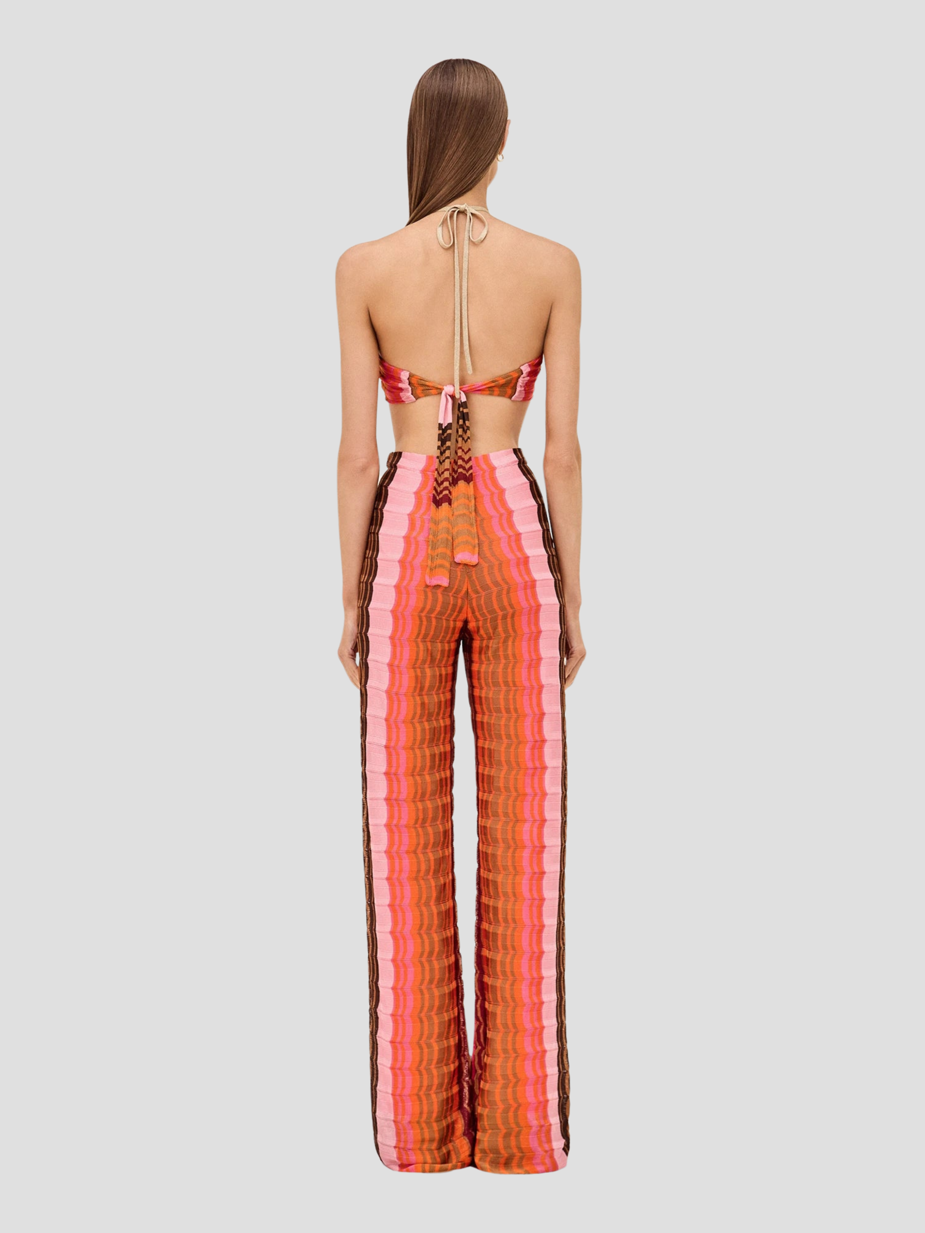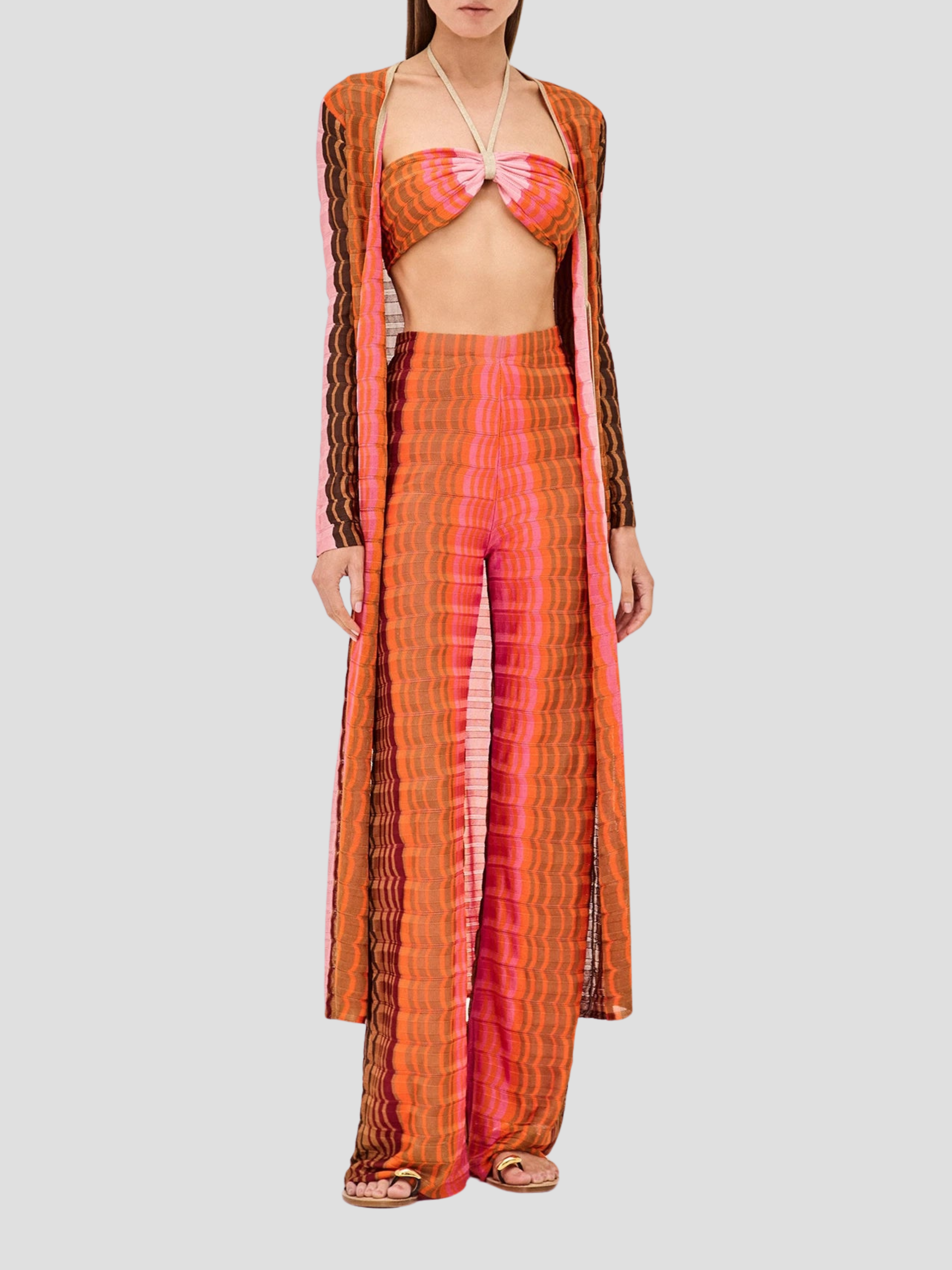 The Belgium Pant offers a range of vibrant colors giving it a unique aesthetic. These woven pants are designed with a chevron knit pattern, a wide-leg fit, and a convenient pull-on waistband. Complete the look by pairing it with the matching Annaliese top and Retti robe.
