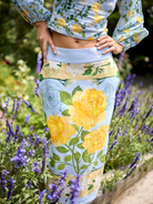 Scarf Pencil Skirt in Ice Blue and Yellow