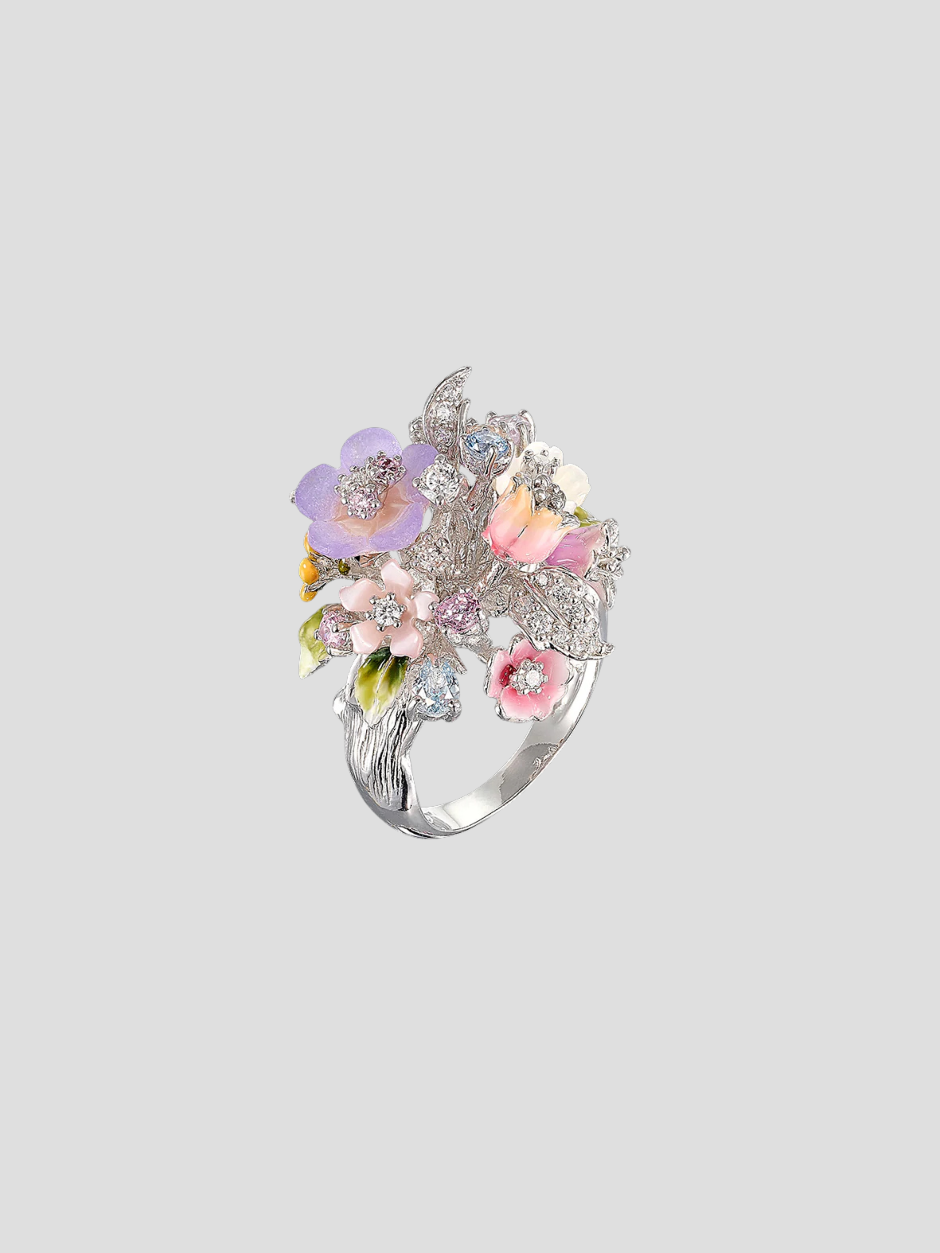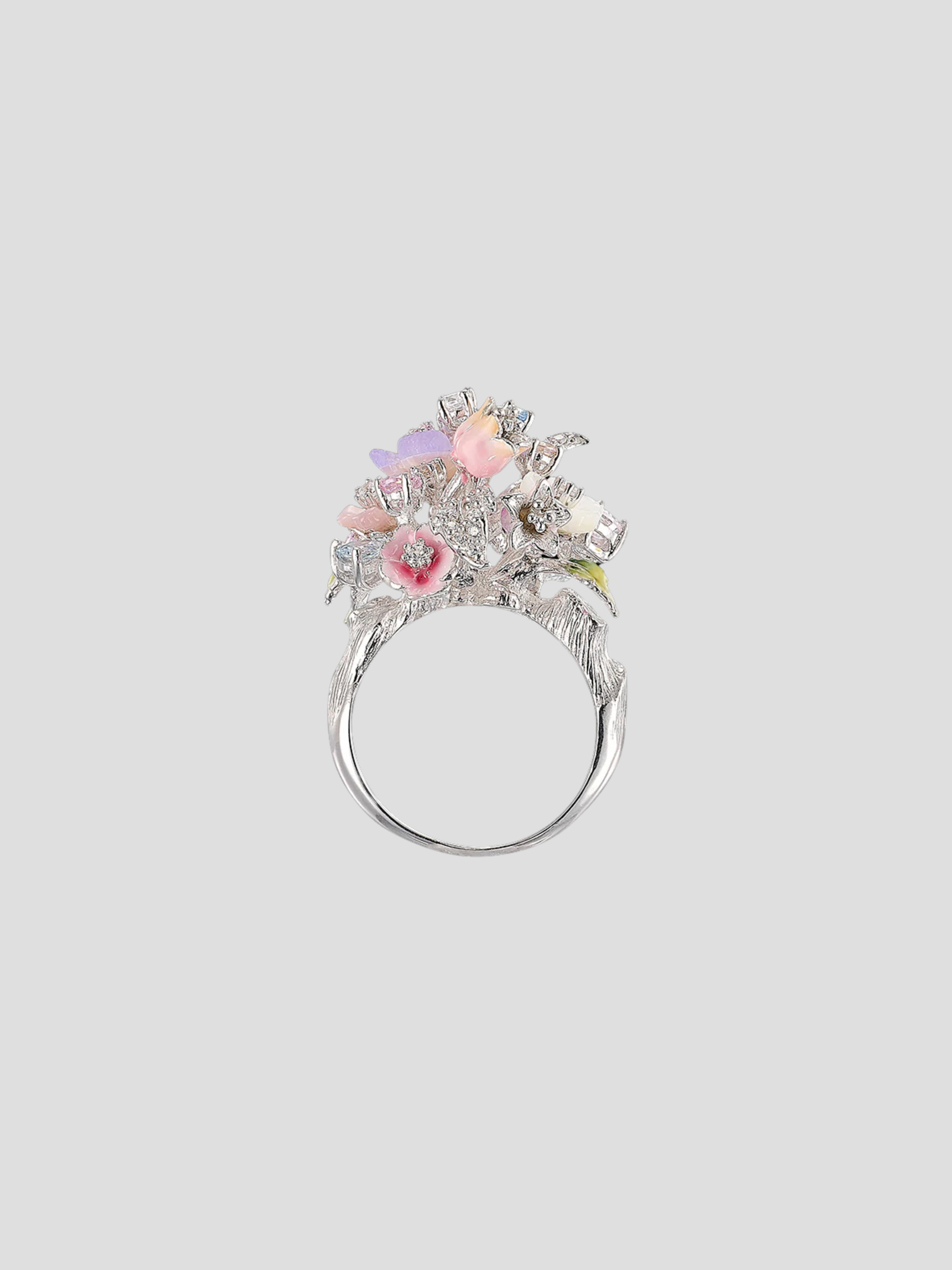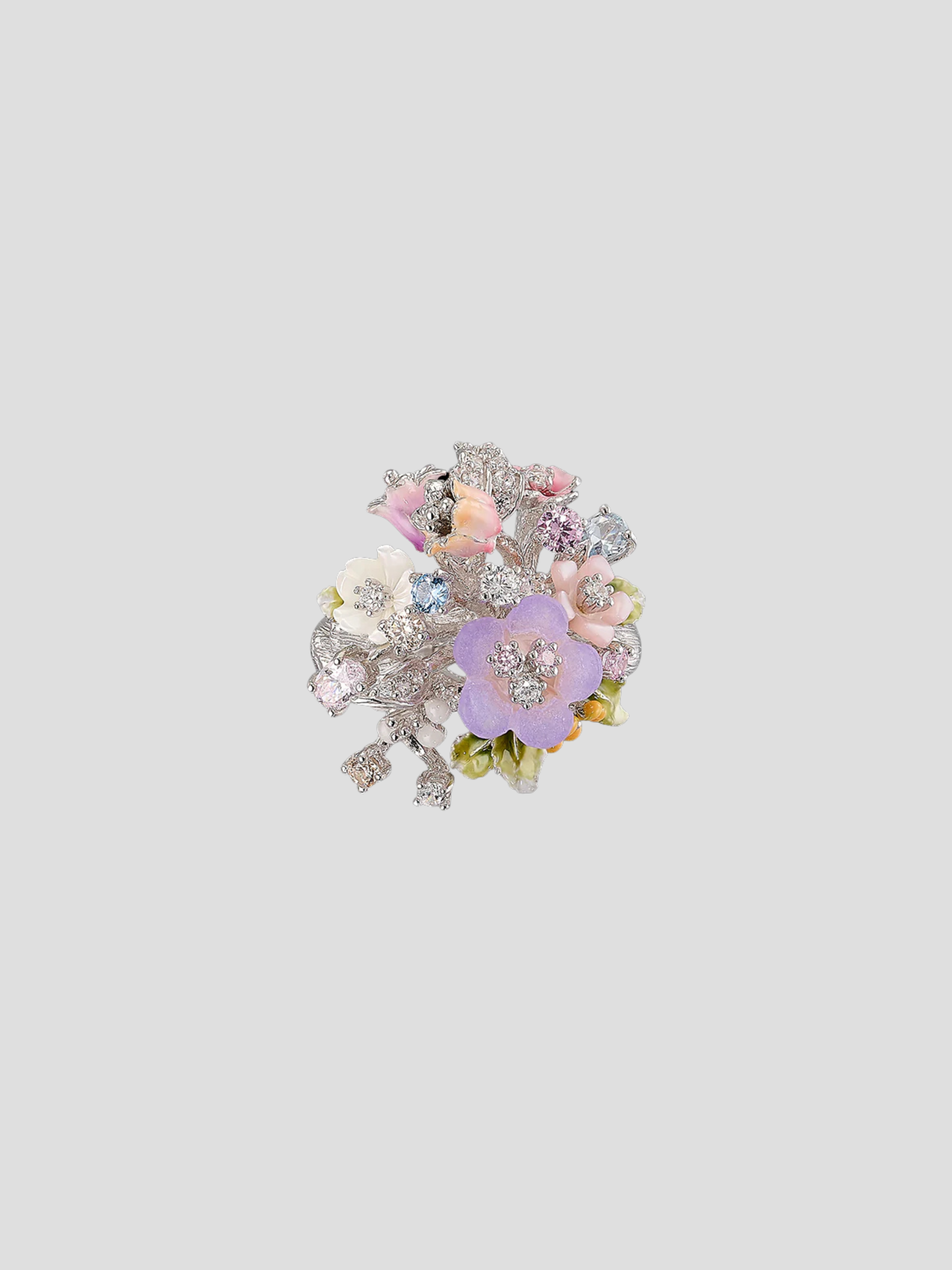 This elegant Lavender Primrose Bouquet Ring is perfect for any occasion. Crafted with care, the delicate lavender and primrose flowers make a stunning statement. Made with high-quality materials, this ring is durable and will last for years to come. Add a touch of sophistication to your jewelry collection with this beautiful ring.