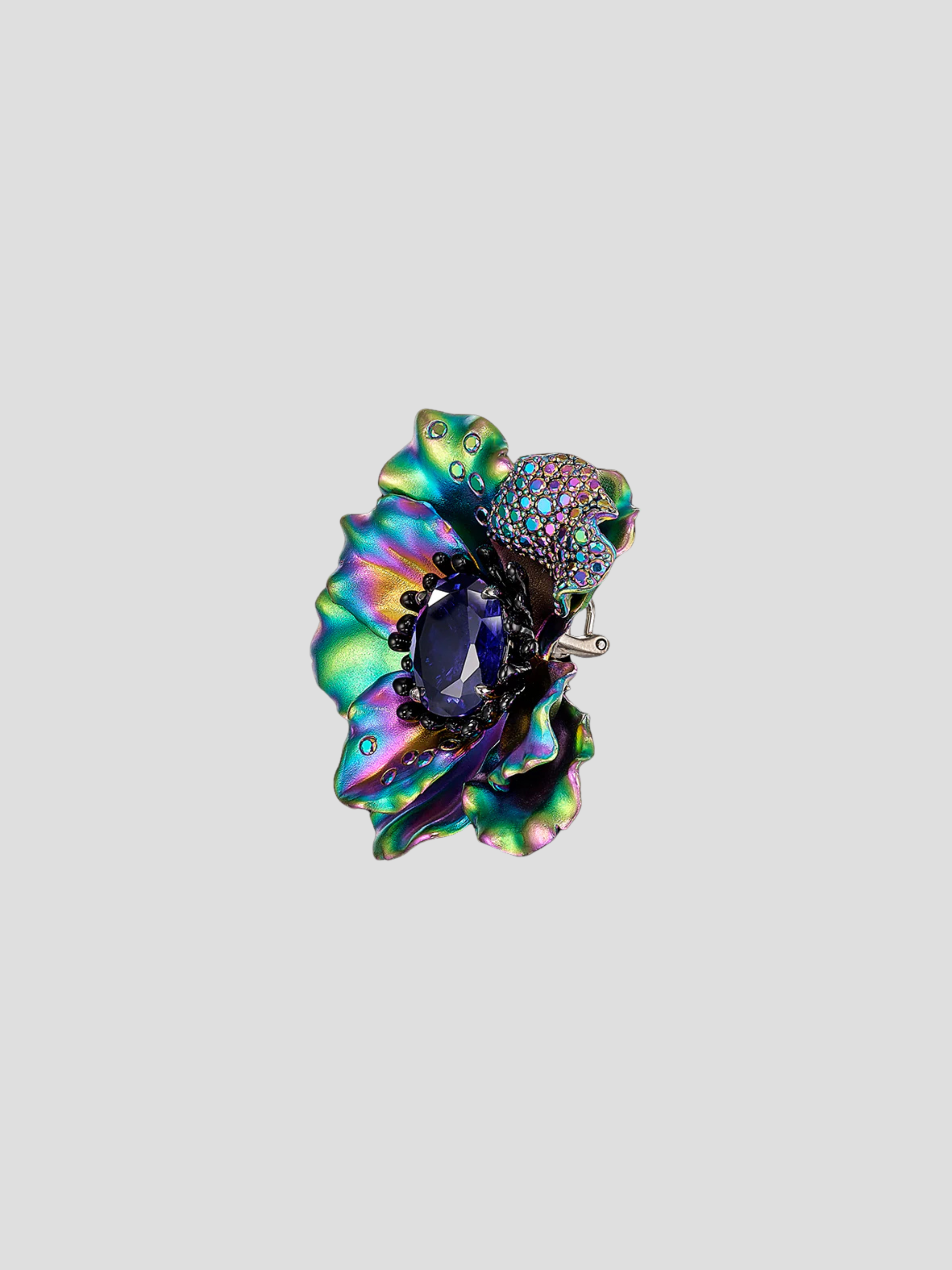 Indulge in luxury with our Rainbow Sapphire Poppy Earrings. These exquisite earrings boast beautiful rainbow sapphires, carefully arranged to resemble poppy flowers. Make a statement with these elegant and exclusive earrings, perfect for any occasion. Elevate your style today.