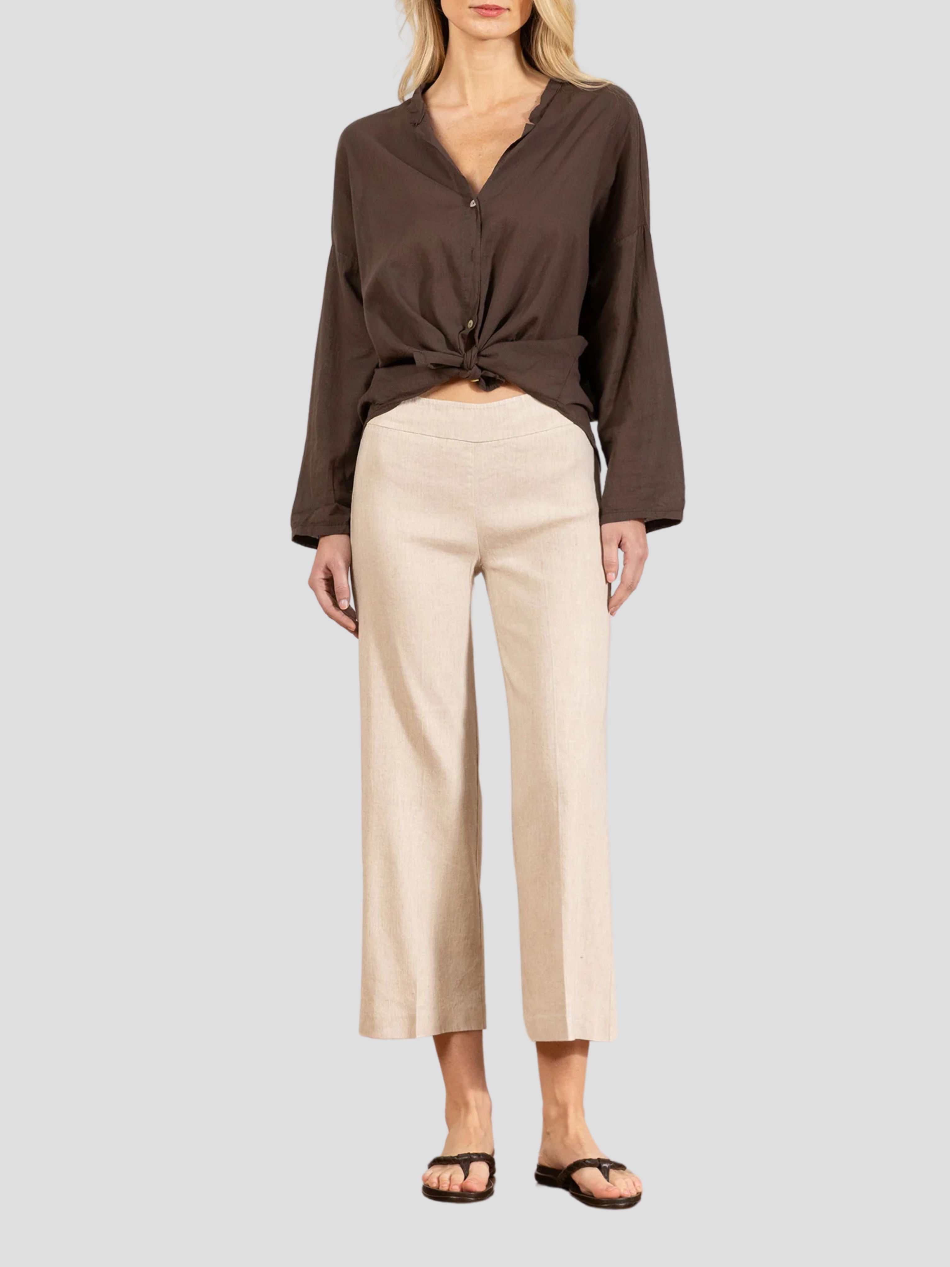 Alex Crop Wide Leg Pant in Oatmeal Linen