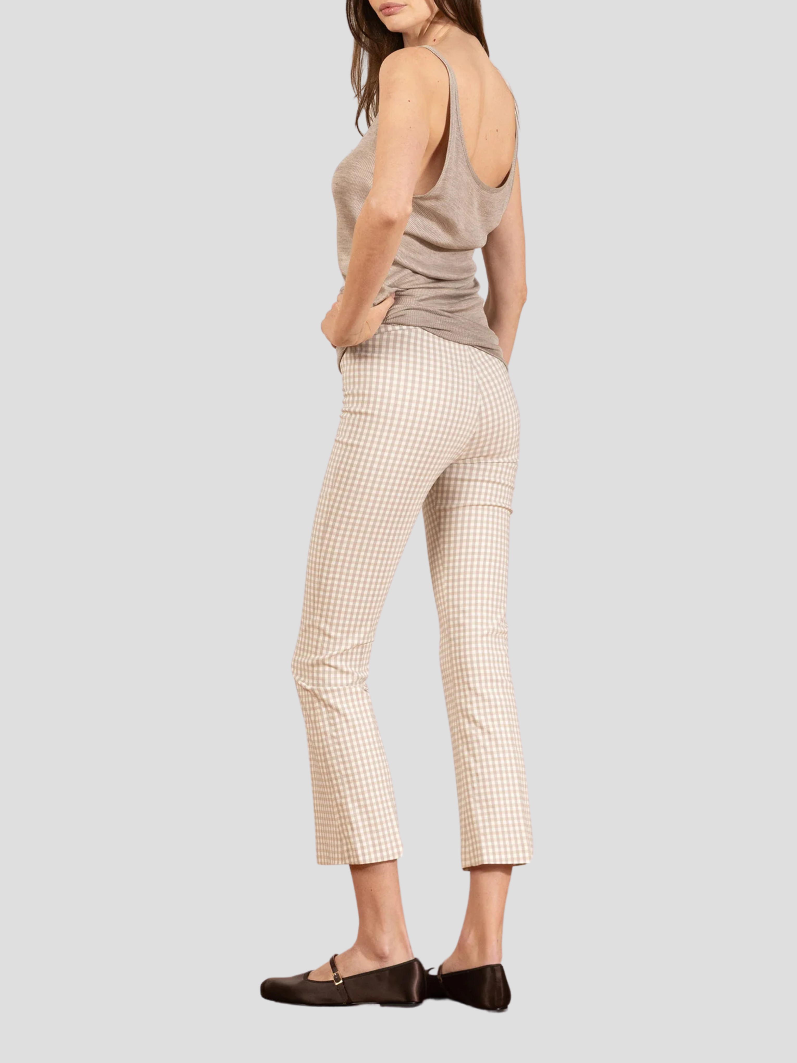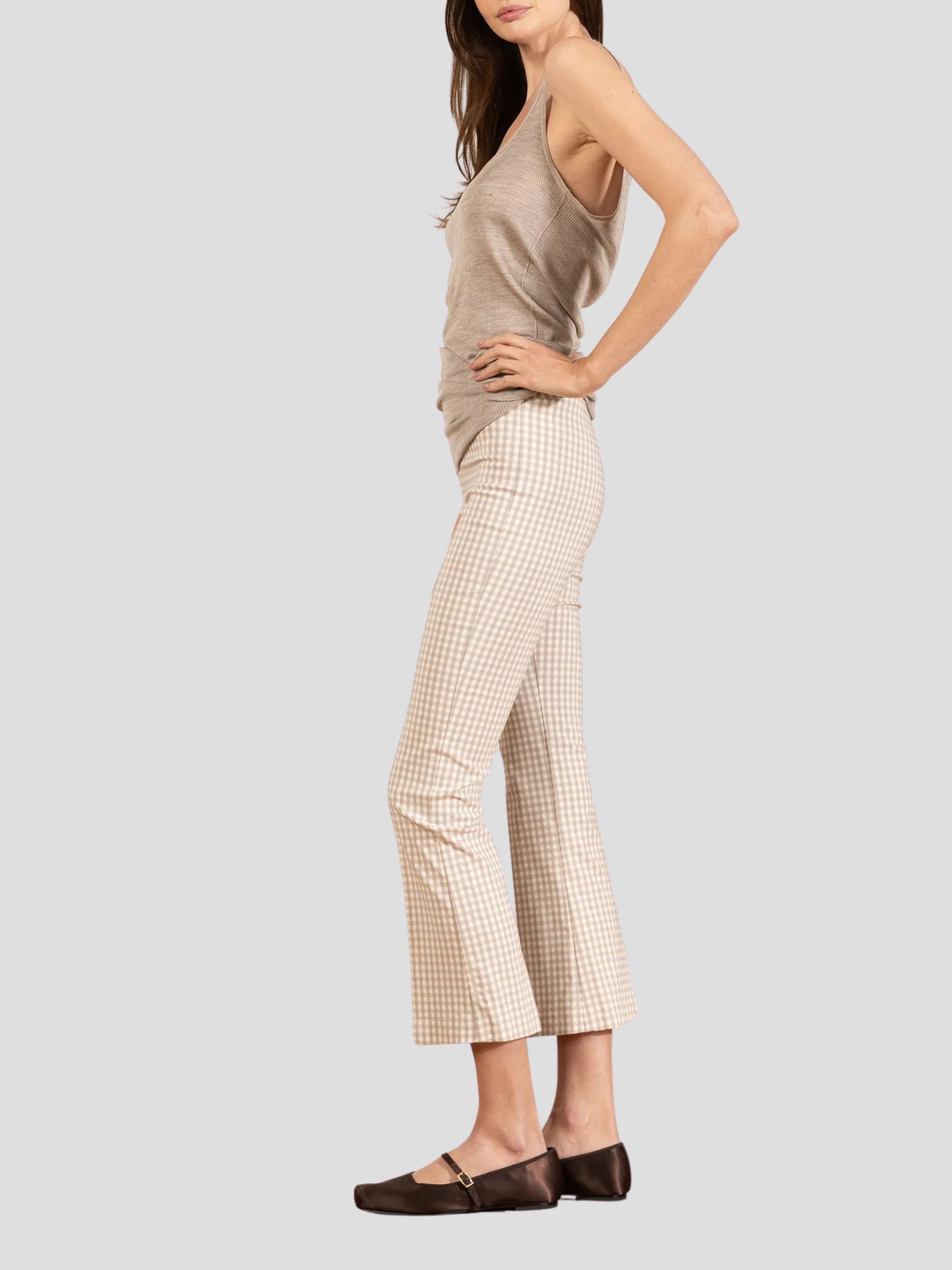 Leo Crop Flare Pant in Beige Check