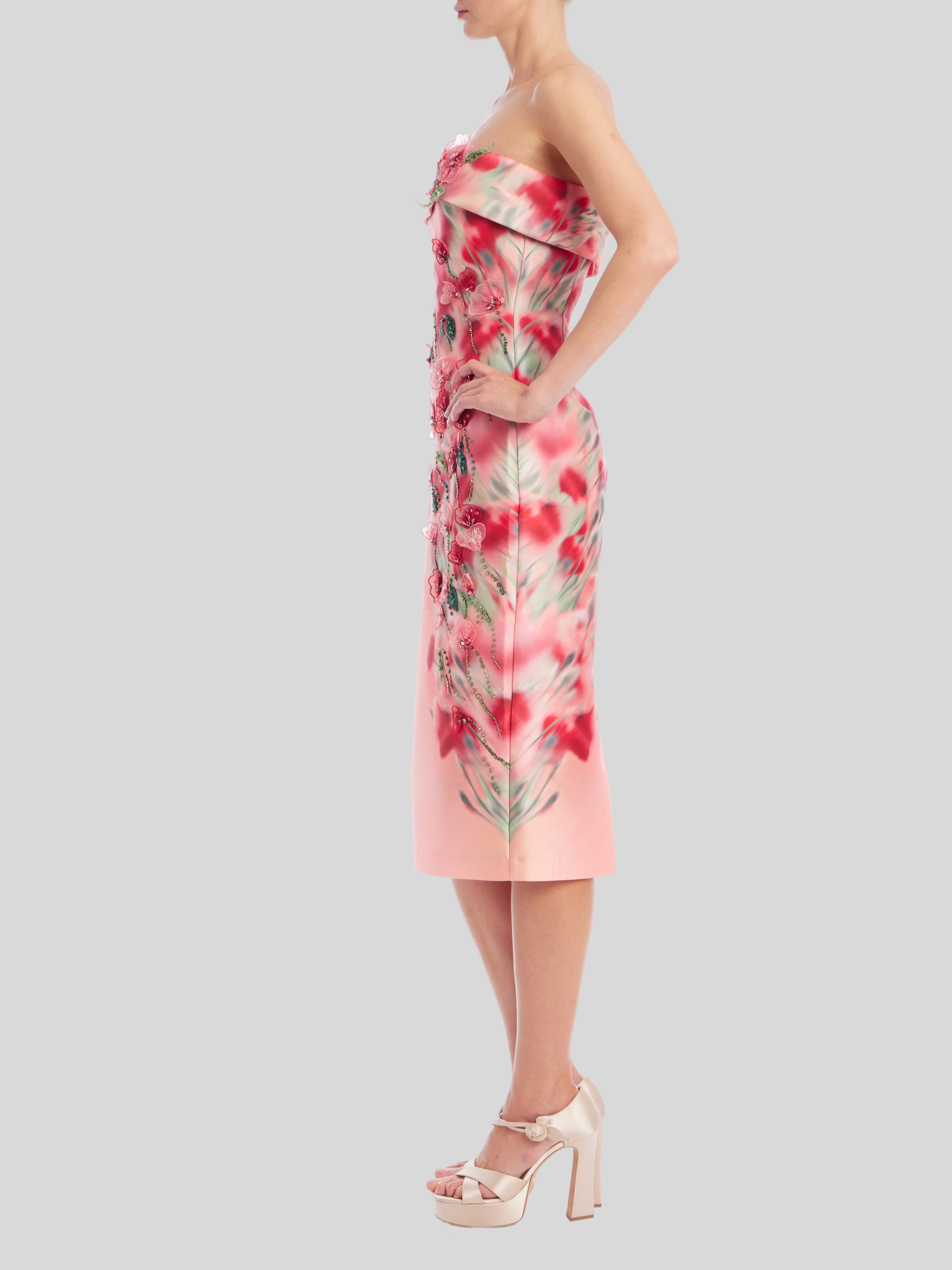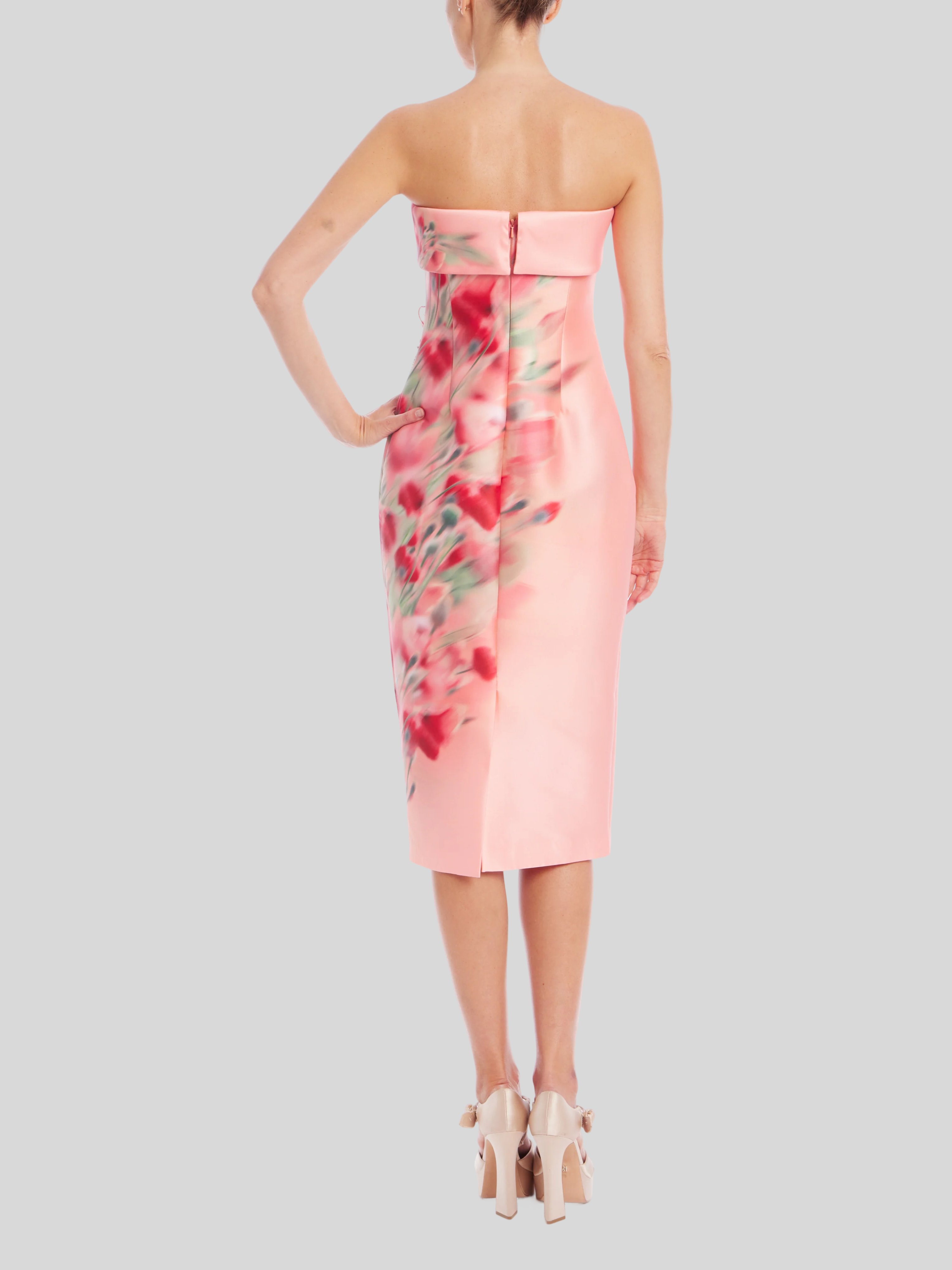 Strapless Floral Dress in Pink Multi