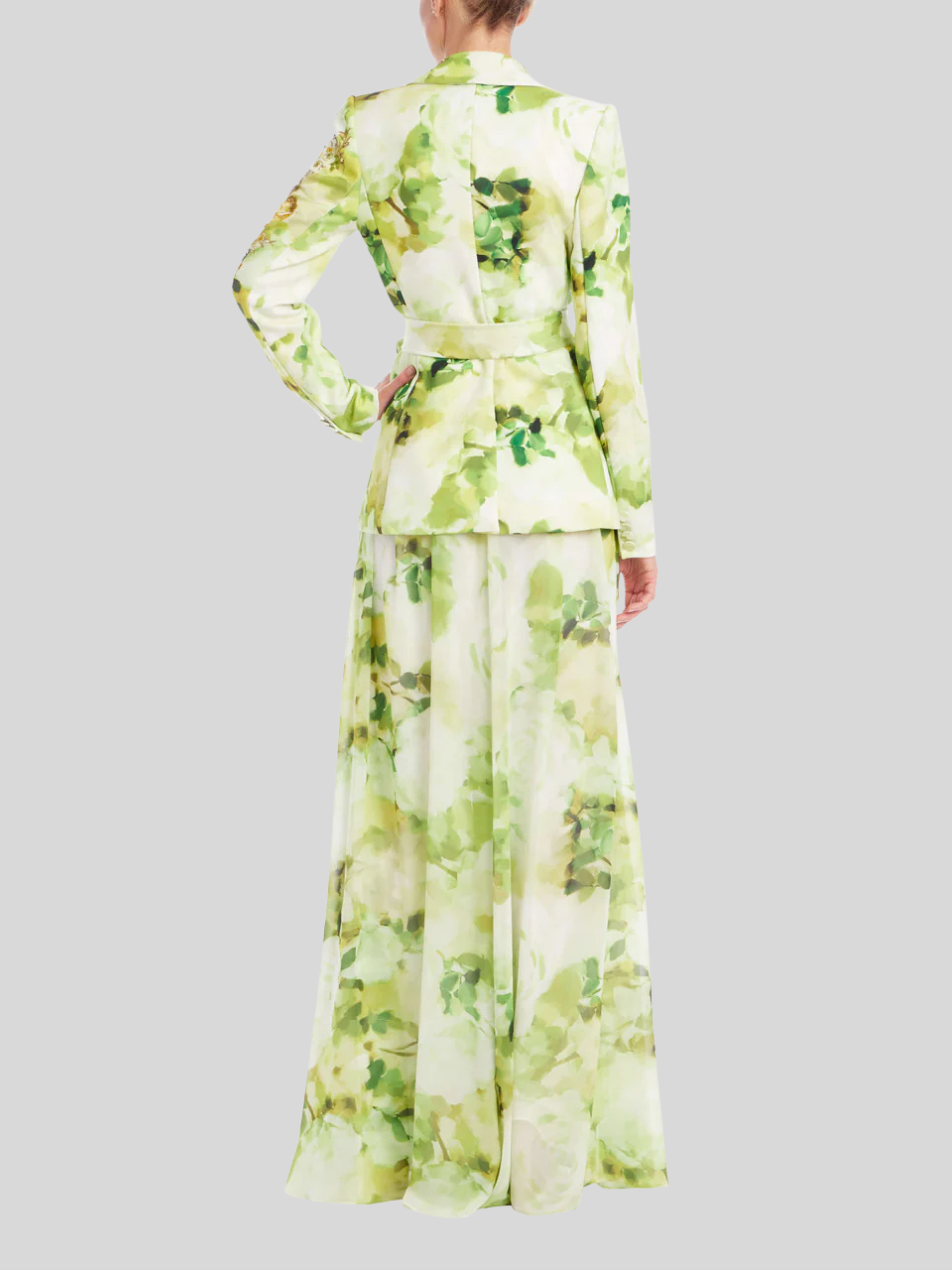 The Badgley Mischka Floral Print Palazzo Pant offers sophisticated style and effortless comfort. These wide leg pants are crafted from a lightweight georgette fabric, ensuring a flowy and flattering silhouette. The vibrant printed floral design makes a bold statement, perfect for work, cocktail events, or any dressy occasion. Pair these stunning palazzo pant with the matching wrap-blazer for a complete and polished look. These Badgley Mischka pants are a must-have addition to your wardrobe.