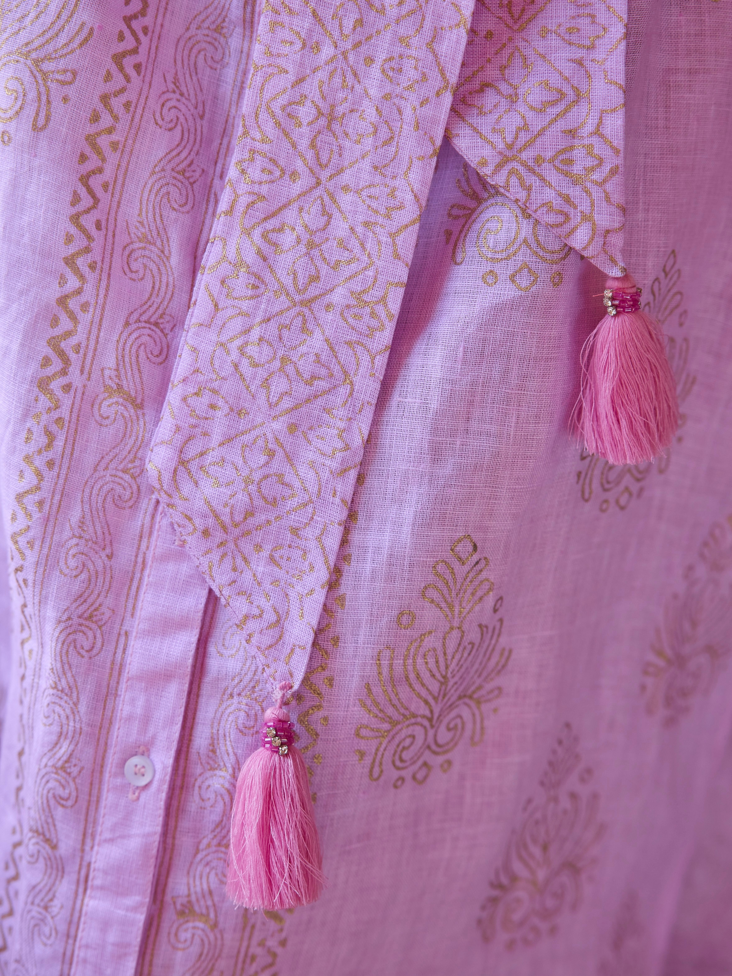 Indulge in luxury with our Rani 52" Shirtdress in Pink. Crafted with exquisite attention to detail, this stunning piece boasts a flattering silhouette and a bold, eye-catching color. Perfect for any occasion, this dress will elevate your style and make you stand out in a crowd. Be unique, be elegant, be Rani.