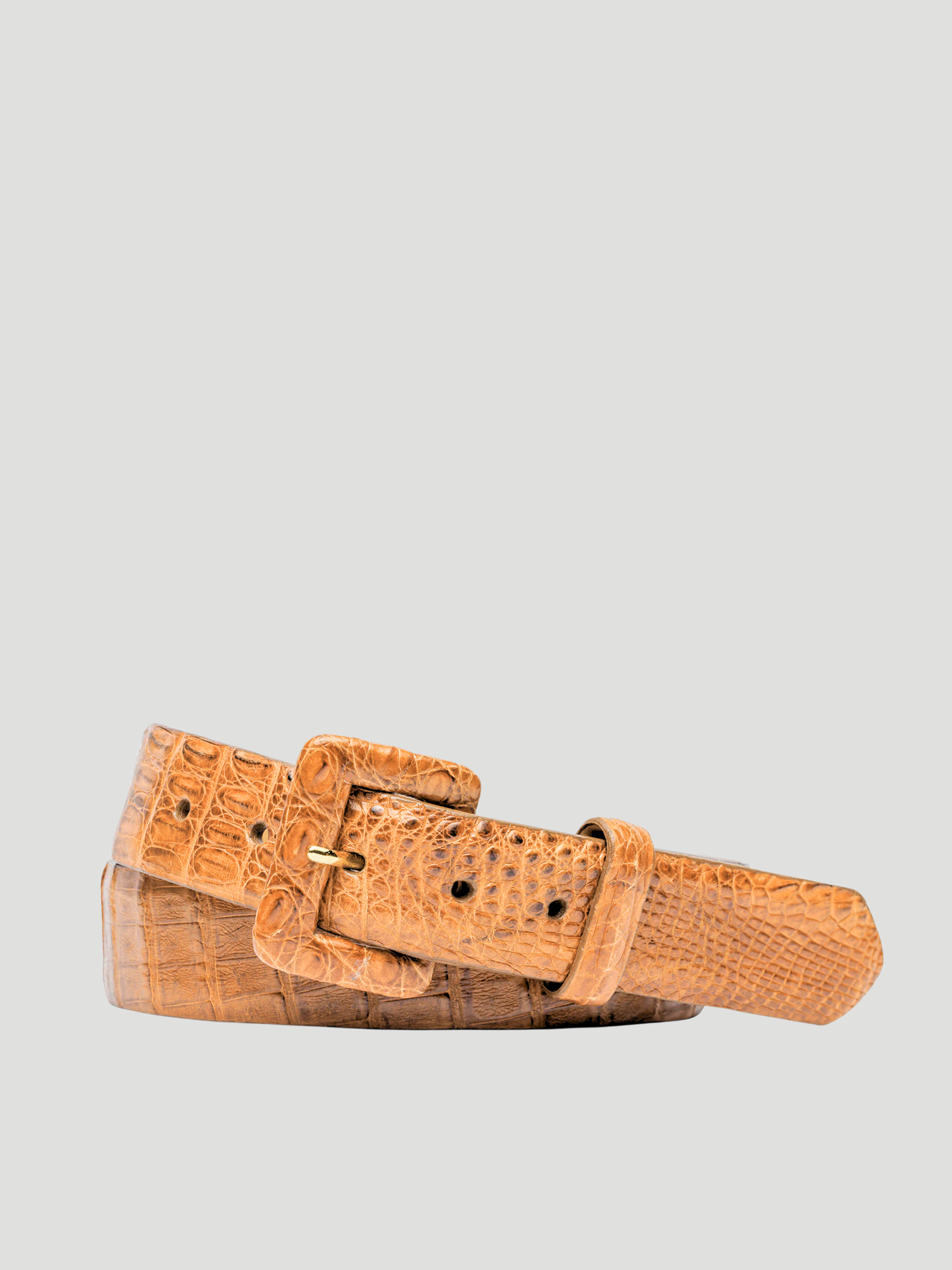 Caiman Crocodile Belt with Covered Buckle in Saddle Tan