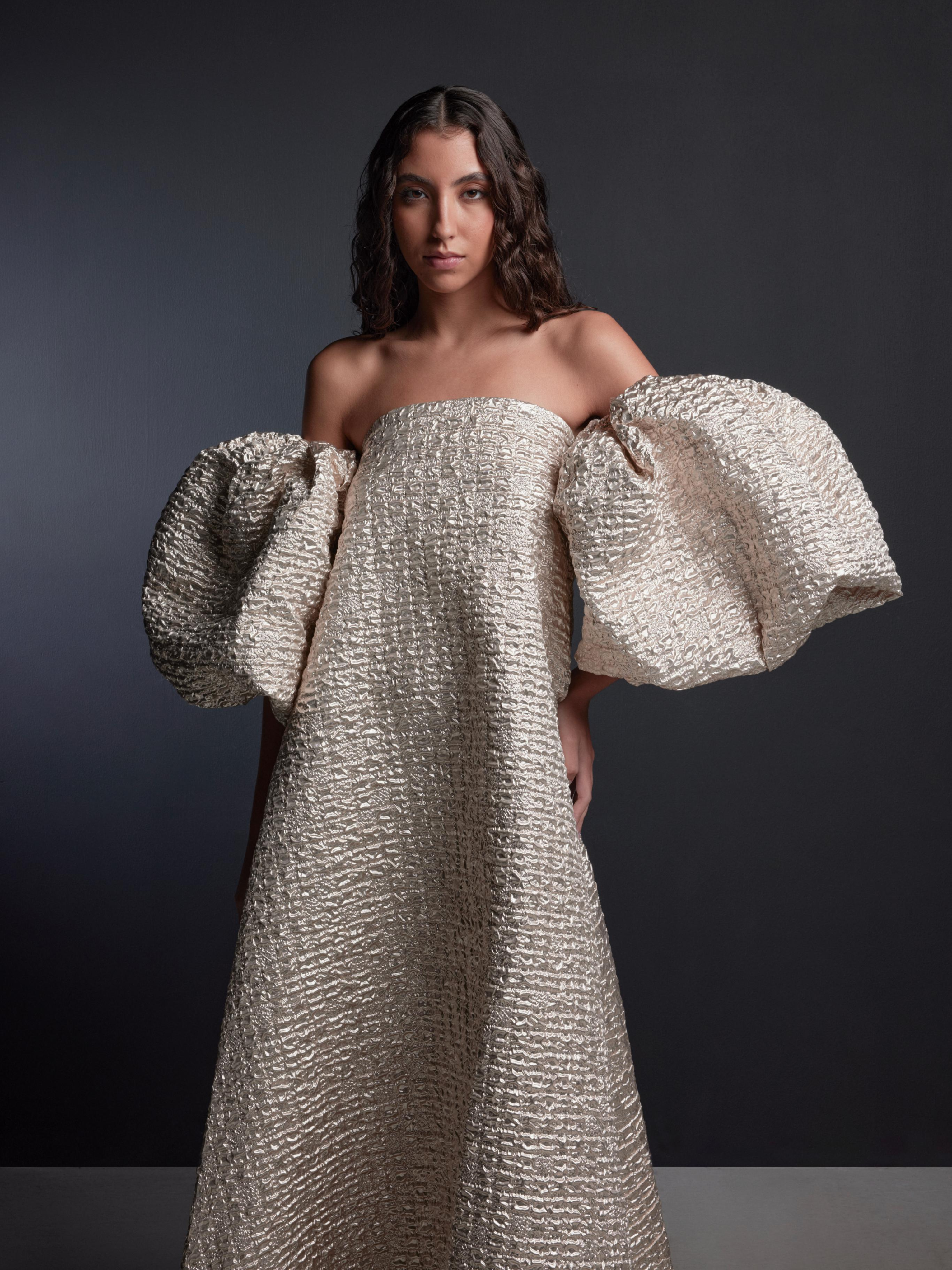 Square Neck Crop Blouse in Ice Blue and Yellow