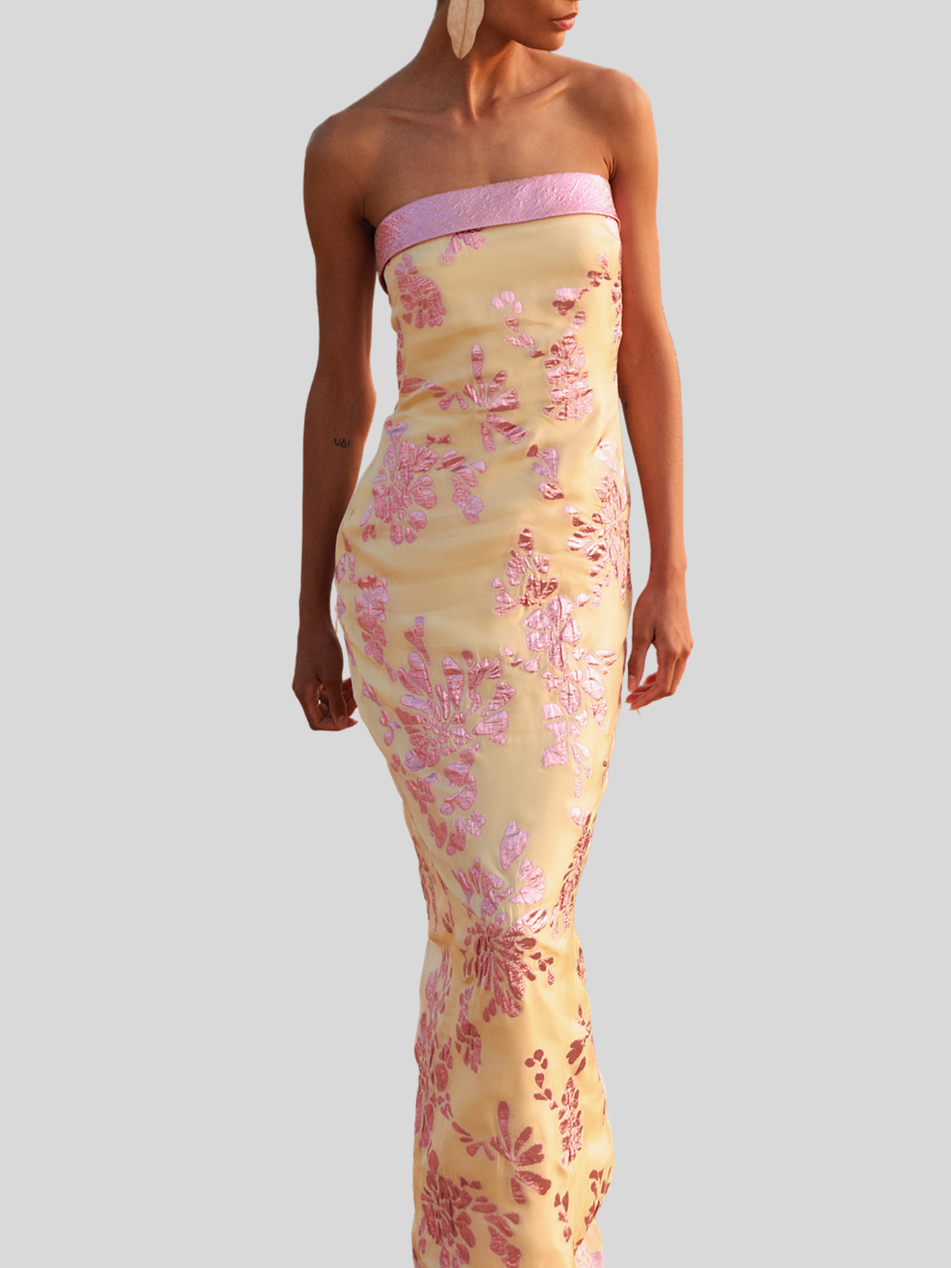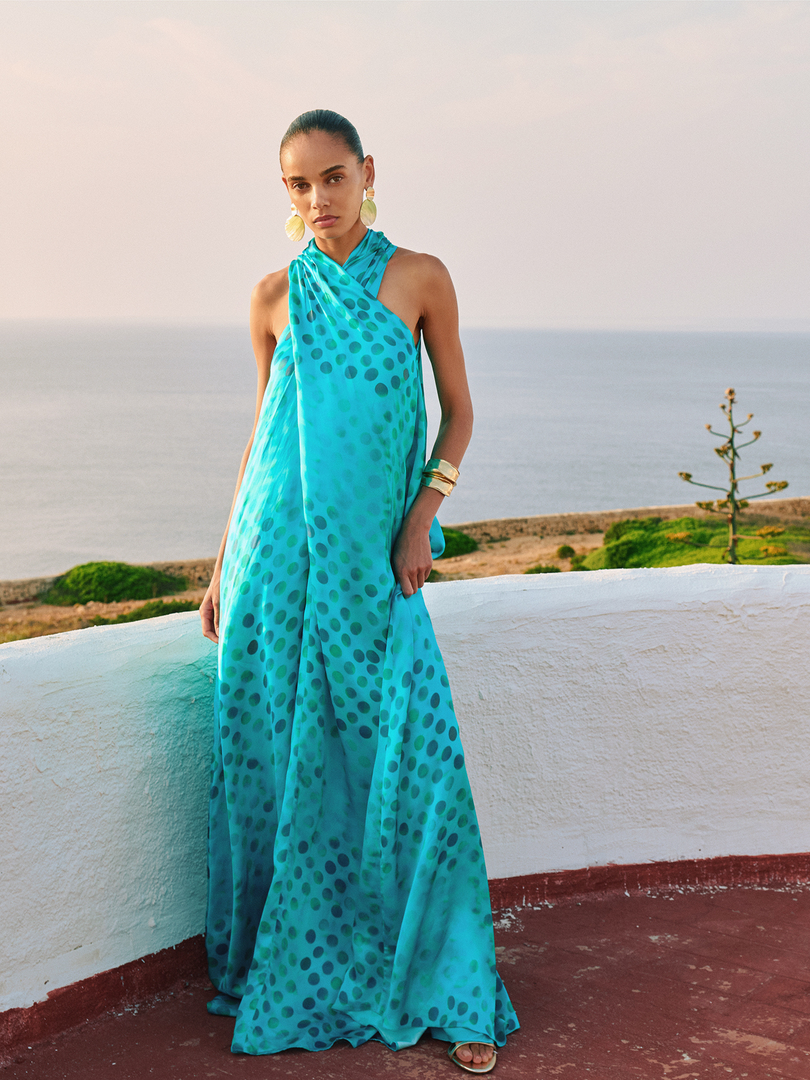 Scarf Pencil Skirt in Ice Blue and Yellow