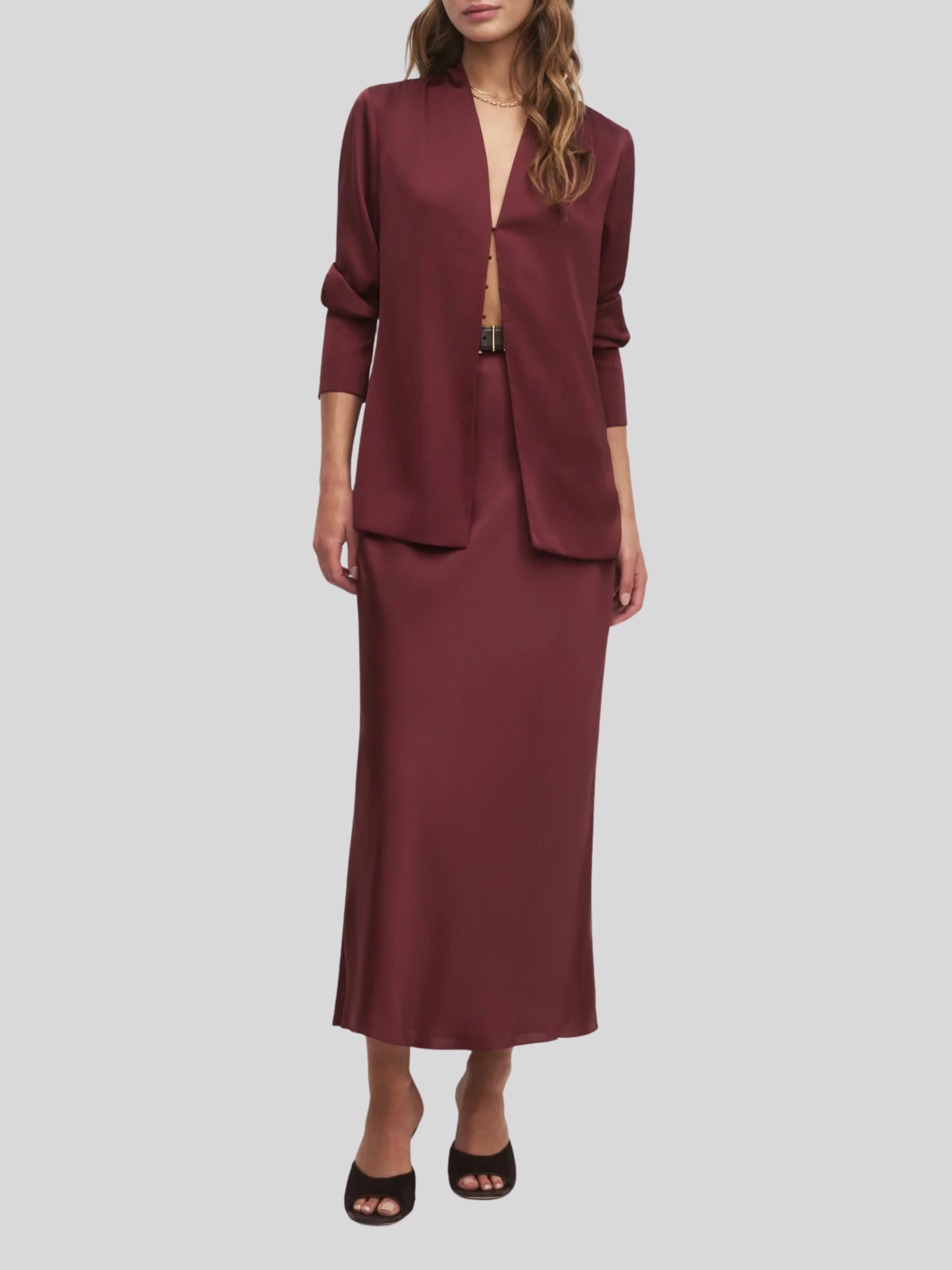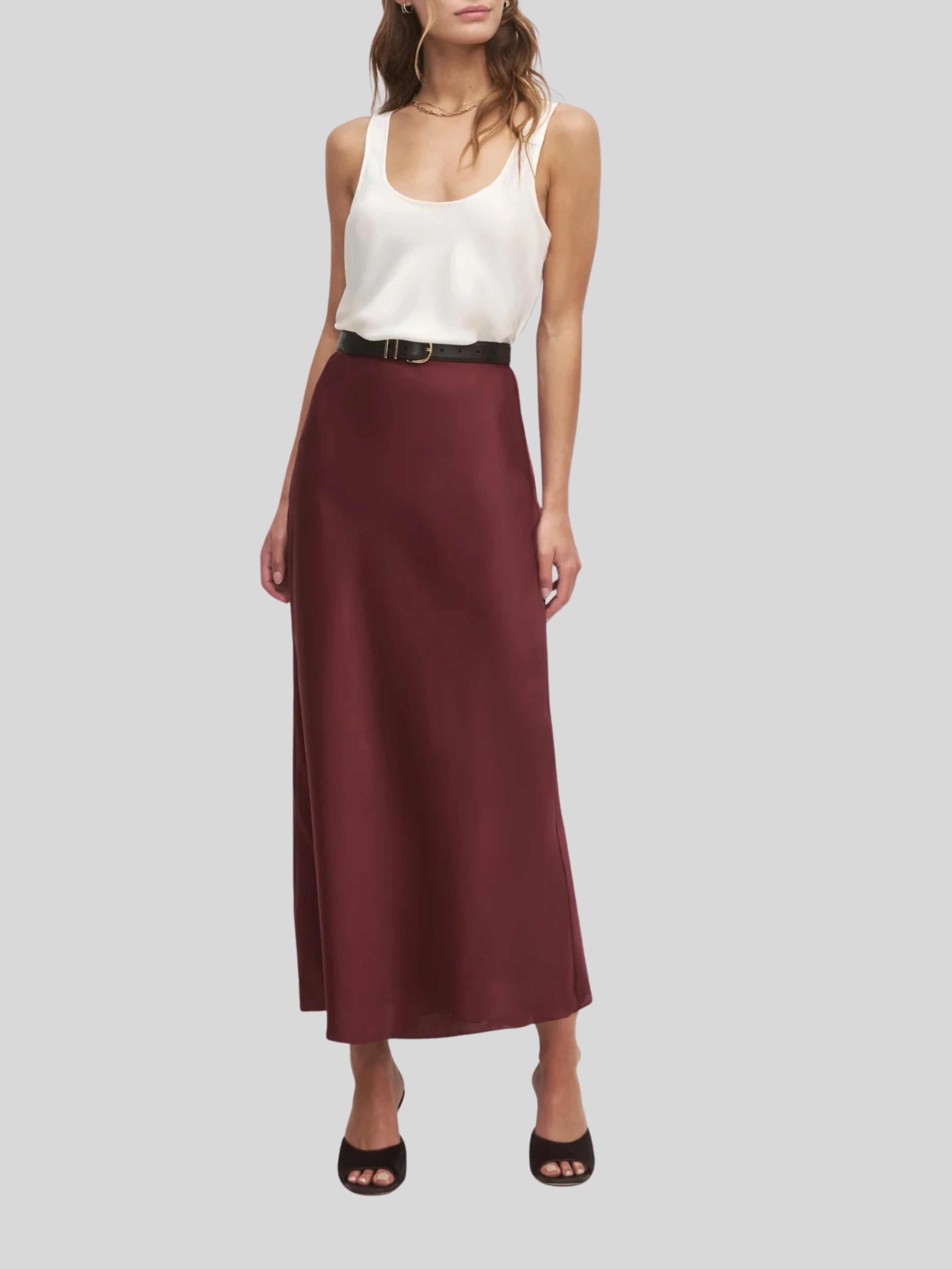 For special occasions. Any occasion, actually. The bias-cut Favorite Skirt in Vino has a high, pull-on waist and a billowy fit that hugs in all the right places. Measuring 34.5" from waistband to hem, it's cut from a soft viscose blend with a delicate feel--and it's super easy to style up or down.