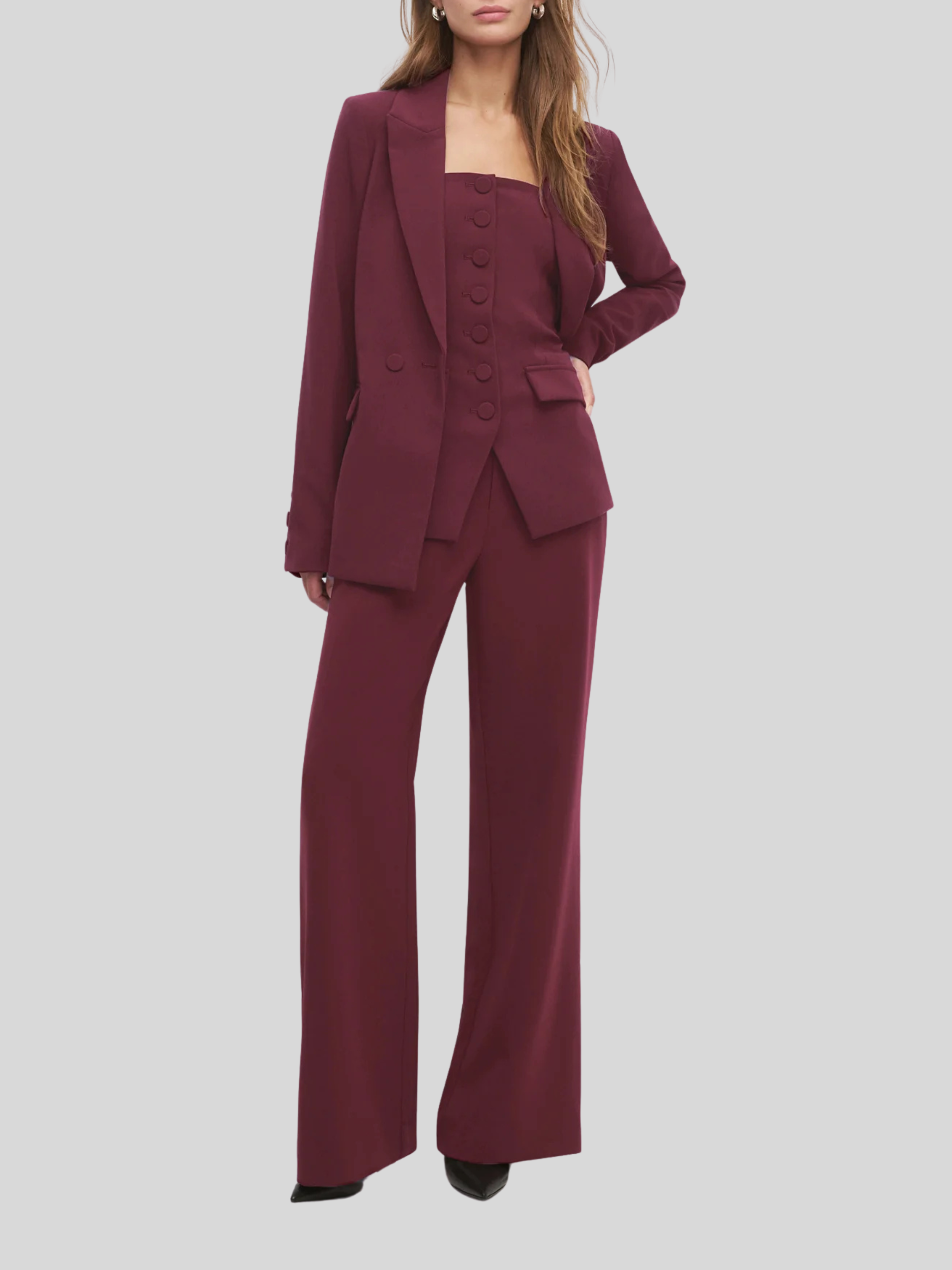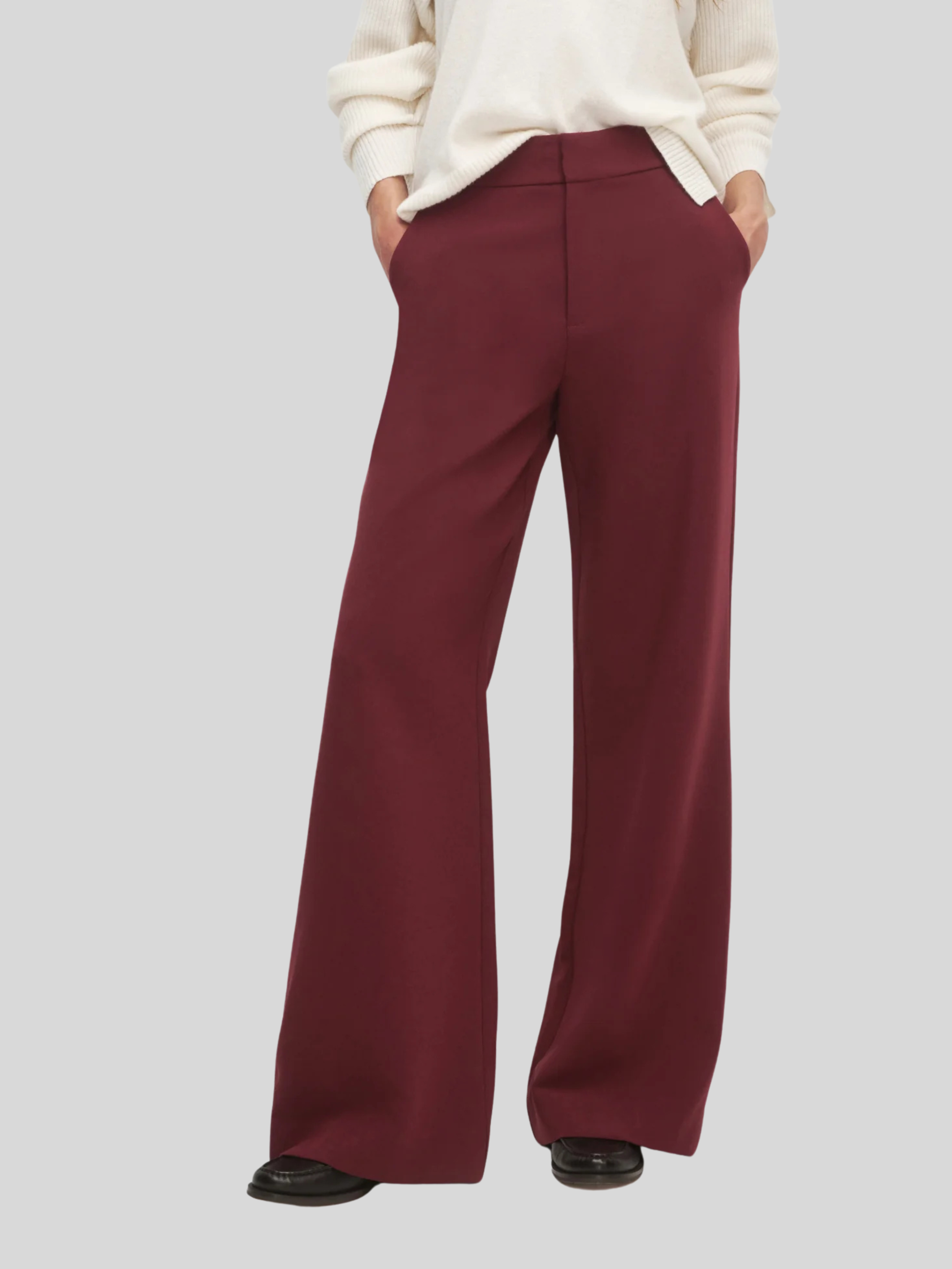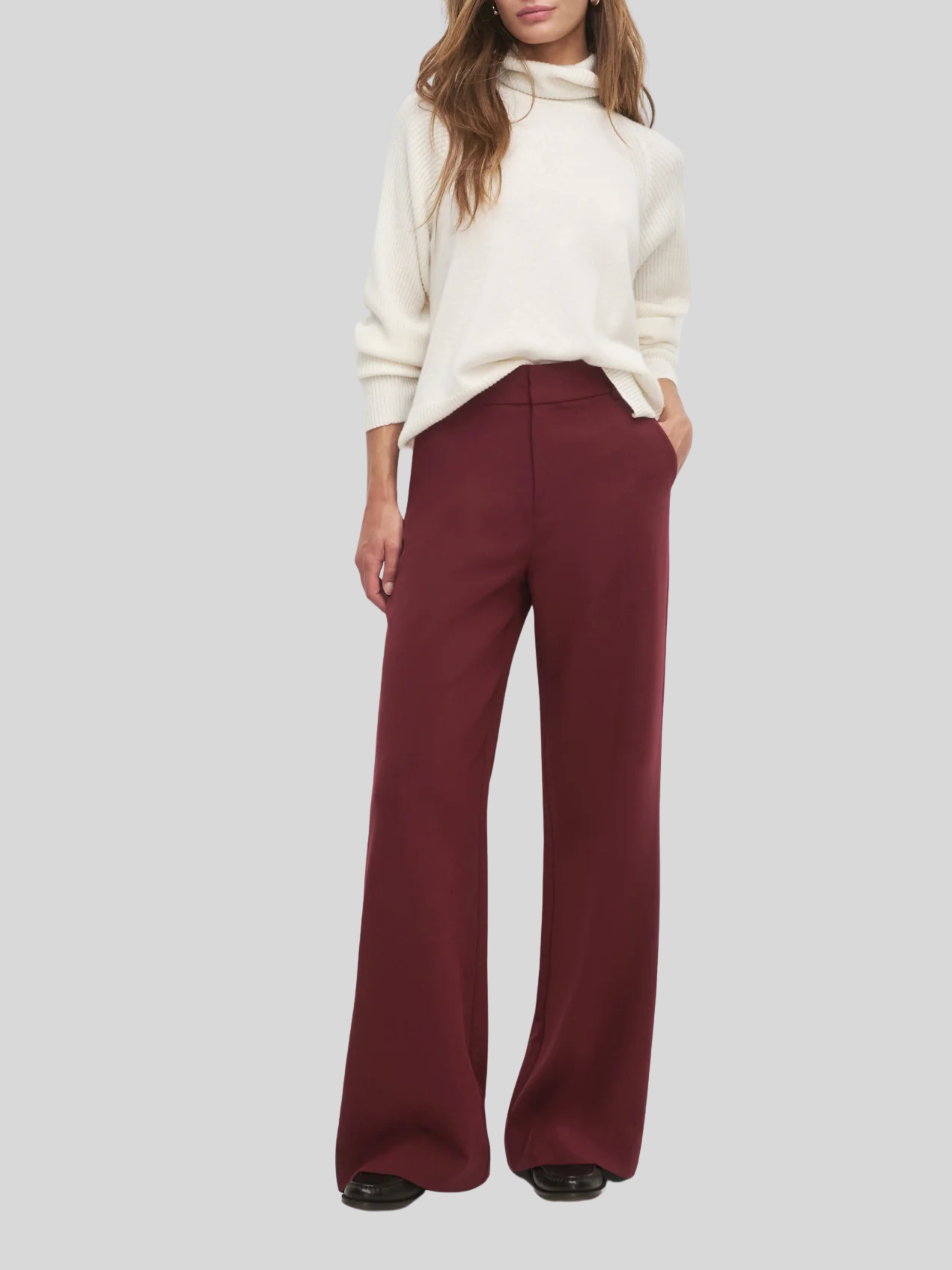 The Jones Wide Leg Pant has a high 12.25" rise and a wide leg with a 33" inseam that creates a super chic silhouette. While these burgundy trousers look great with anything (yes, anything)