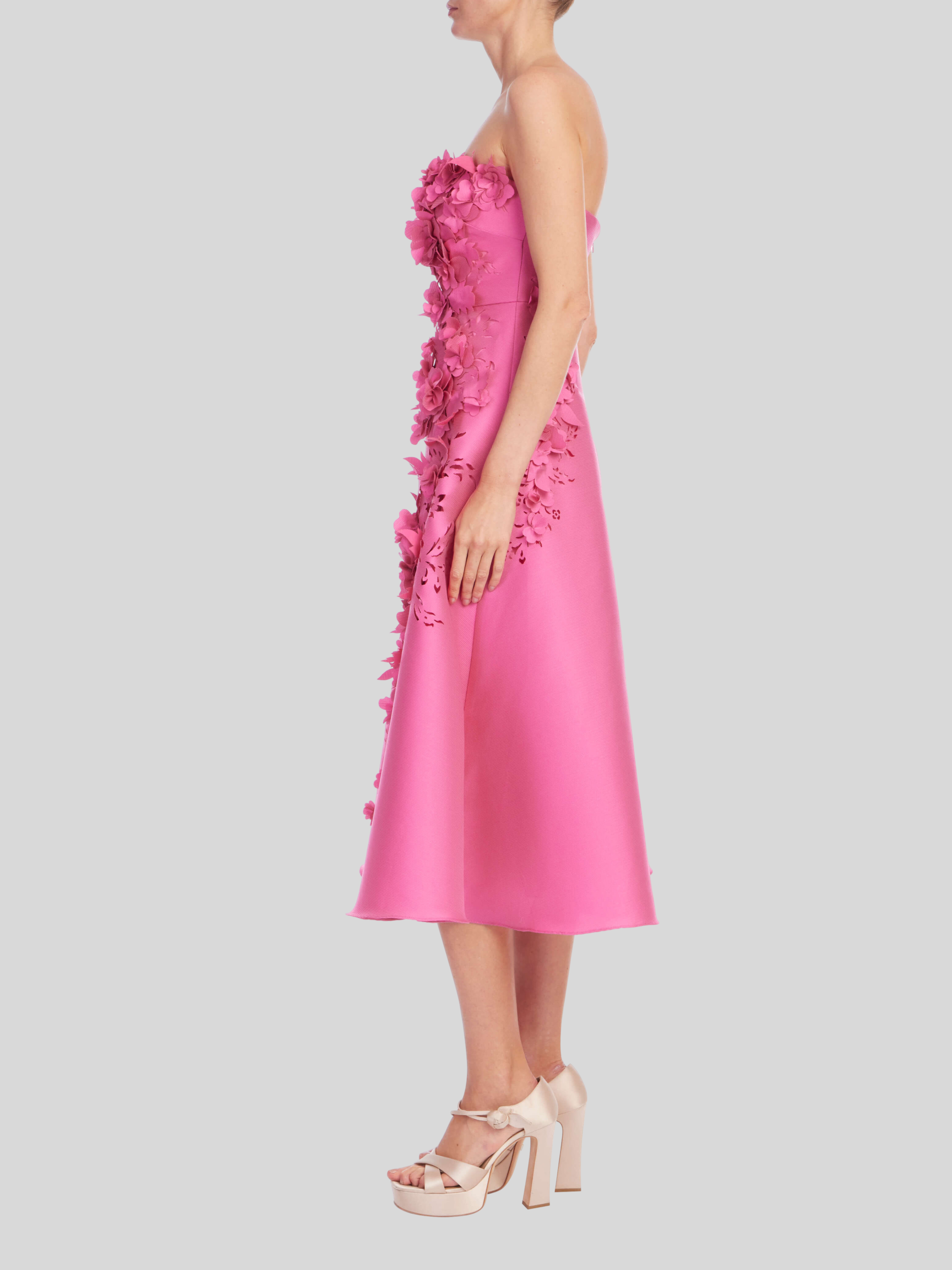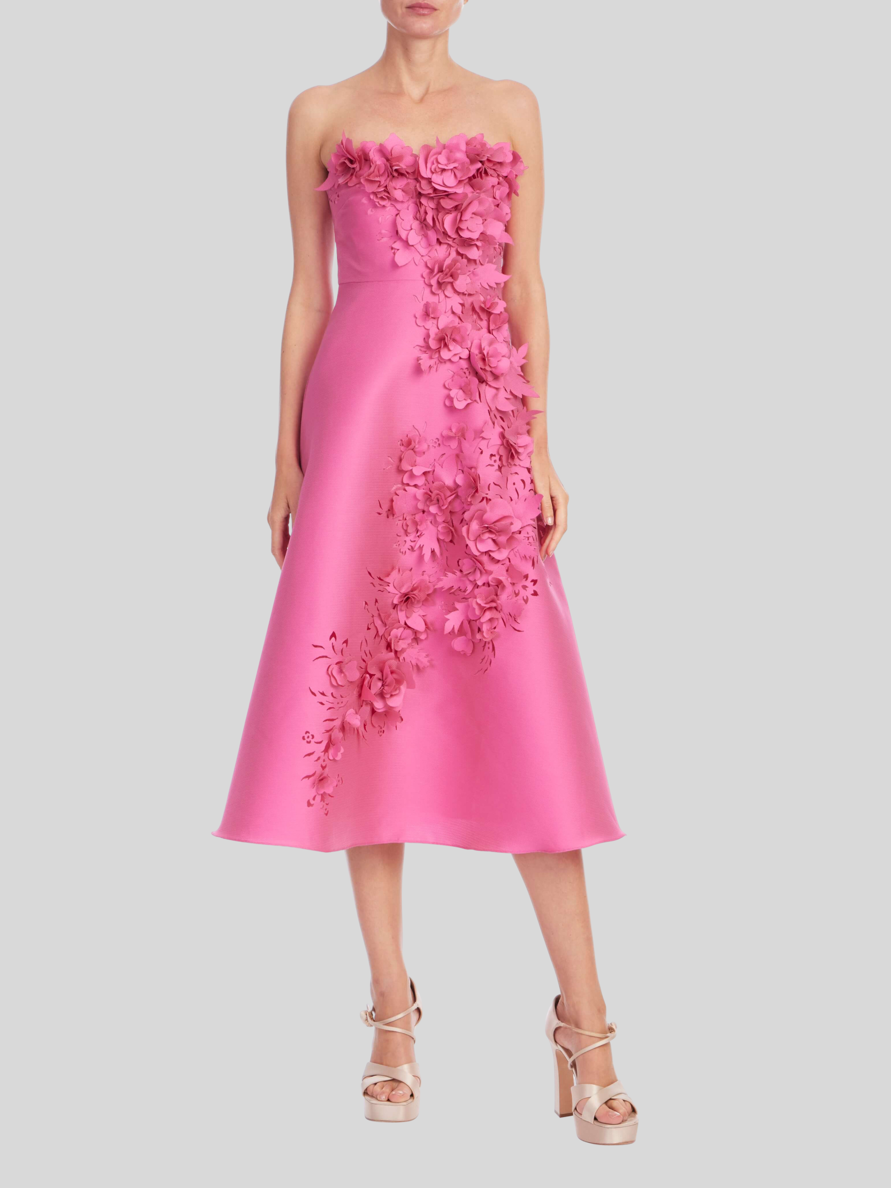Gazar 3D Midi Cocktail Dress in Magenta