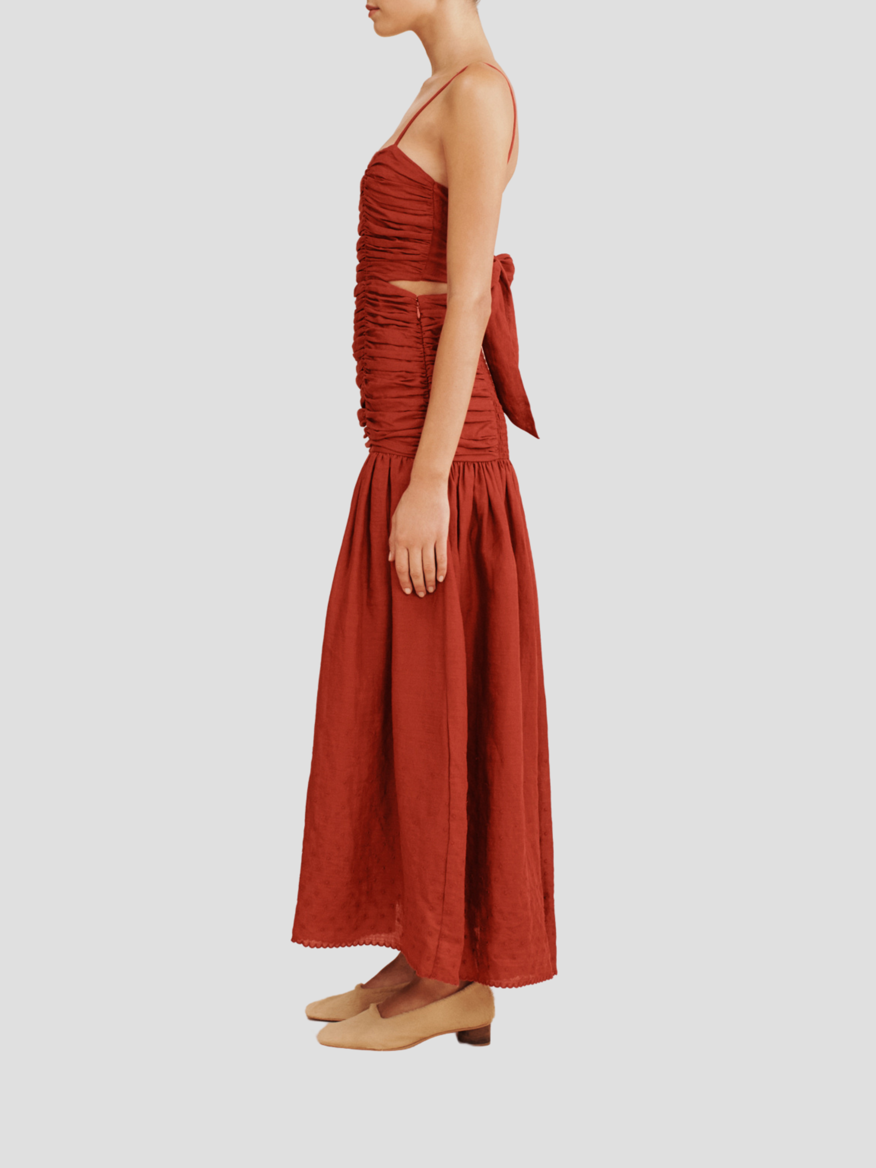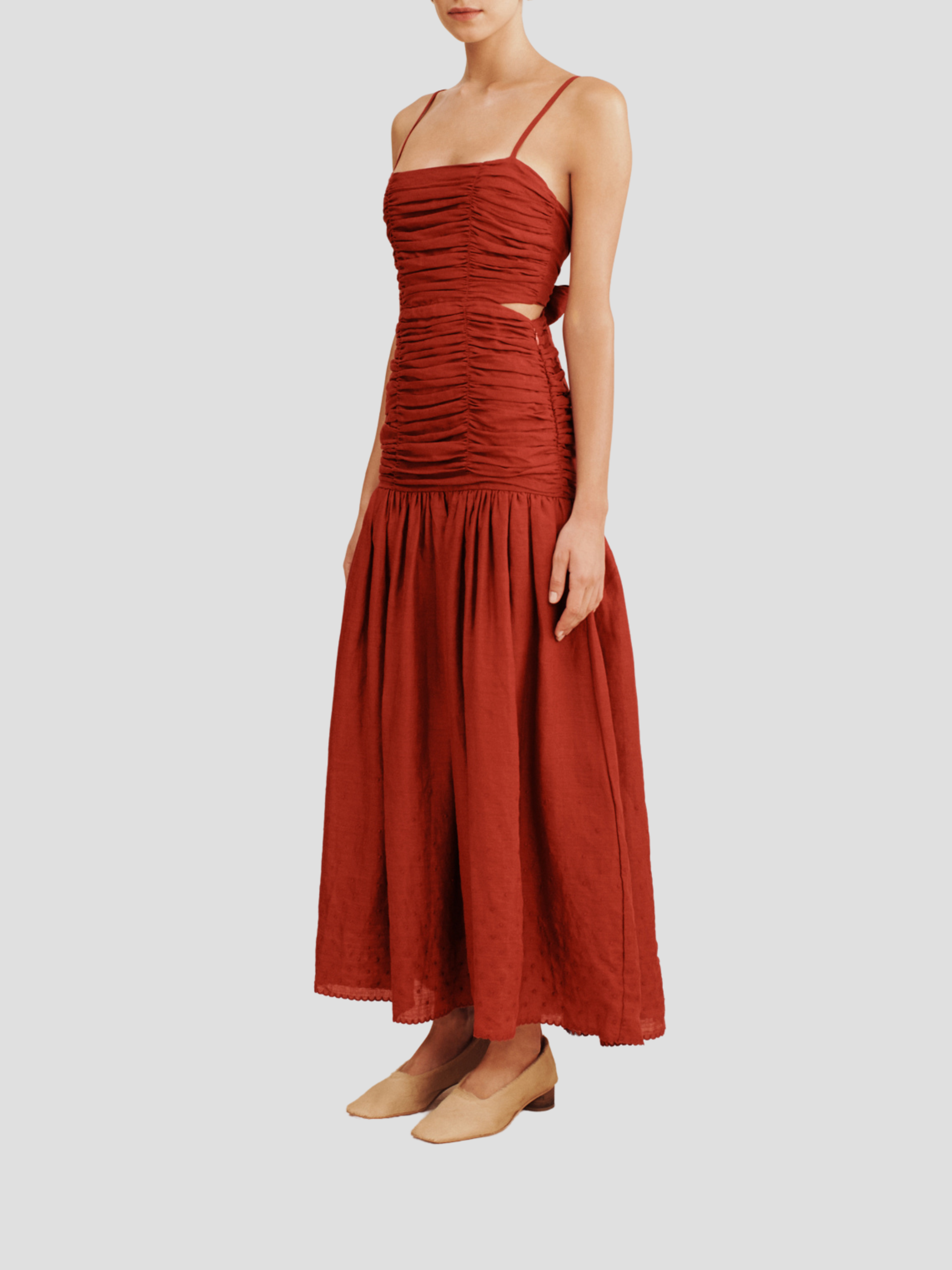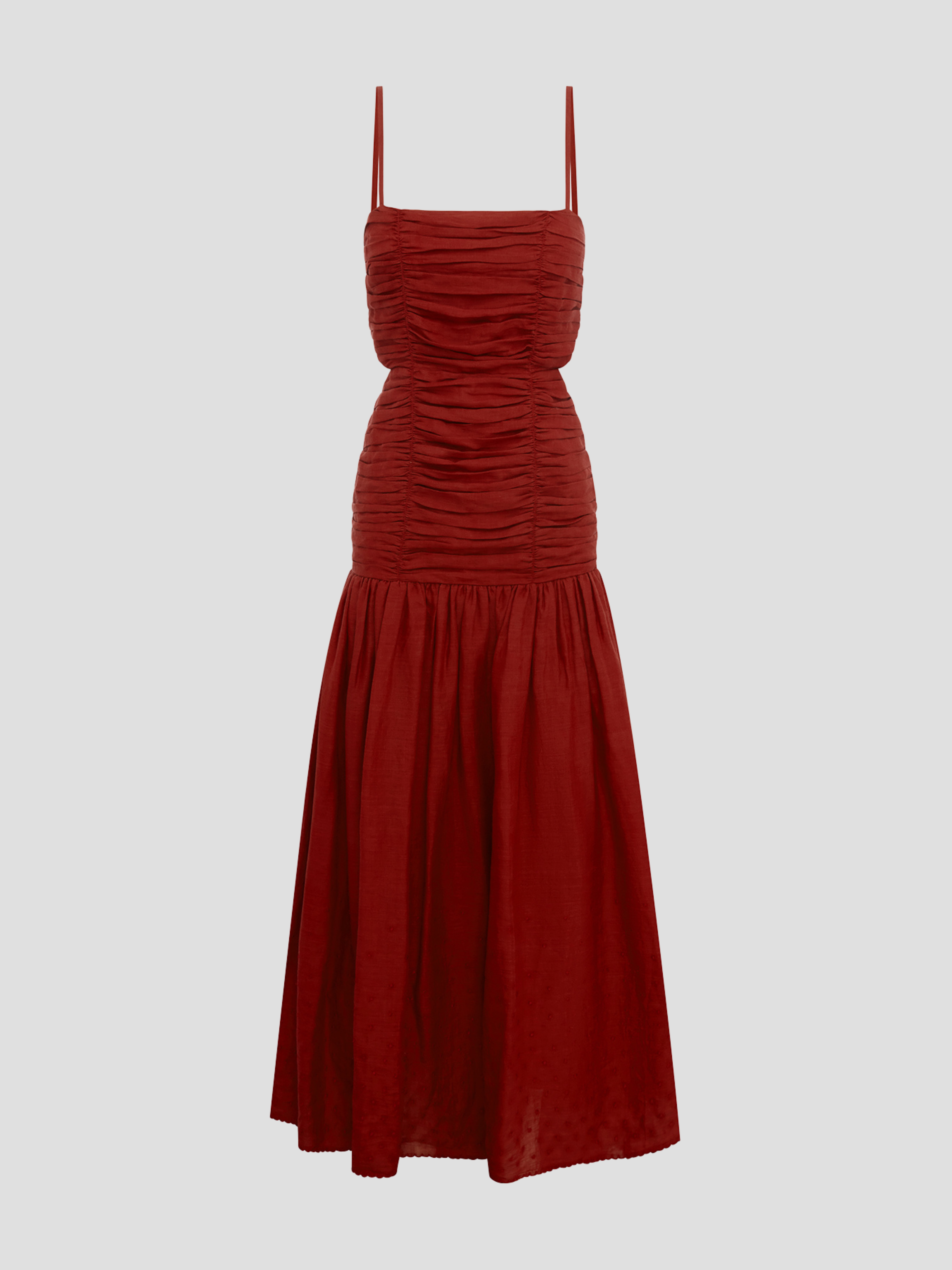 The Aurelia Ruched Square-Neck Dress is a sophisticated and stylish addition to any wardrobe. Made with ruched detailing and a flattering square-neck design, this dress is perfect for any occasion. Its timeless silhouette and high-quality materials ensure both comfort and elegance. Elevate your wardrobe with this must-have piece.