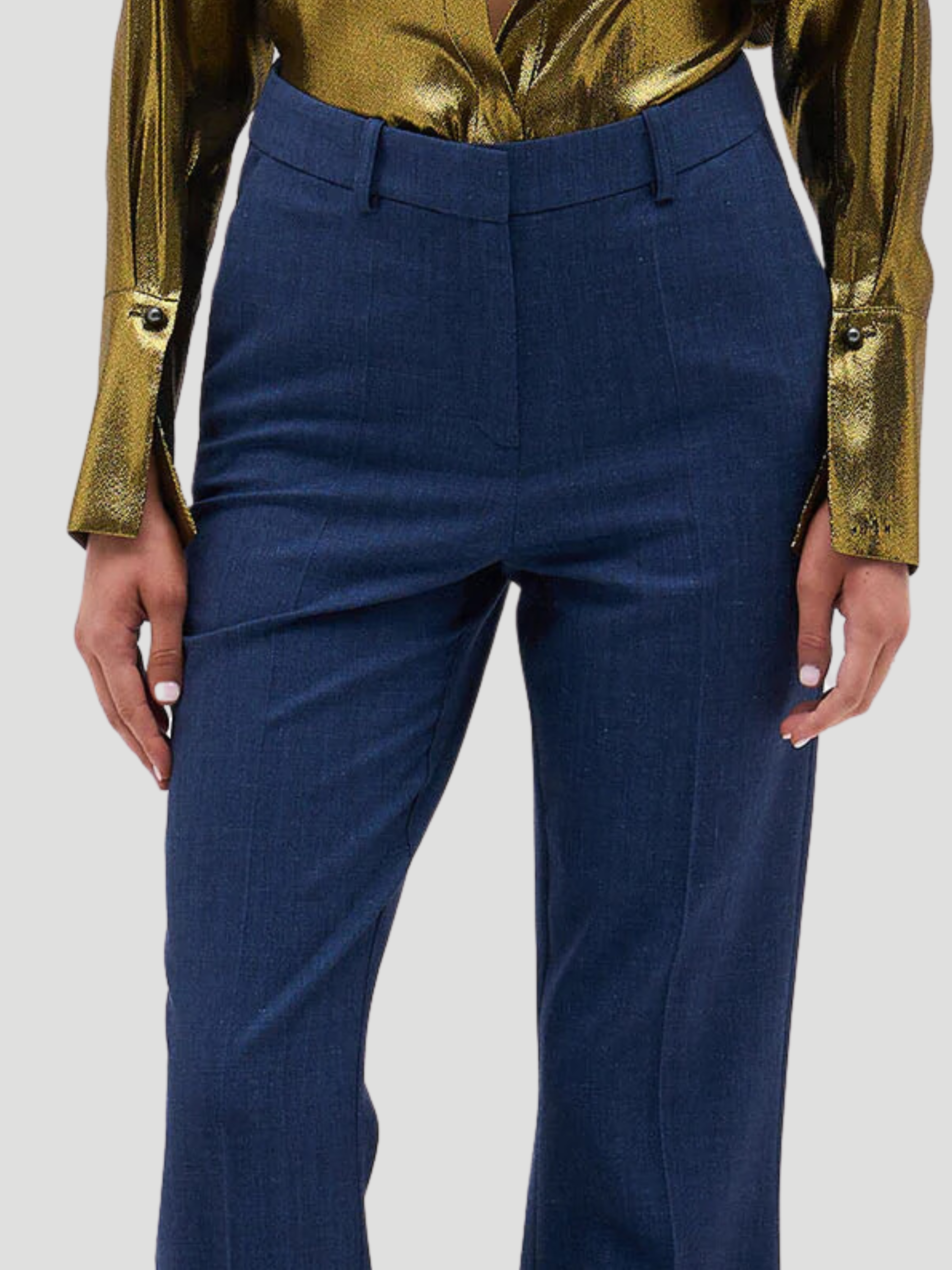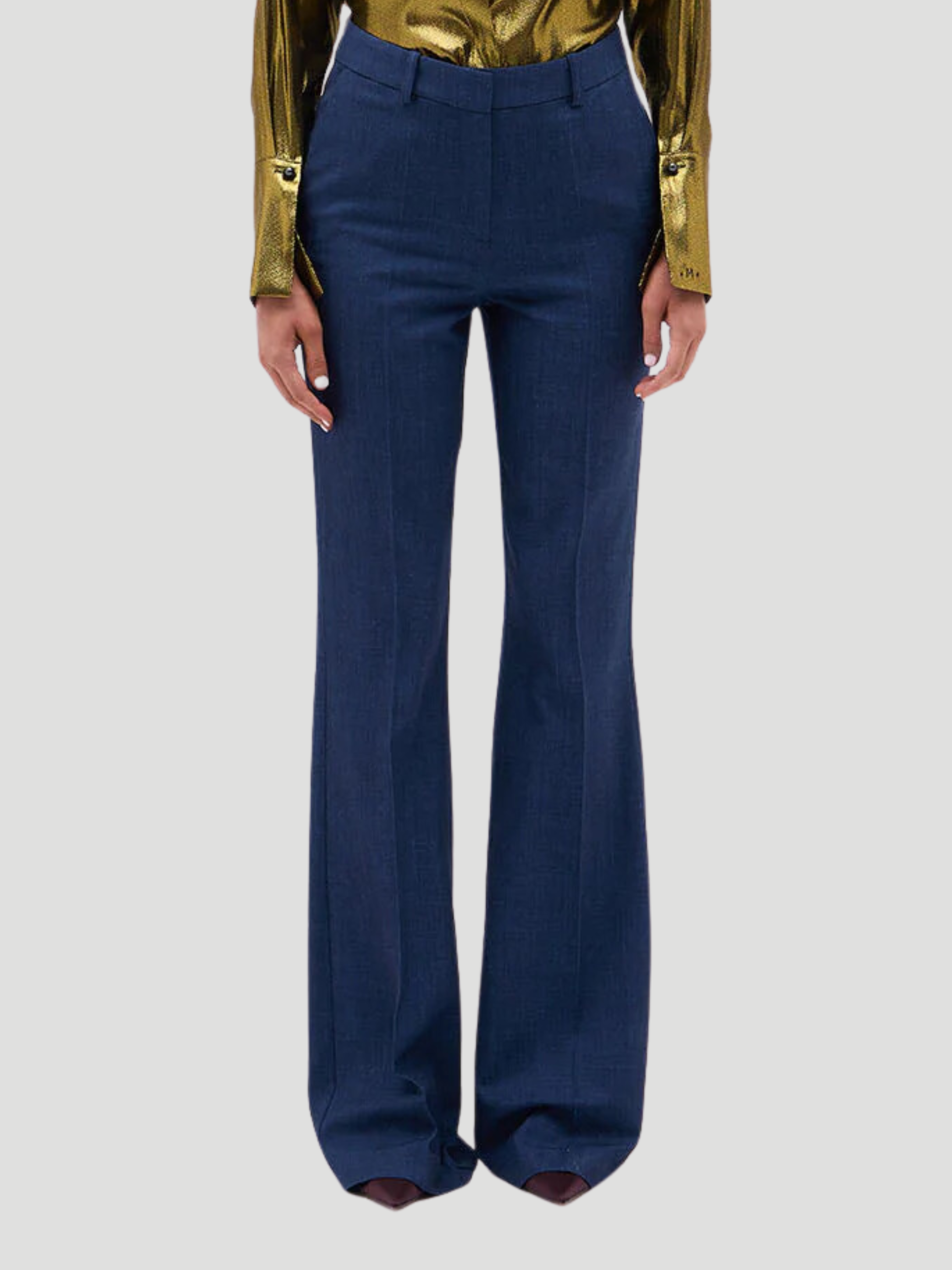 Expertly designed for comfort and style, DMN's Paula Denim Straight Leg Pants are a must-have for any wardrobe. With their slight flare and denim-effect fabric, these versatile pants will keep you looking effortlessly chic. Made from Loro Piana "Jersey" fabric from Italy.