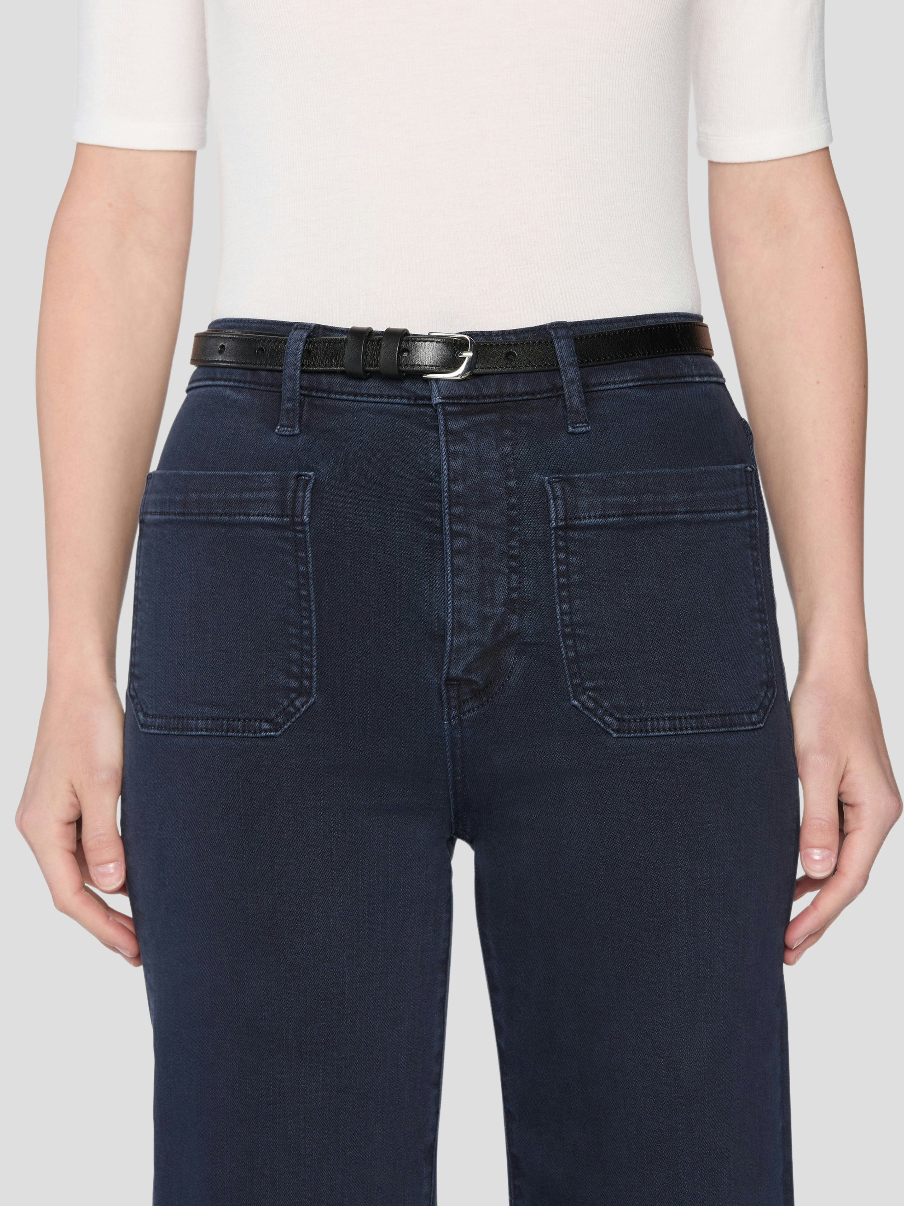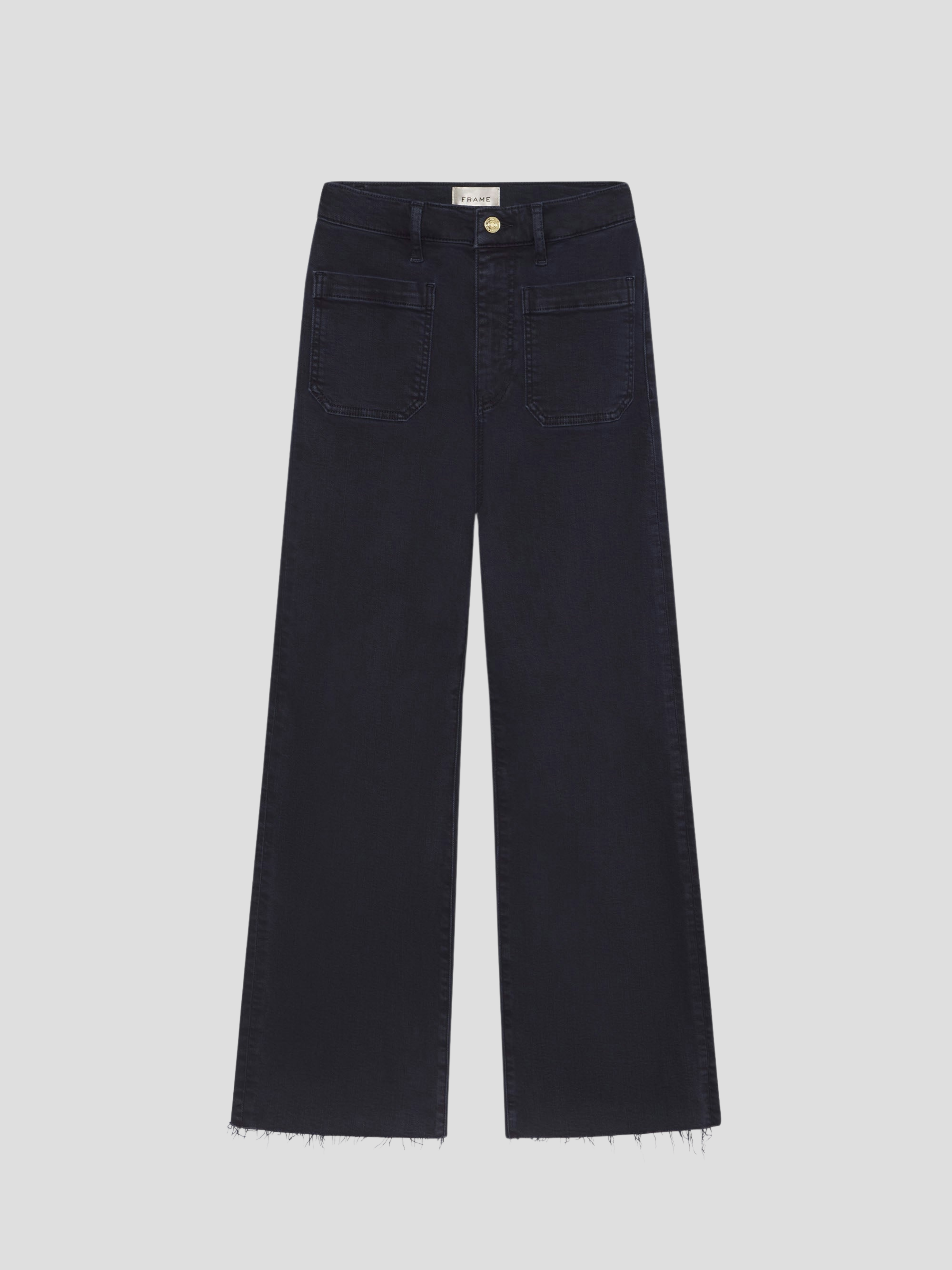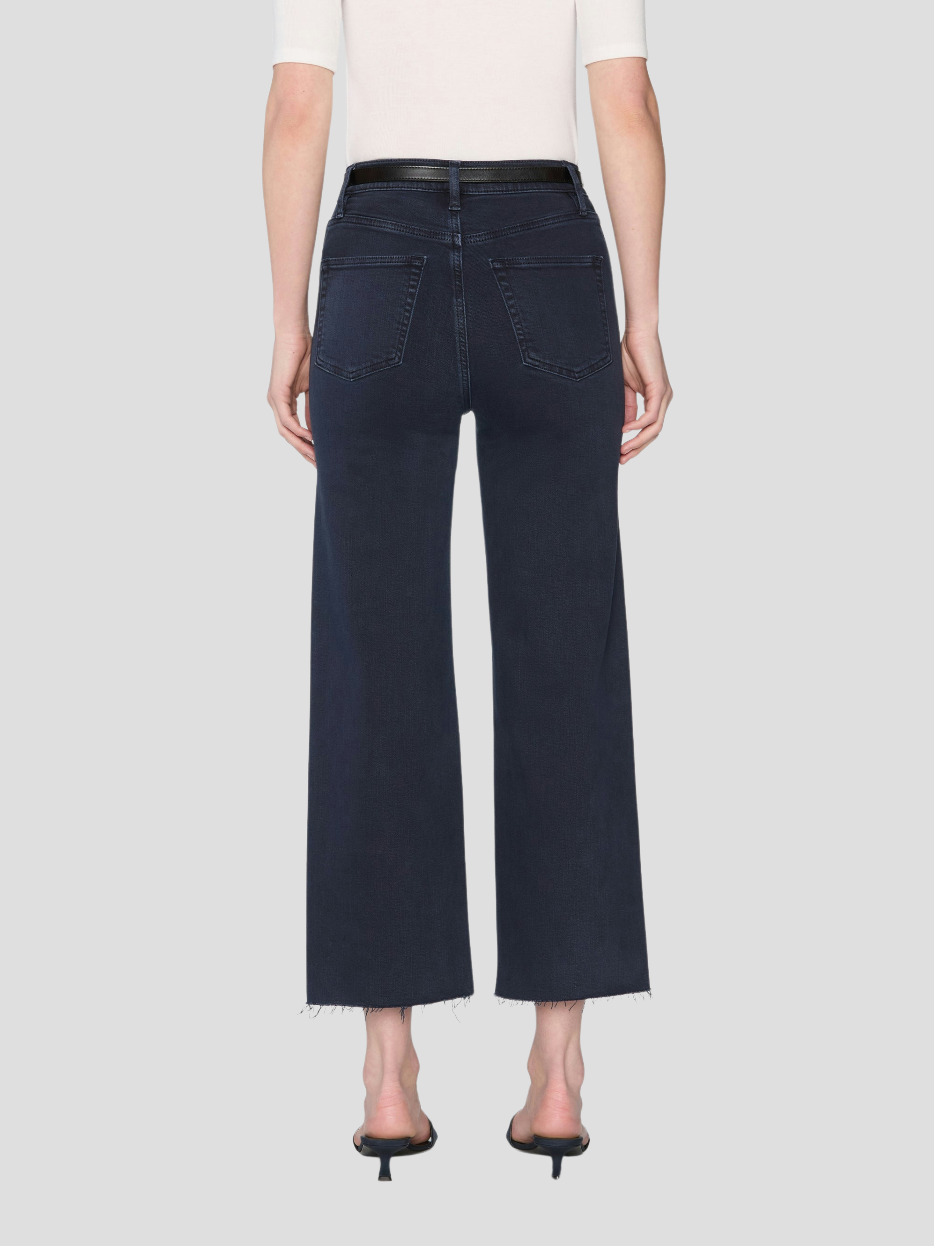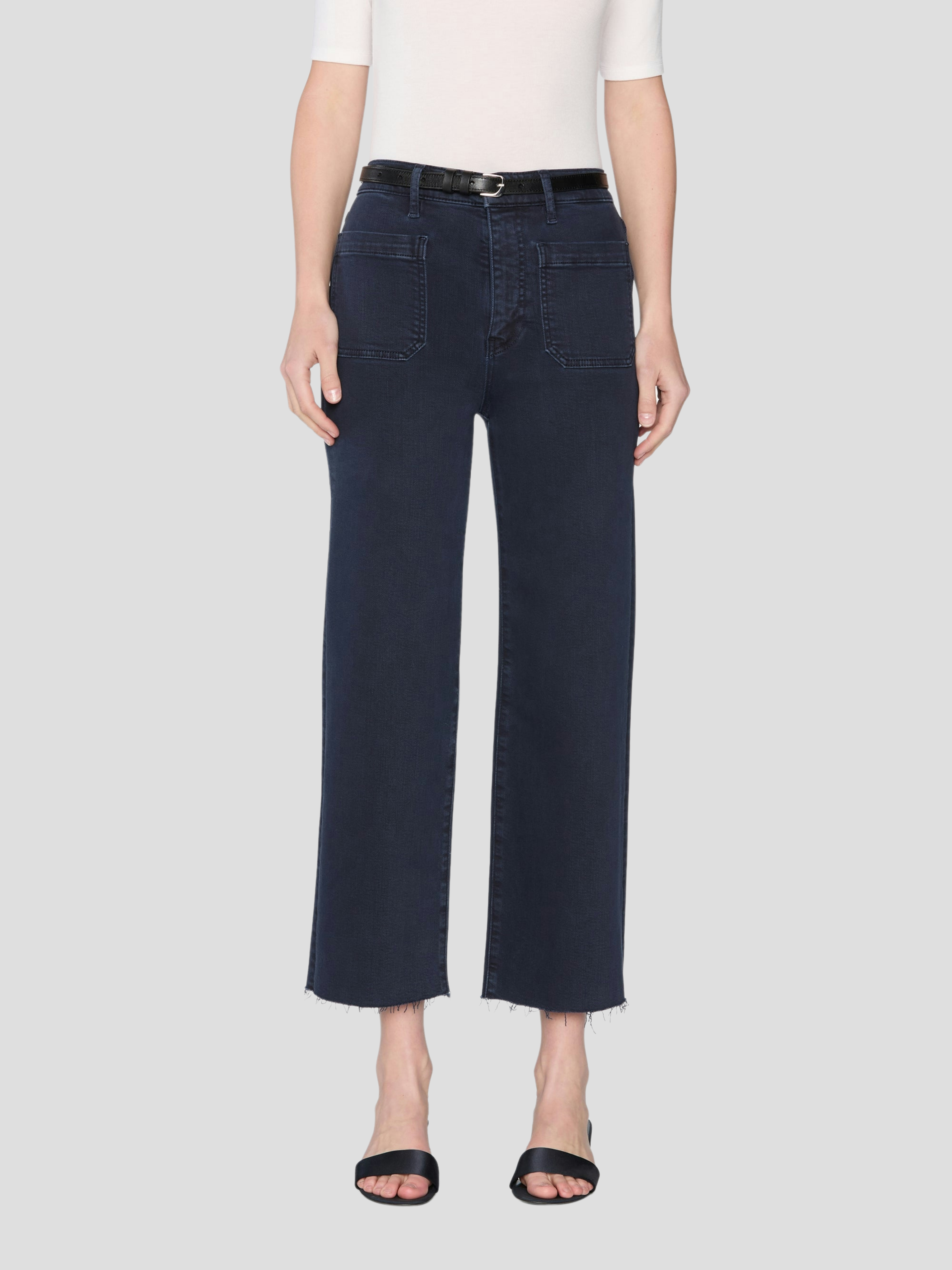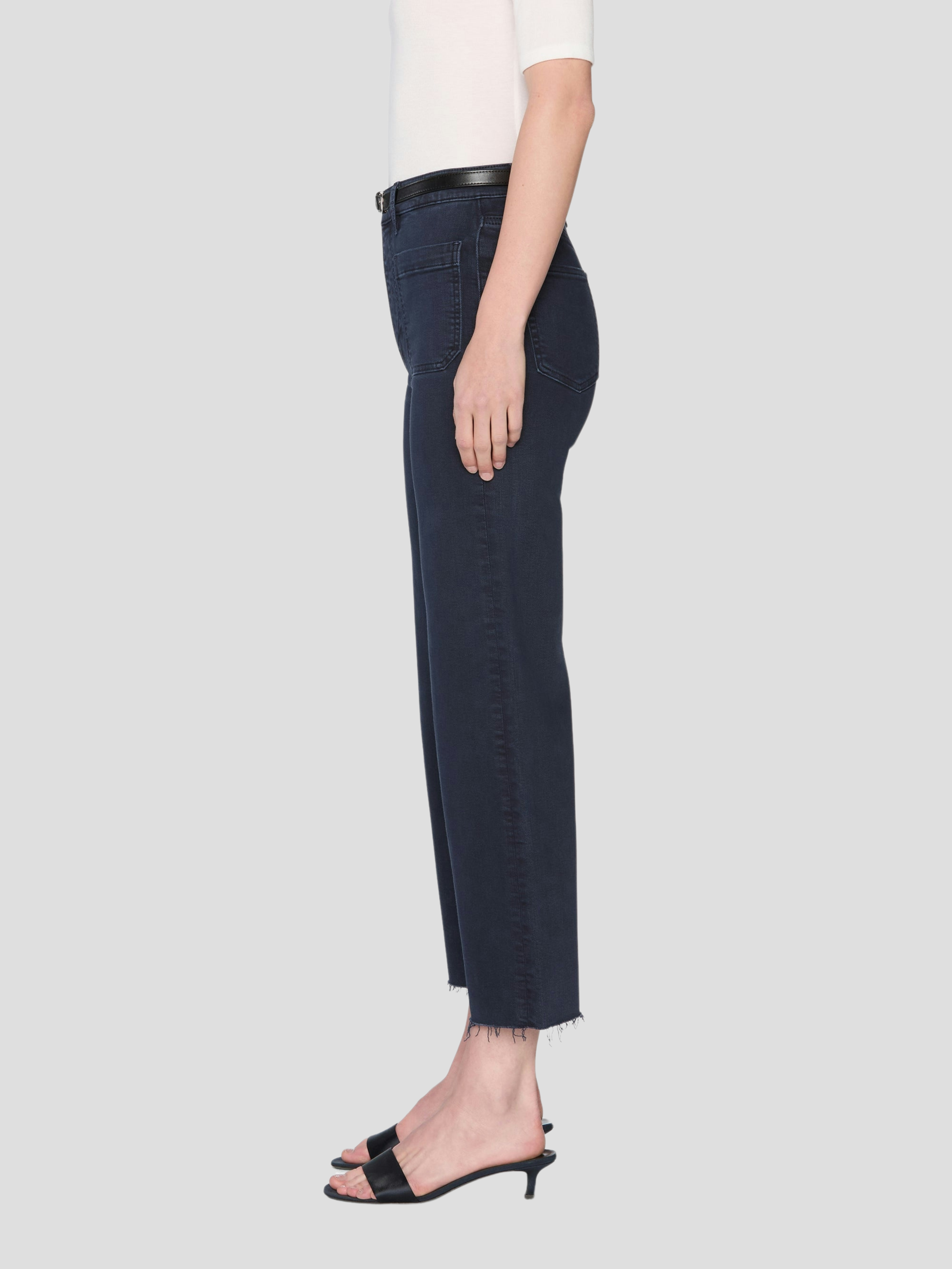 Tailored, with a twist. The Anchor Pant features front patch pockets, a cropped inseam, and a subtle wide leg. The deep navy wash and raw, frayed hem enhance this super stretch silhouette.