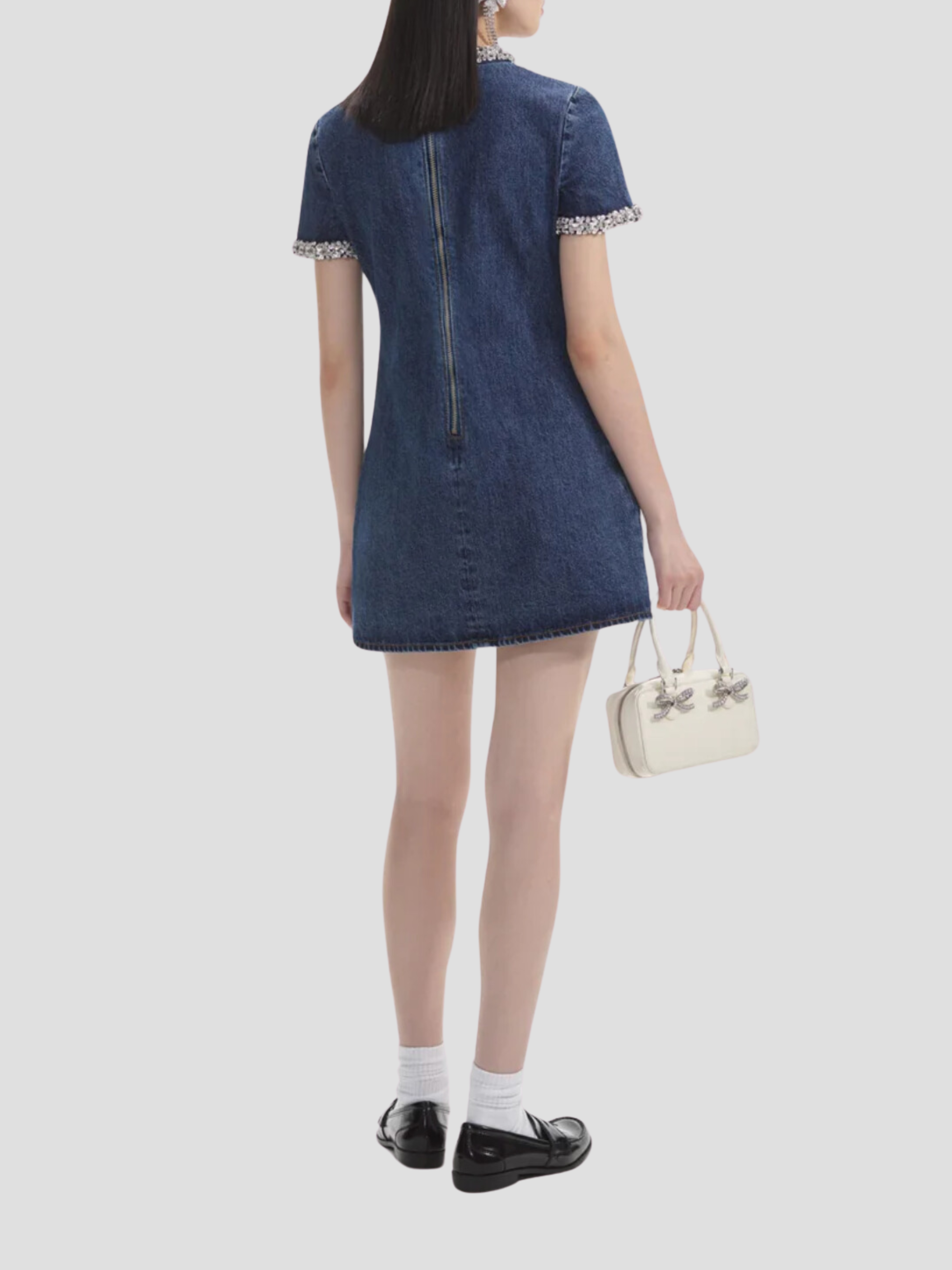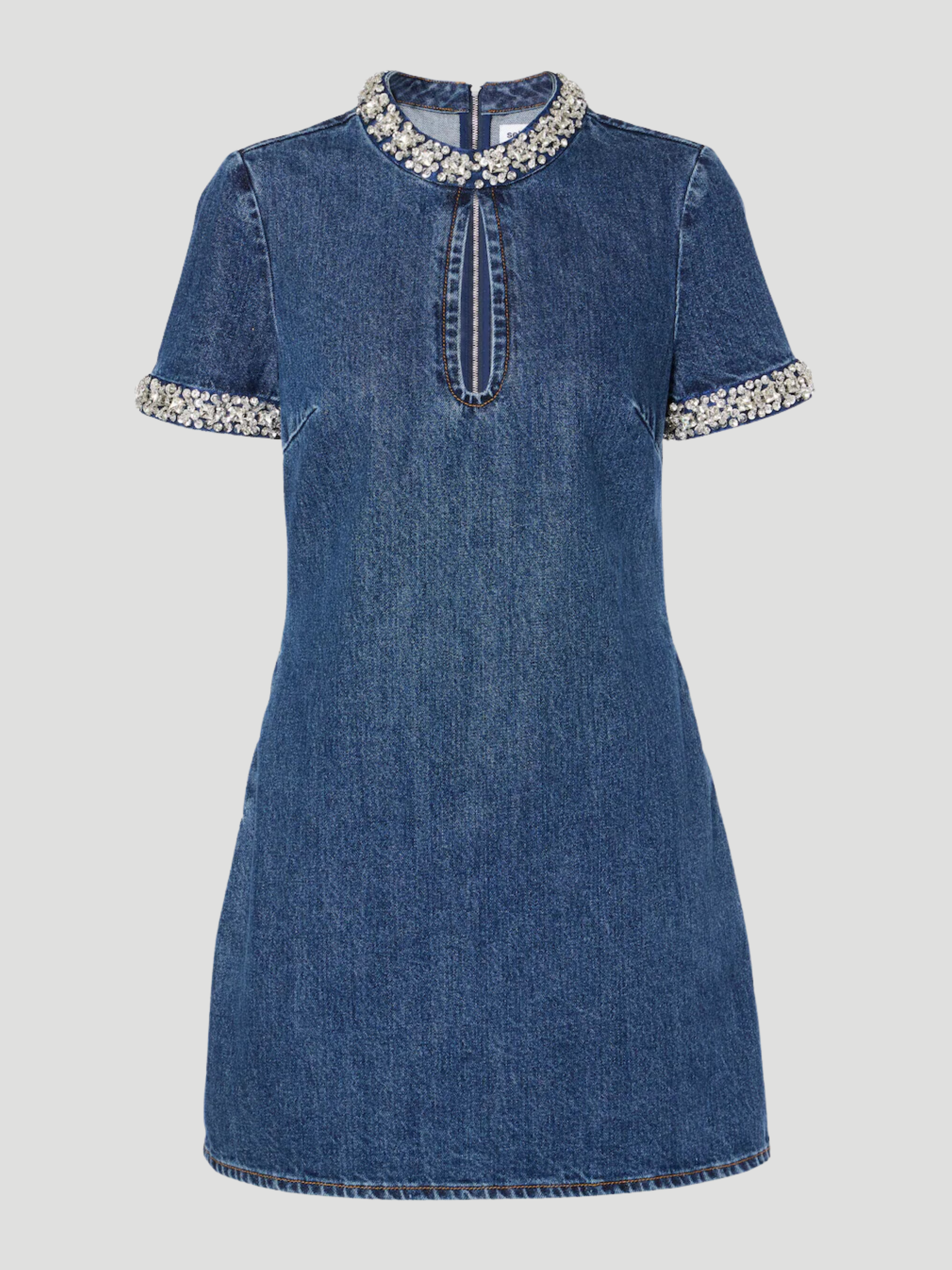 Embellished Denim Mini Dress in Blue