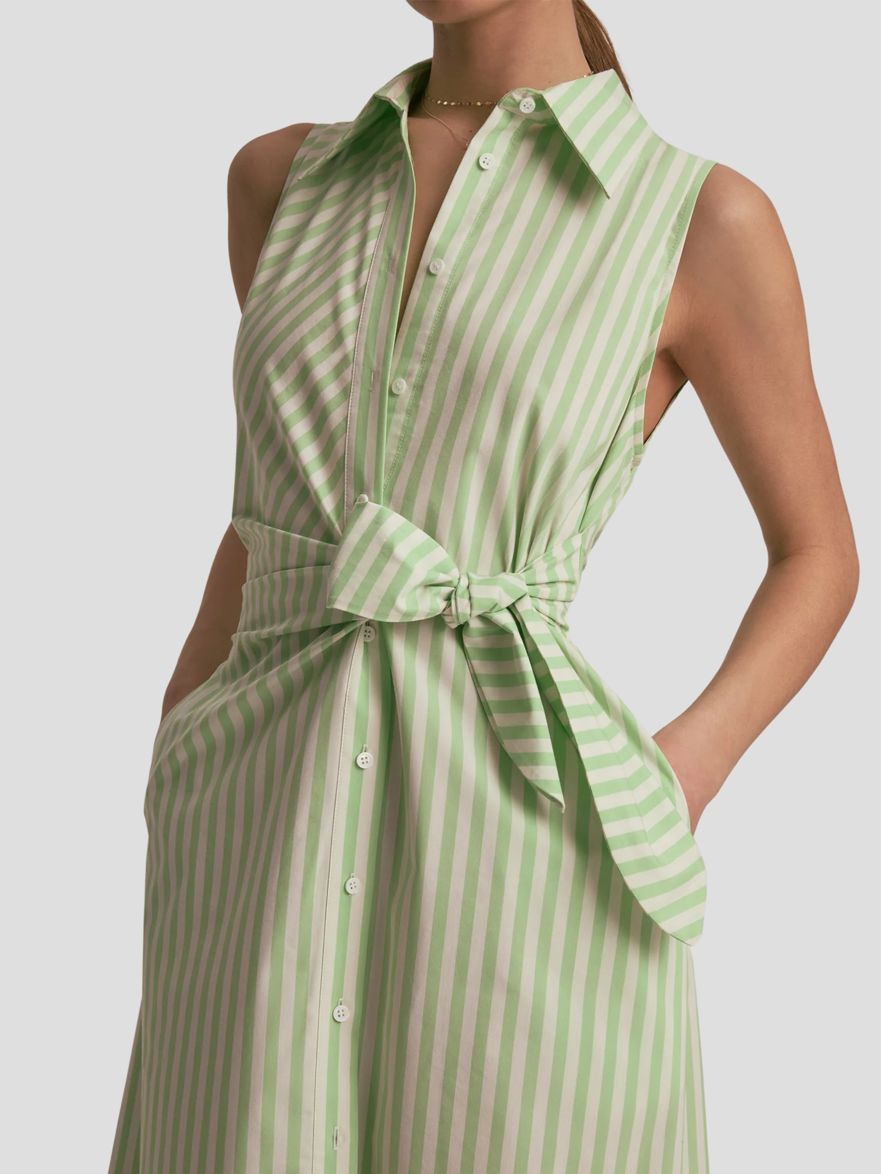 The Good Behavior Dress plays by the rules. This collared, sleeveless midi keeps it effortless with a self-tie belt, relaxed bodice and semi A-line skirt. Cut from a soft cotton blend, it’s an easy, throw-on-and-go favorite at 48" in length.