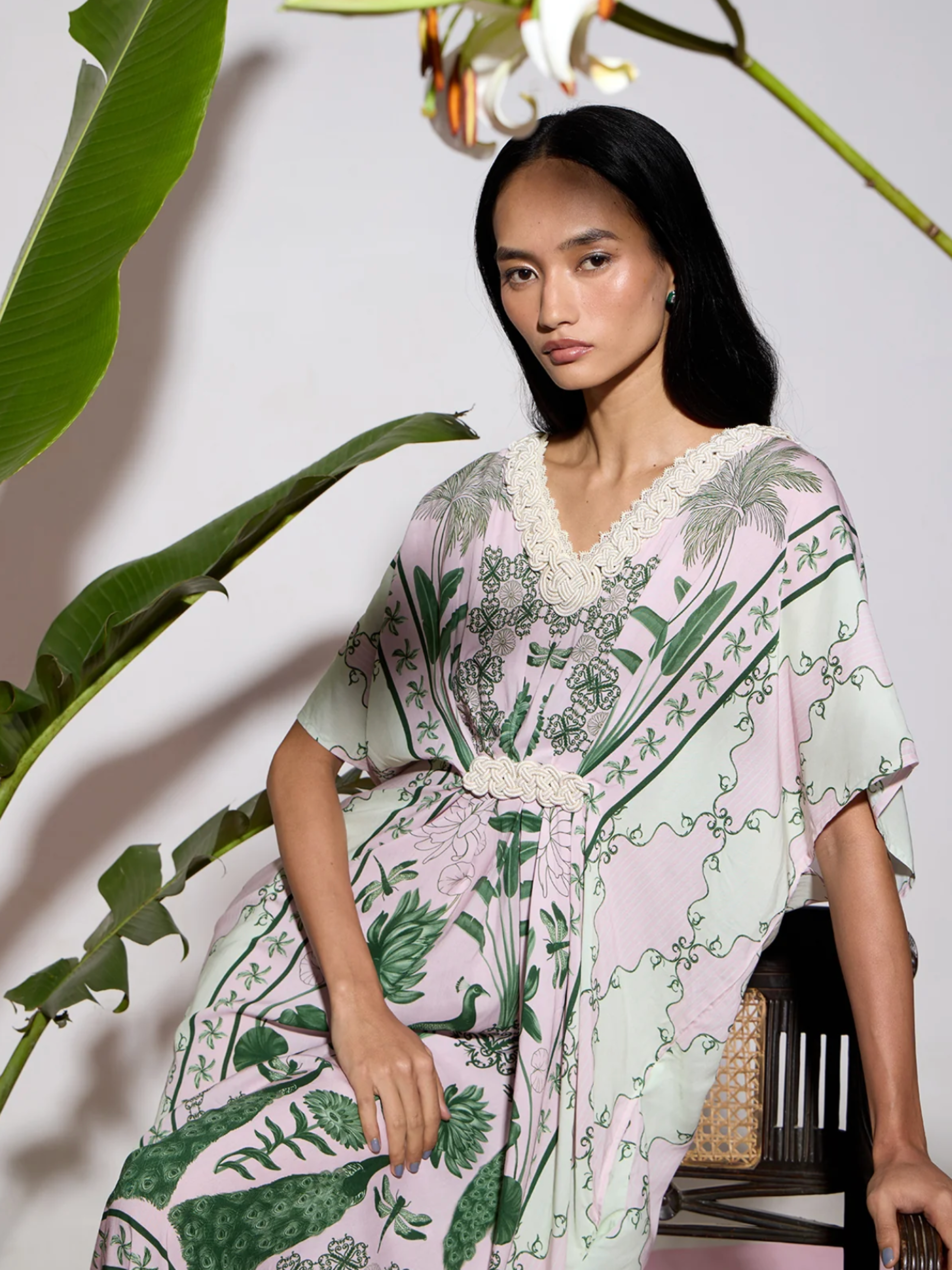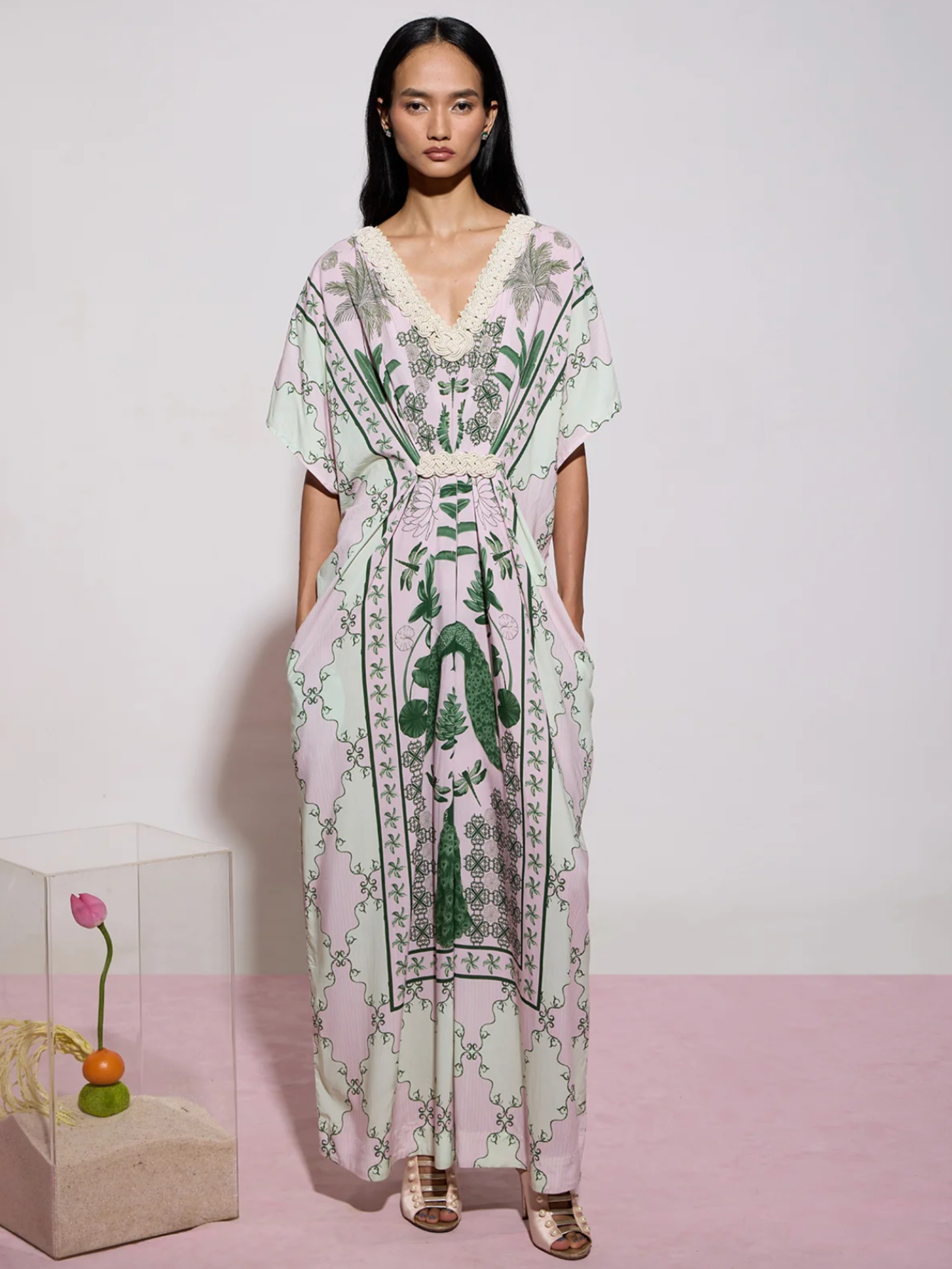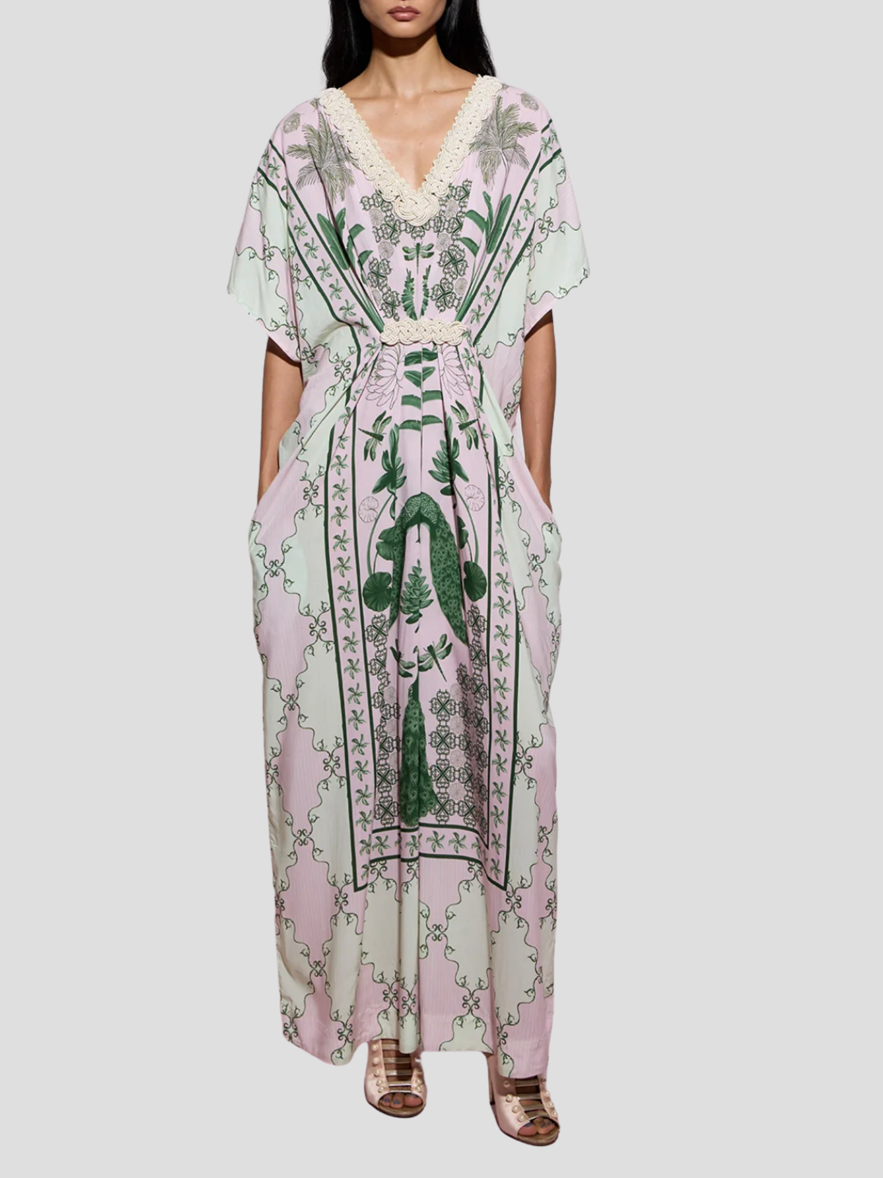 Hand Draped Kaftan in Blush