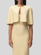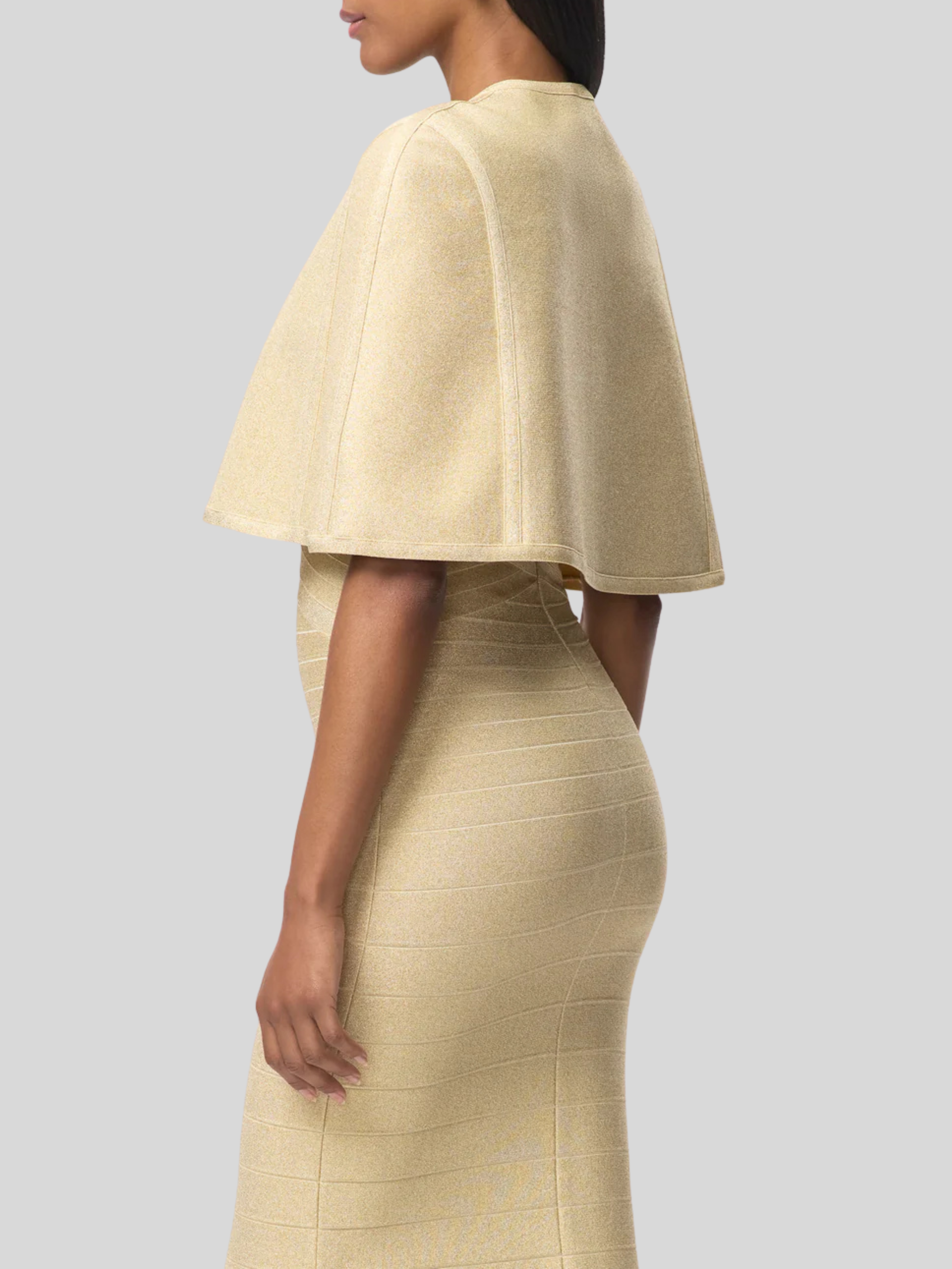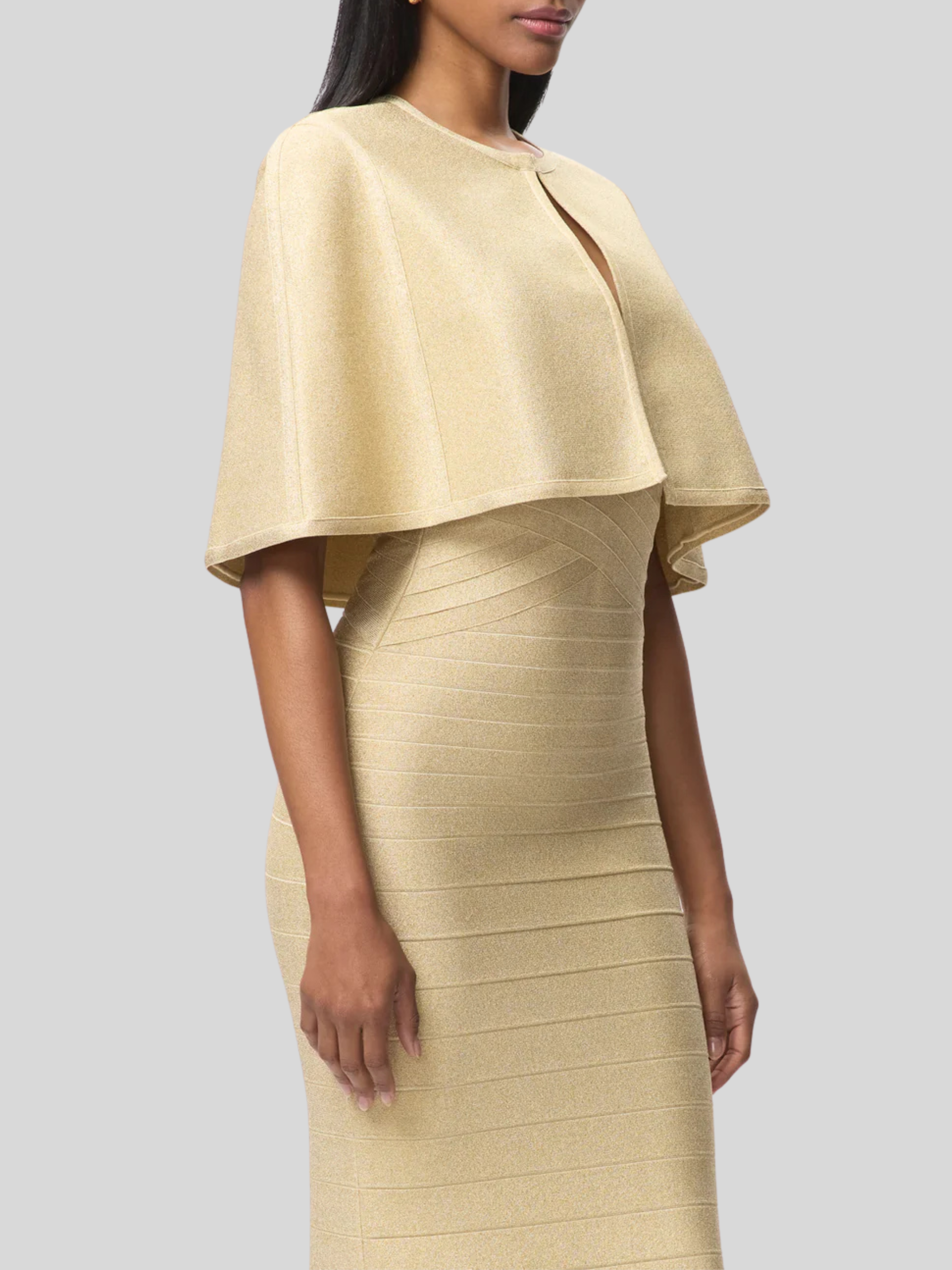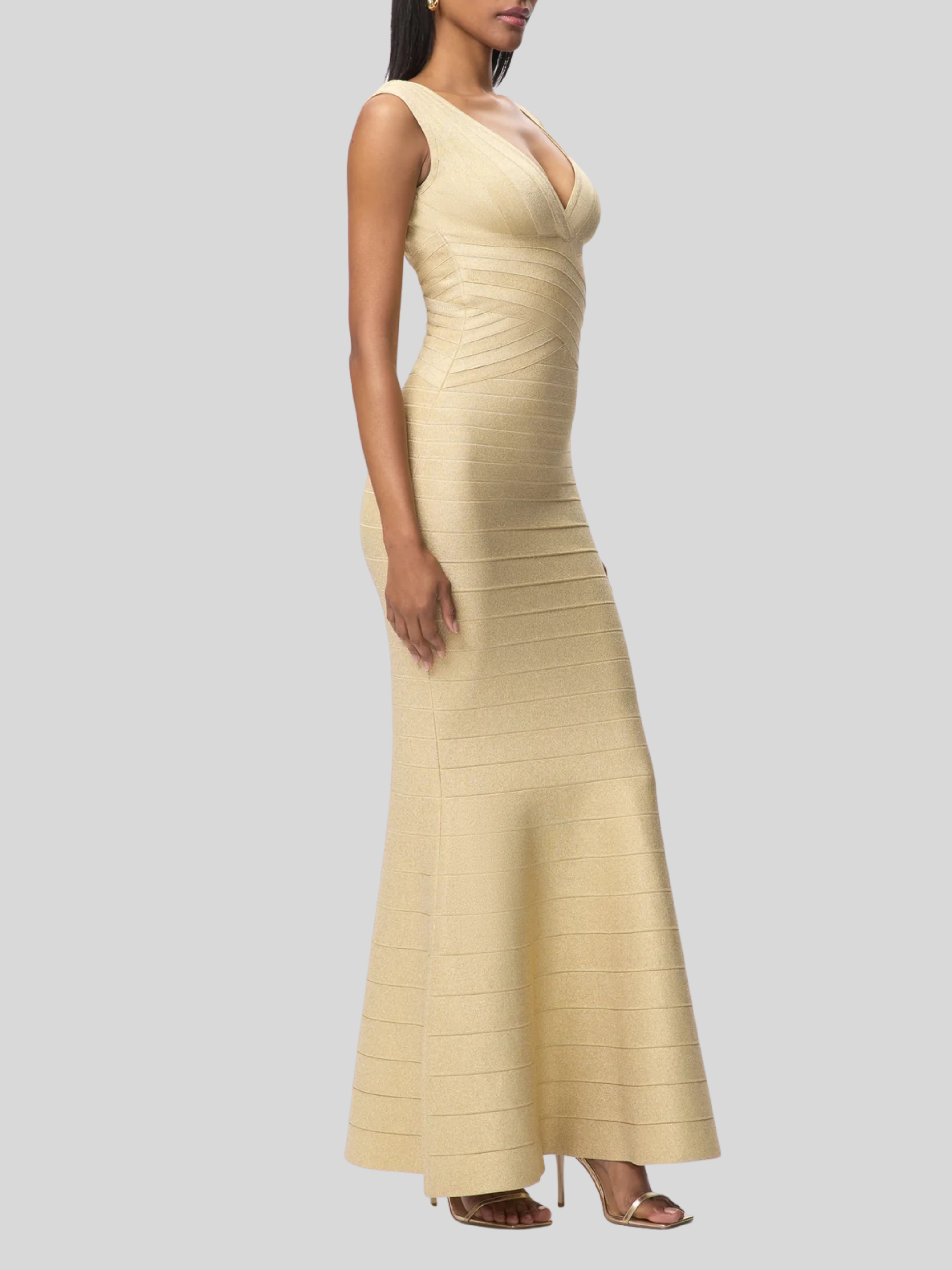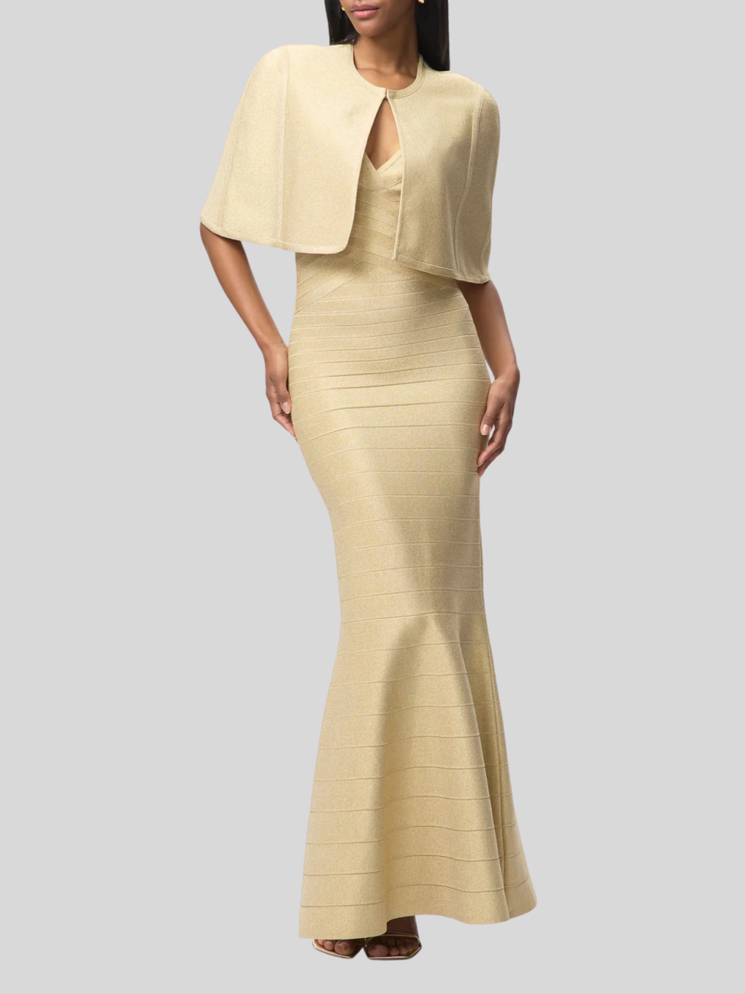 With a subtle metallic sheen in gradient bandage, the Mira Gown debuts for Resort '26. The floor-length gown features a true bandage bodice, wide V-neckline, mermaid hem and is finished with a center-back zip.