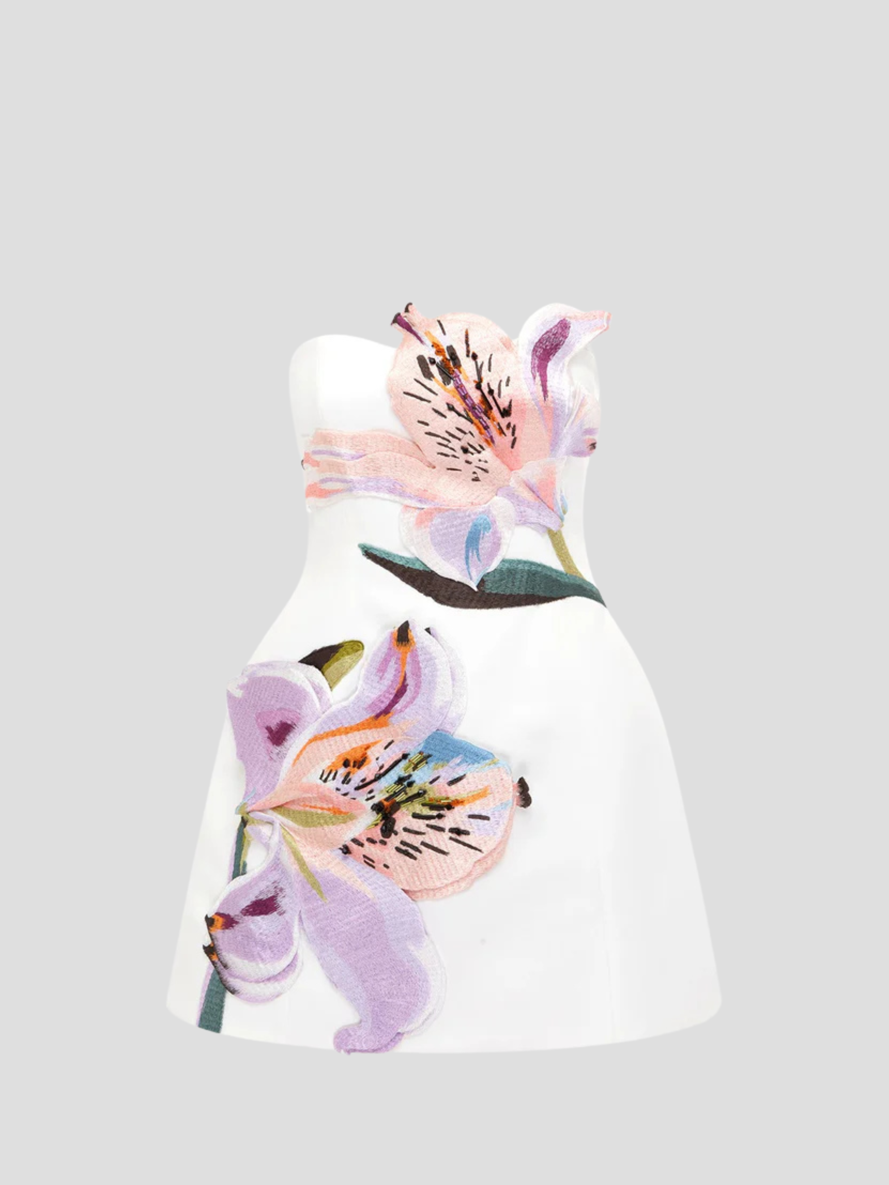Peaceful and serene, the elegant oversized lily print combines the flowing and feminine florals against a vibrant backdrop of fresh snow white.