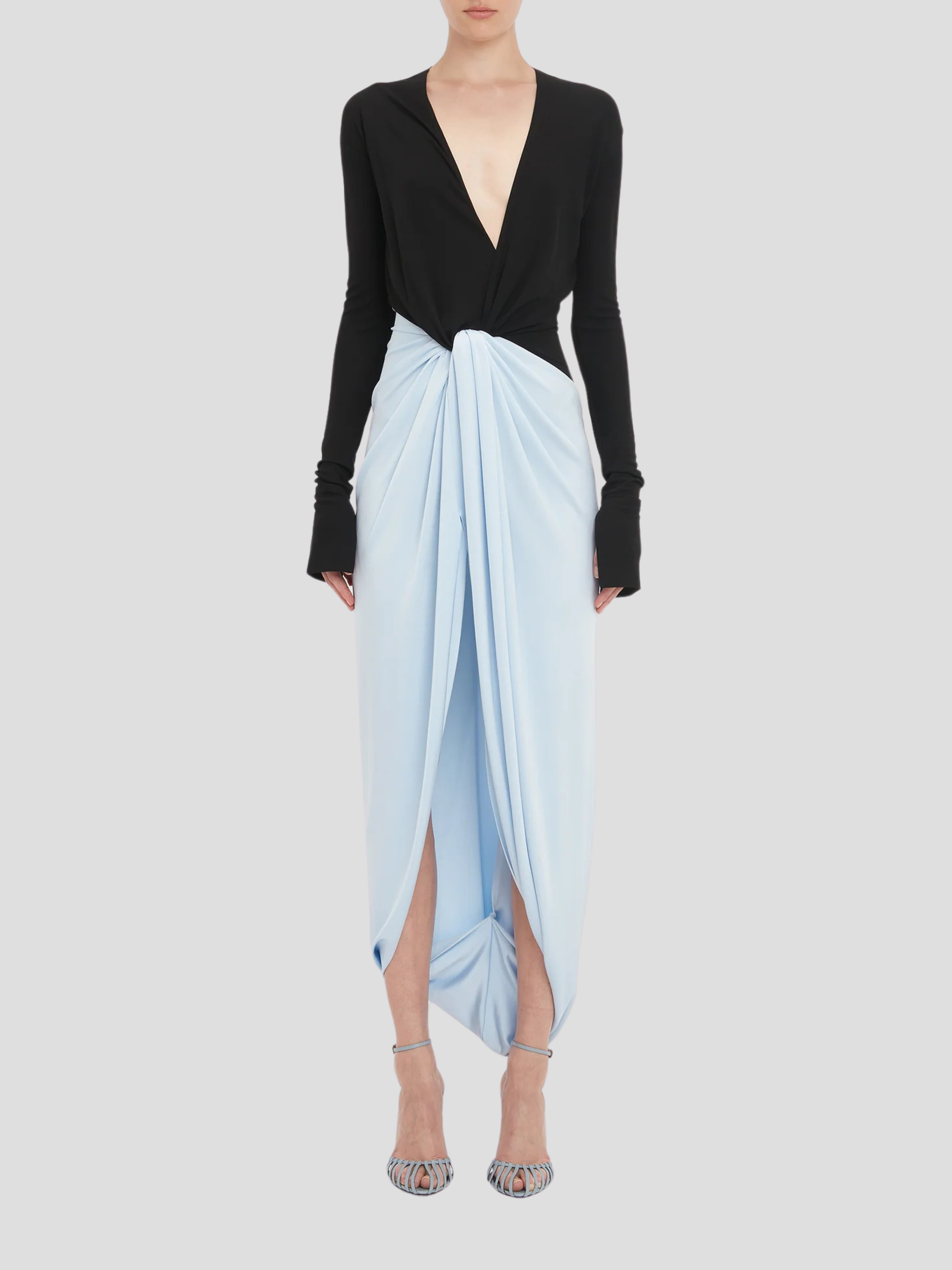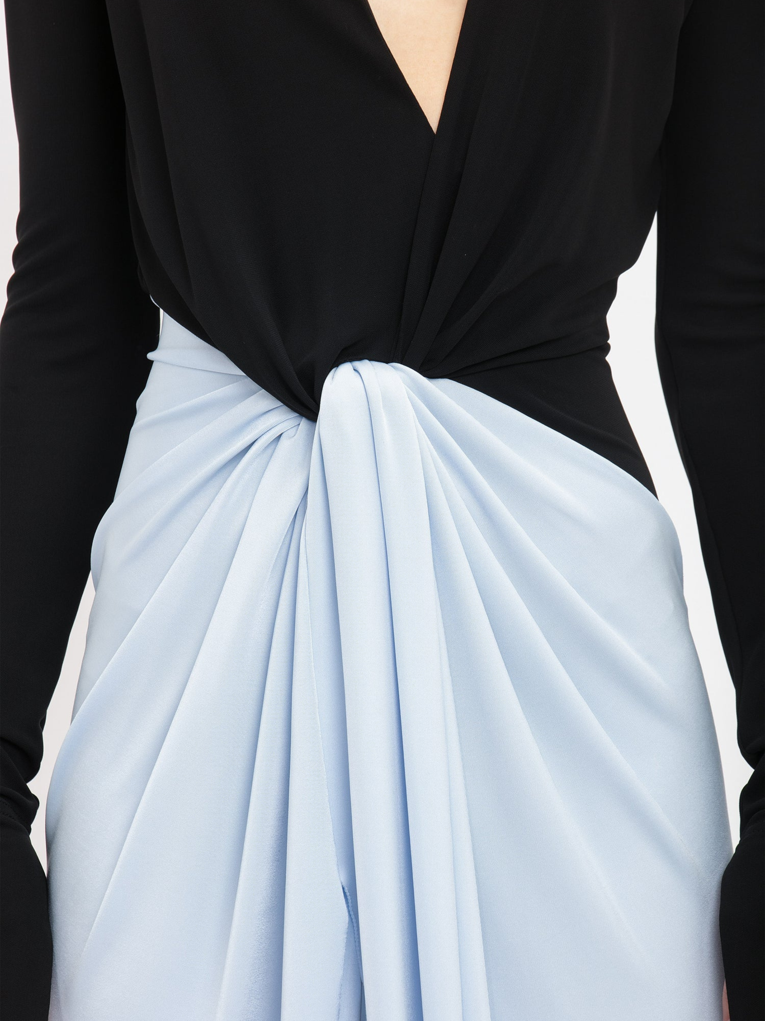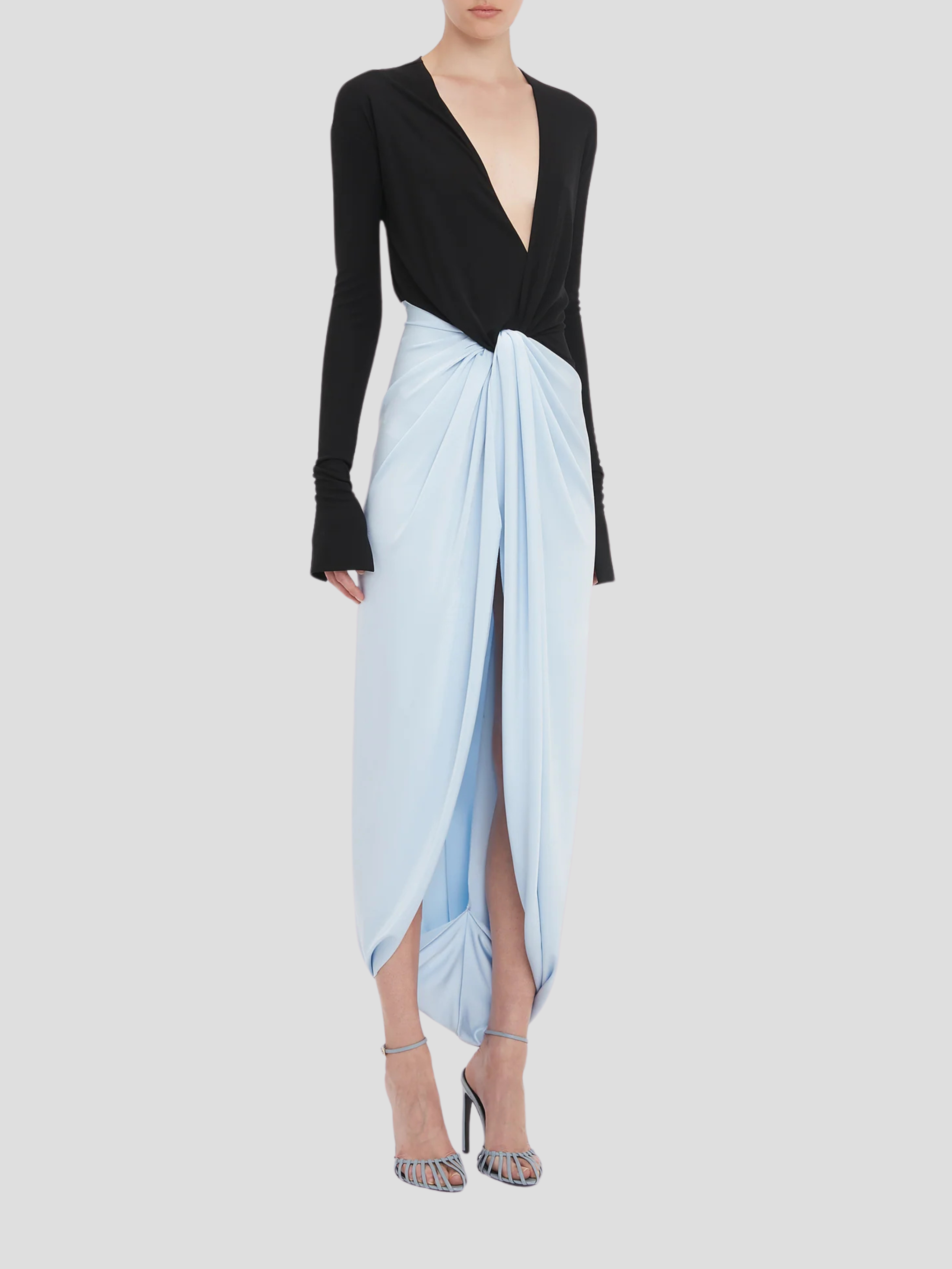 Crafted with elegant simplicity, our Long Sleeve Knot Detail Jersey Gown offers both comfort and style. The long sleeves provide adequate coverage, while the subtle knot detail adds a touch of sophistication. Made from high-quality jersey fabric, this gown drapes beautifully and flatters all body types.