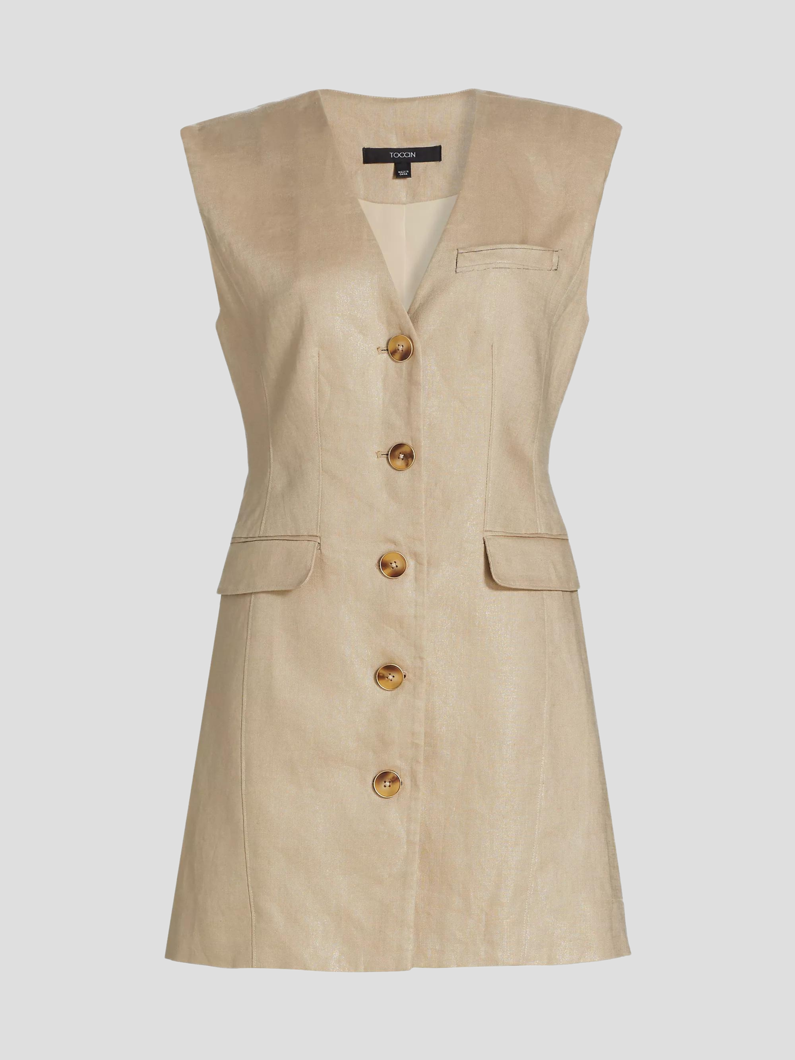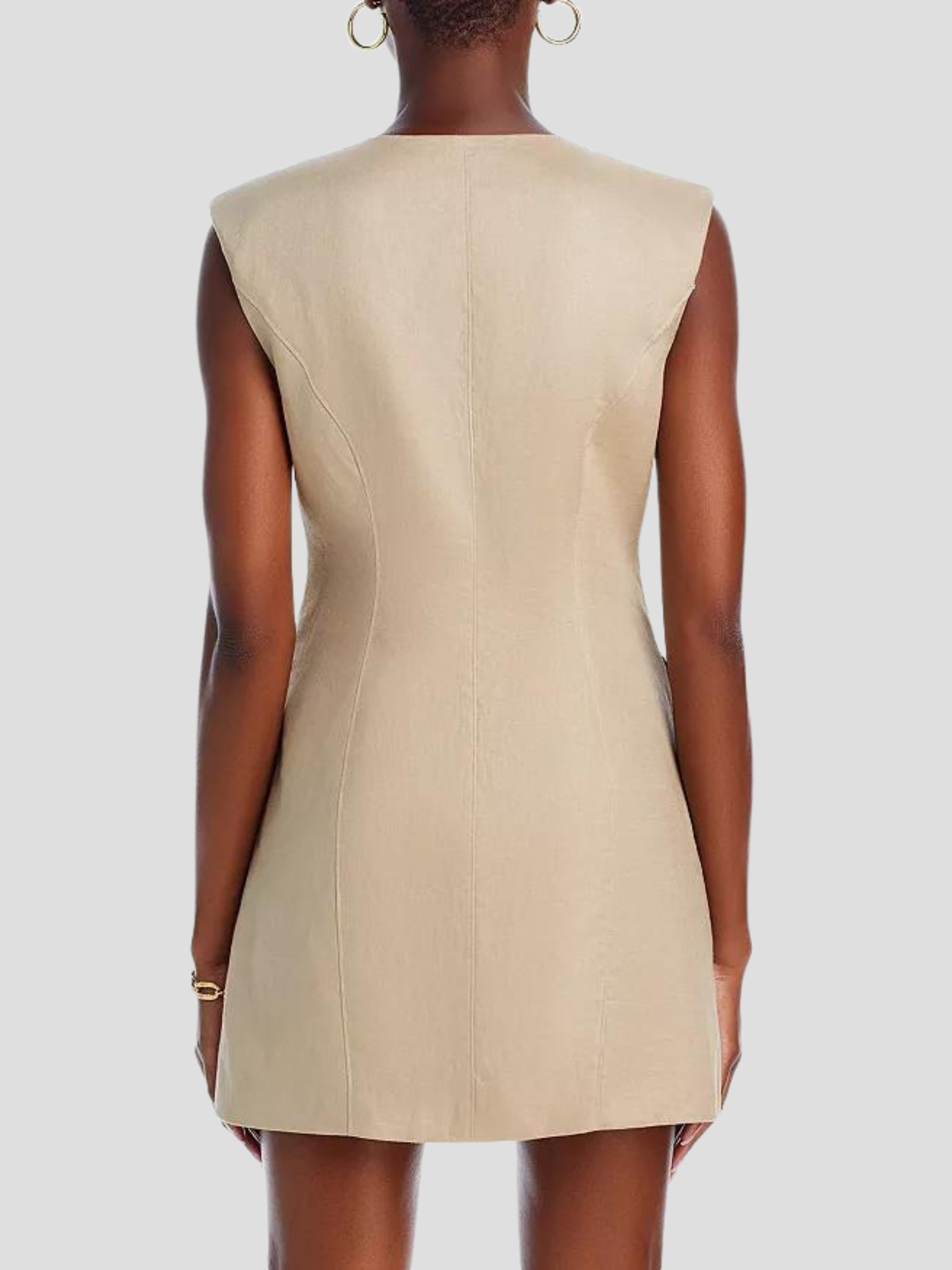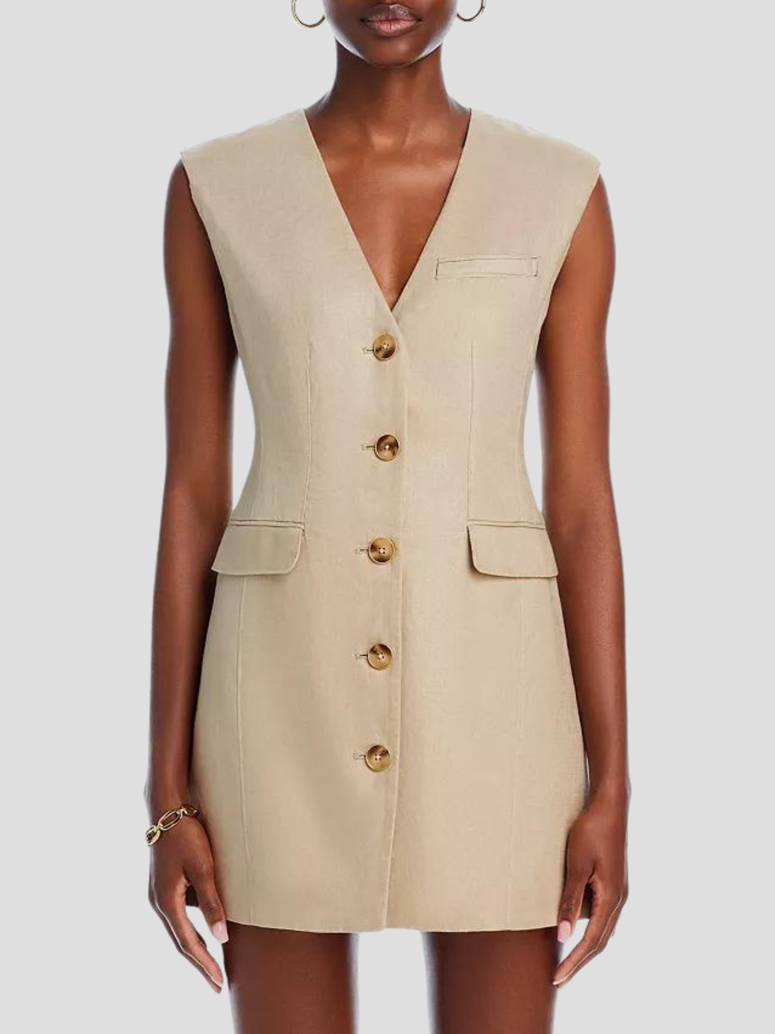 Minimalist and chic. The Hayden linen dress will keep you comfortable and cool all summer long. Strong shoulders, pockets and easy button ups provided a tailored style to this dress.
