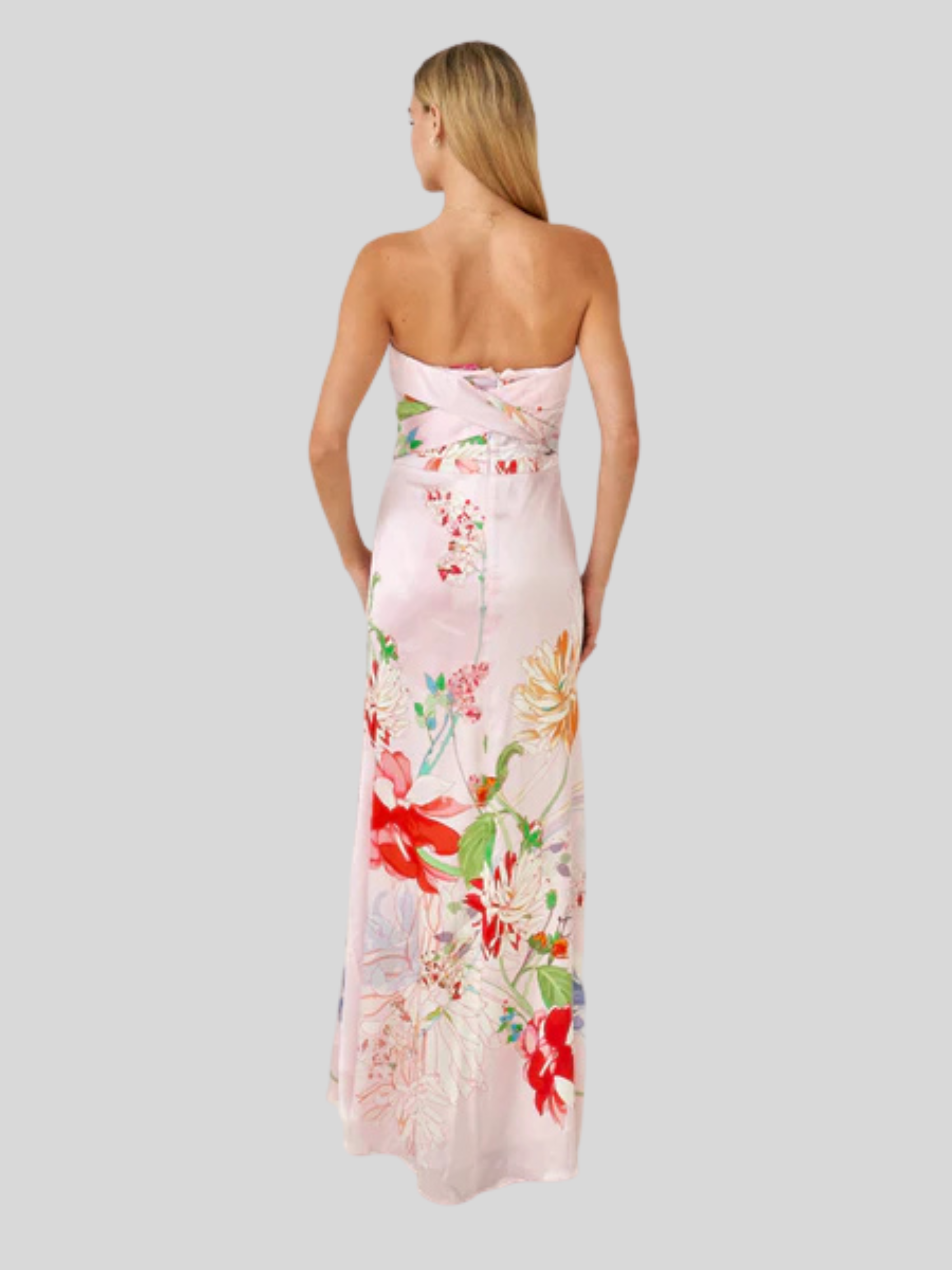 Cherie is an effortless expression of femininity, cut in fluid silk and designed to flatter the body with a clean, strapless silhouette. Softly structured through the bodice, the dress skims the figure before falling into a long, fluid line that moves beautifully with each step.