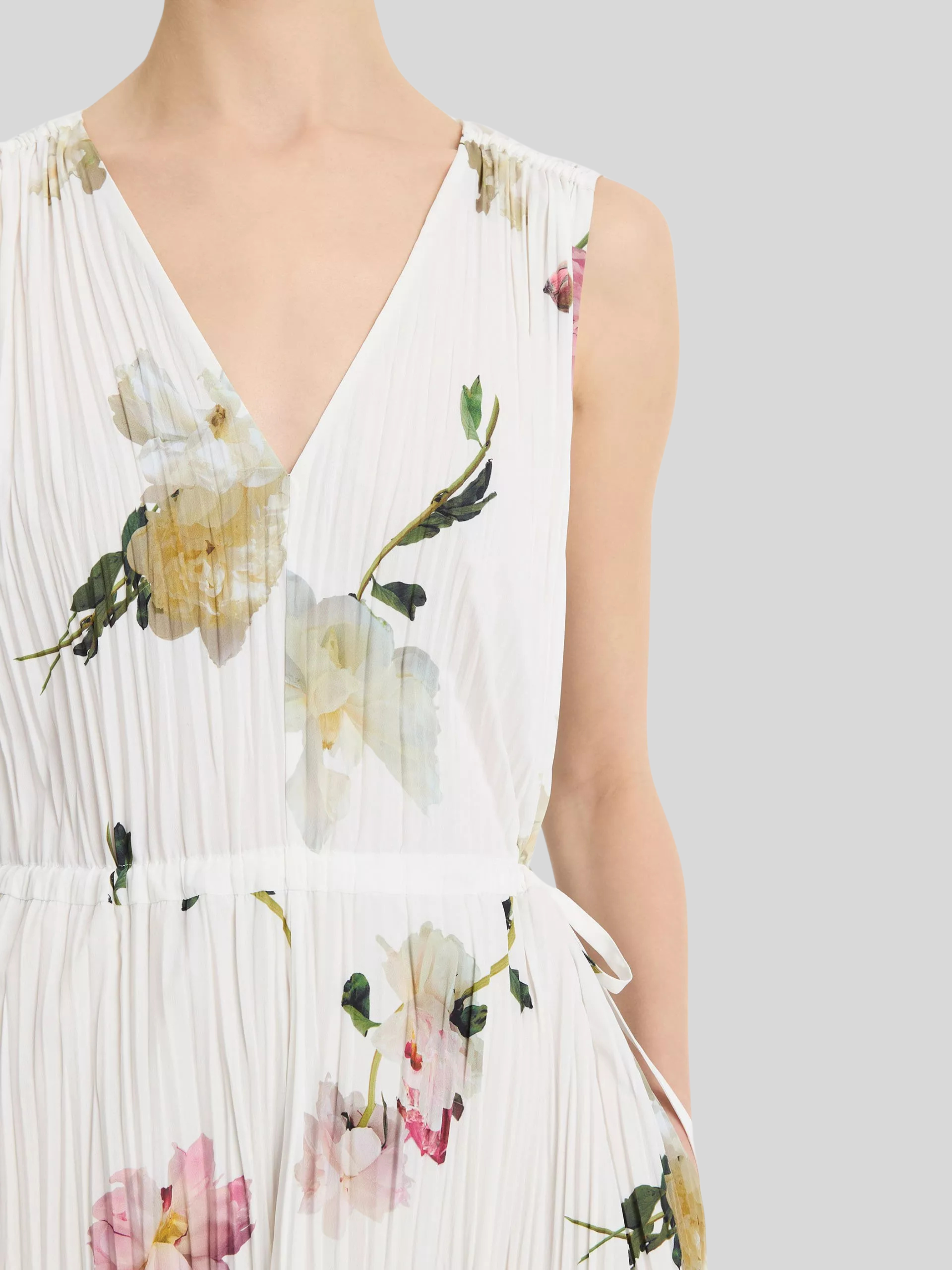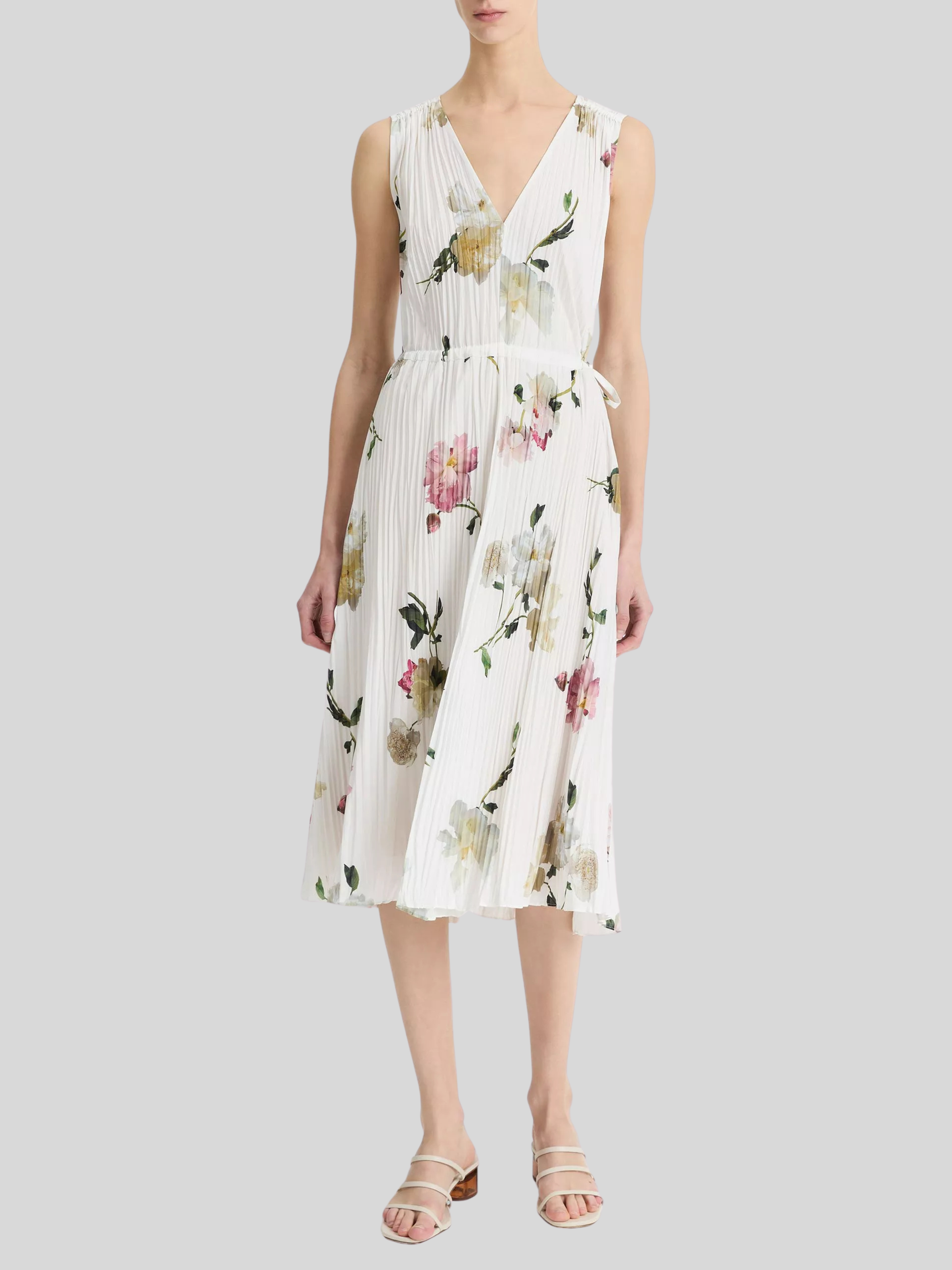 Wilted Peony Pleated V Neck Dress