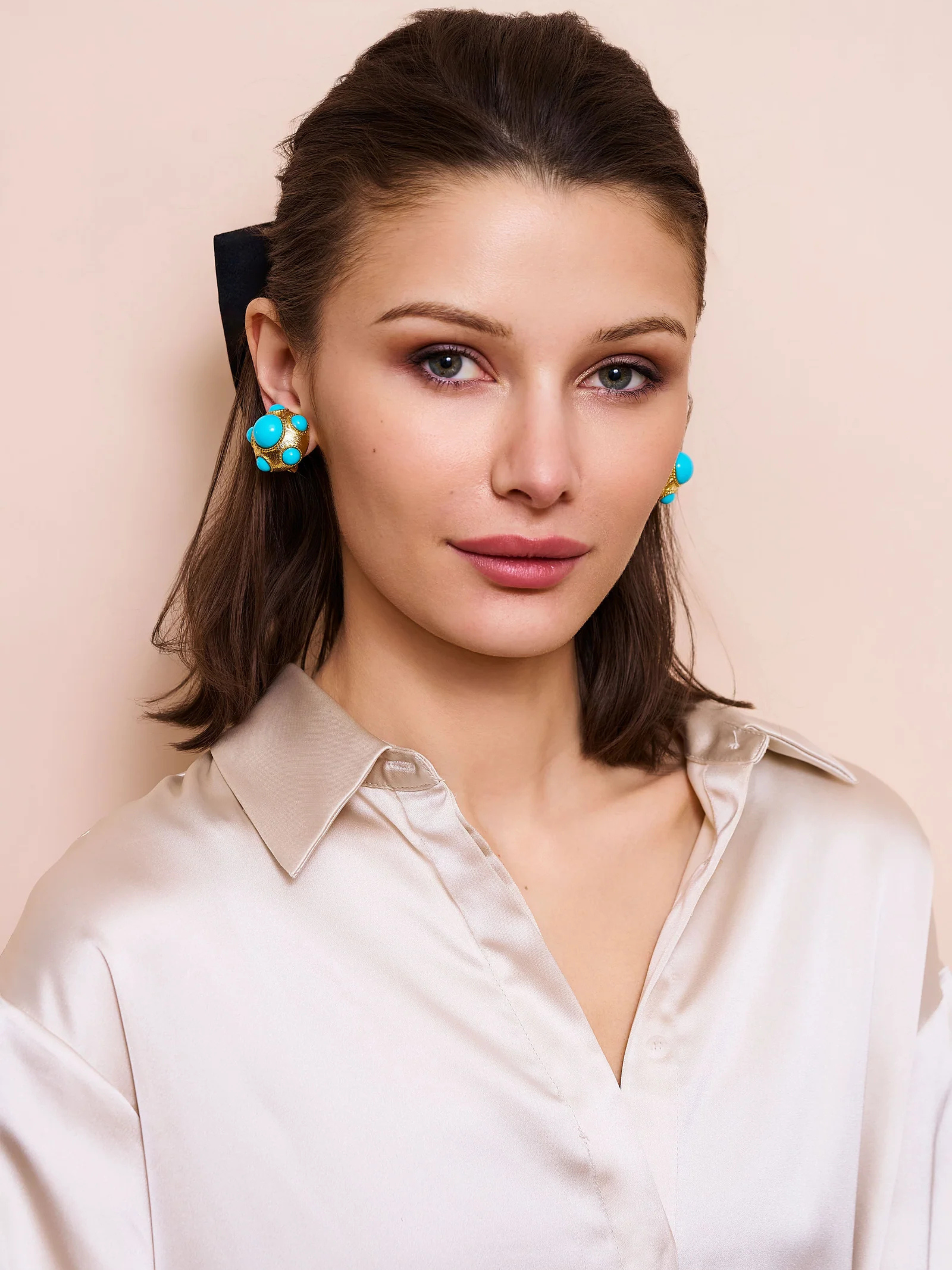 Turquoise Cabochon Clip Earrings