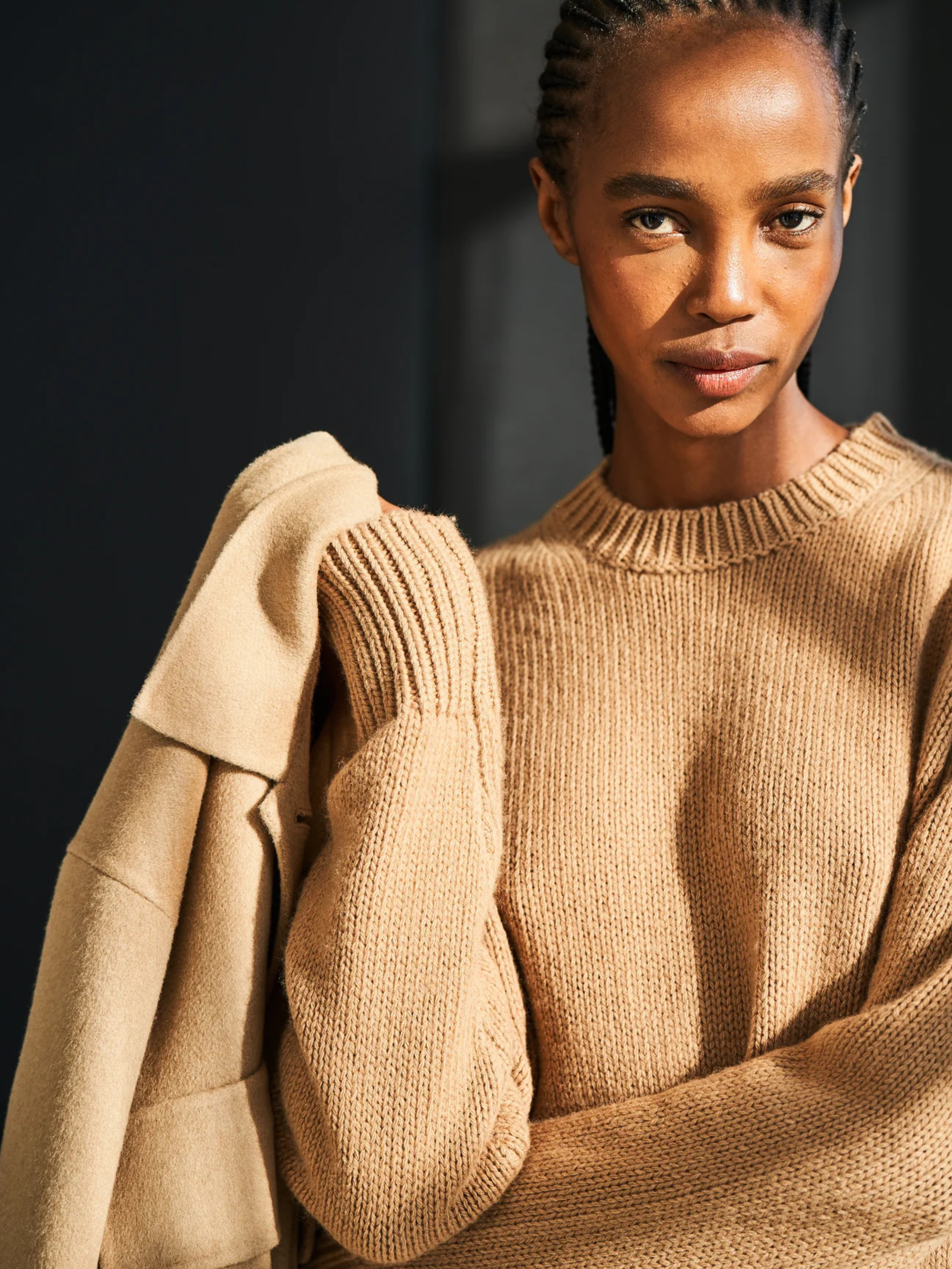 Perfect Crewneck in Looseknit Cashmere in Camel