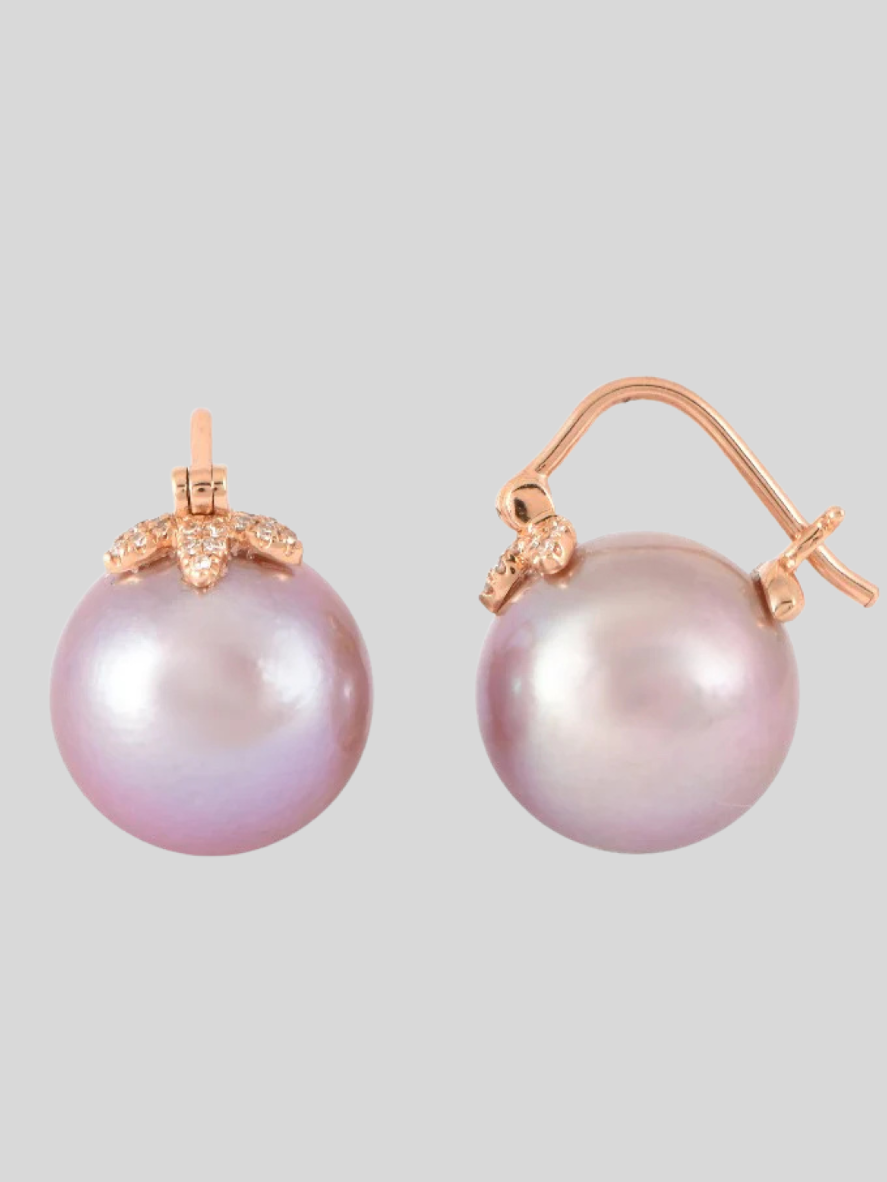 12mm Floating Pearls with 18K RG Triple Leaf Hook