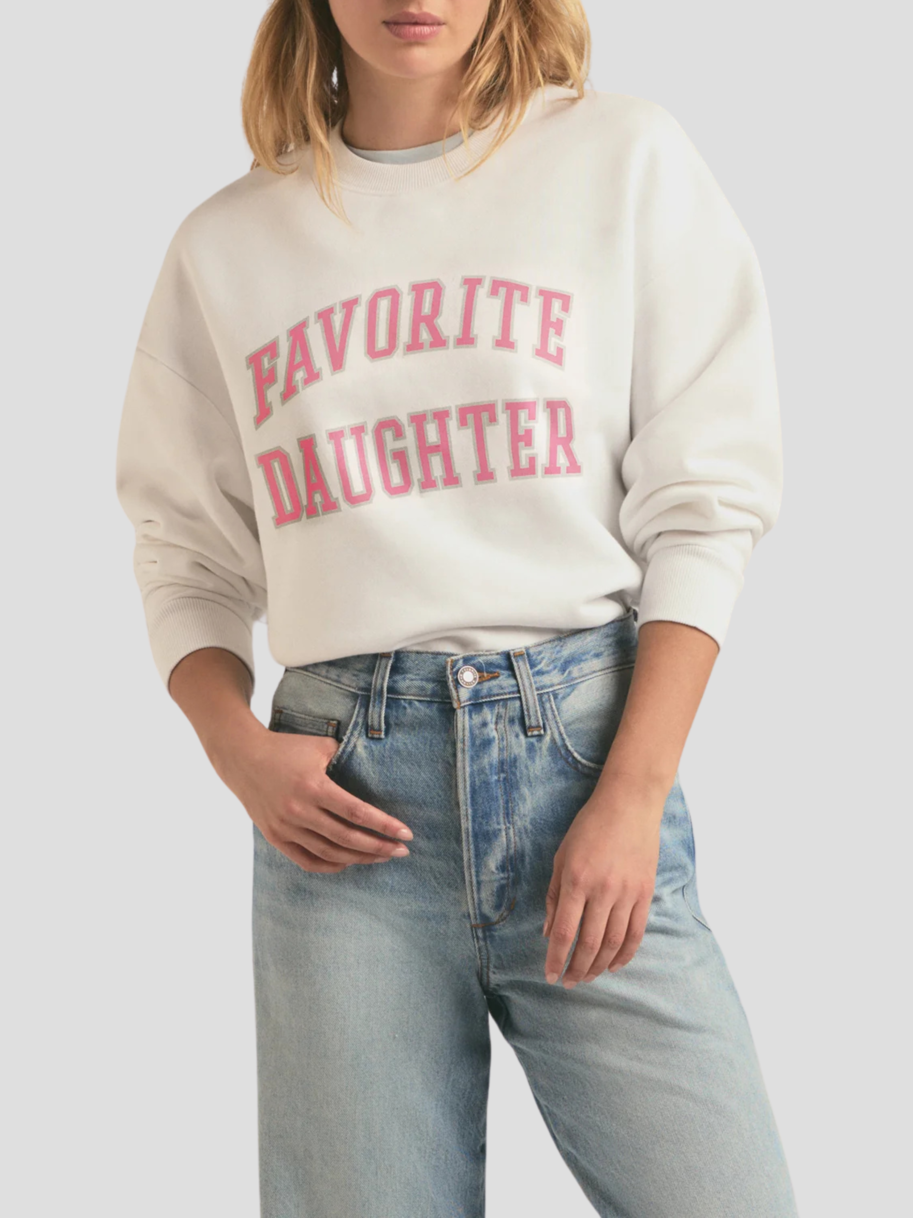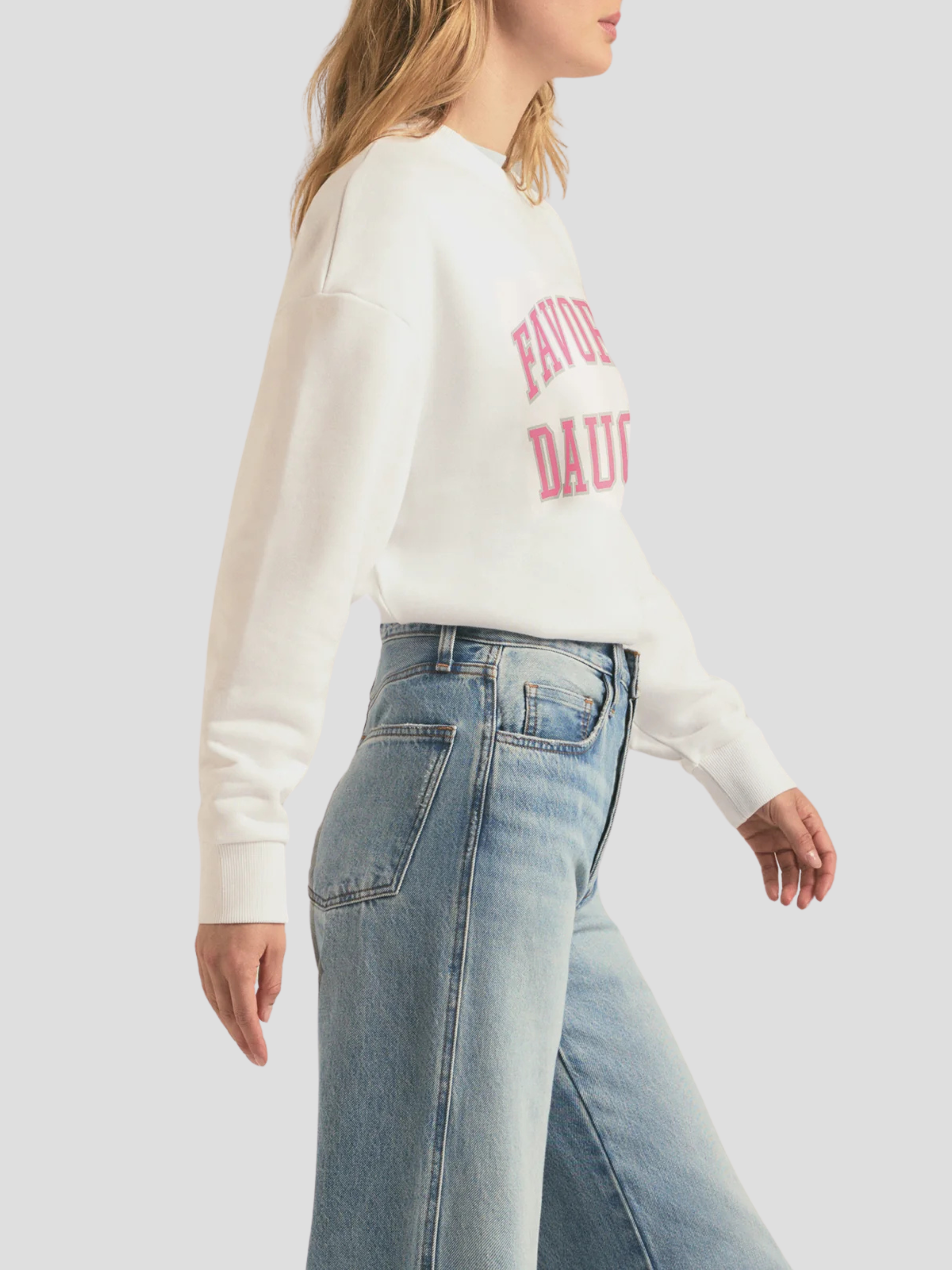 Collegiate Favorite Daughter Sweatshirt in White and Pink
