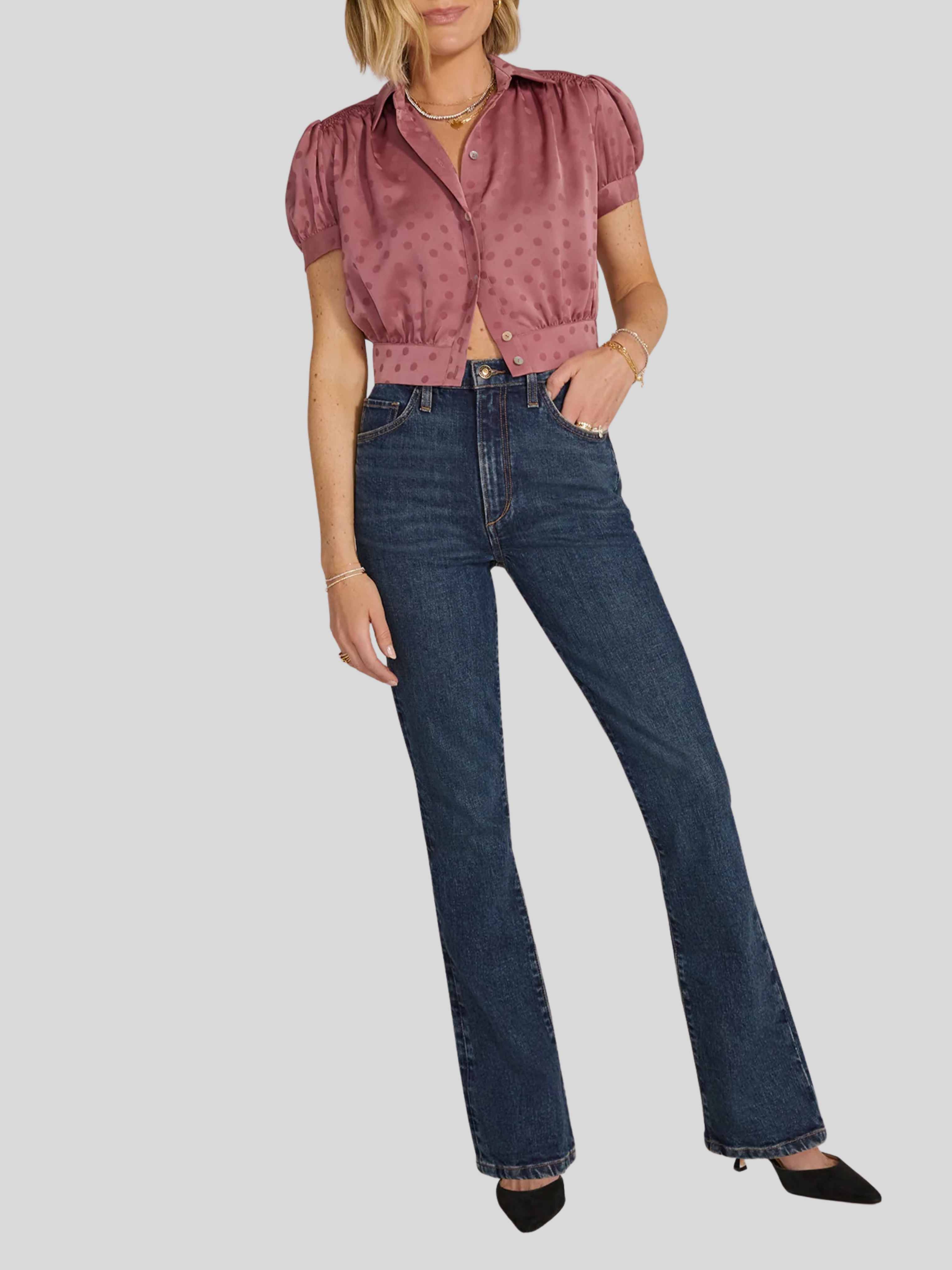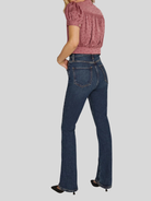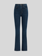 Perfectly proportioned to fit and hit the right places on a petite frame. The retro-inspired style of Woodside gives the Valentina a slimming, rich, dark blue indigo and the stretch gives this denim a well-fitted silhouette. (Gentle fading and whiskering plus Favorite Daughter embroidery on the back waistband, of course.)