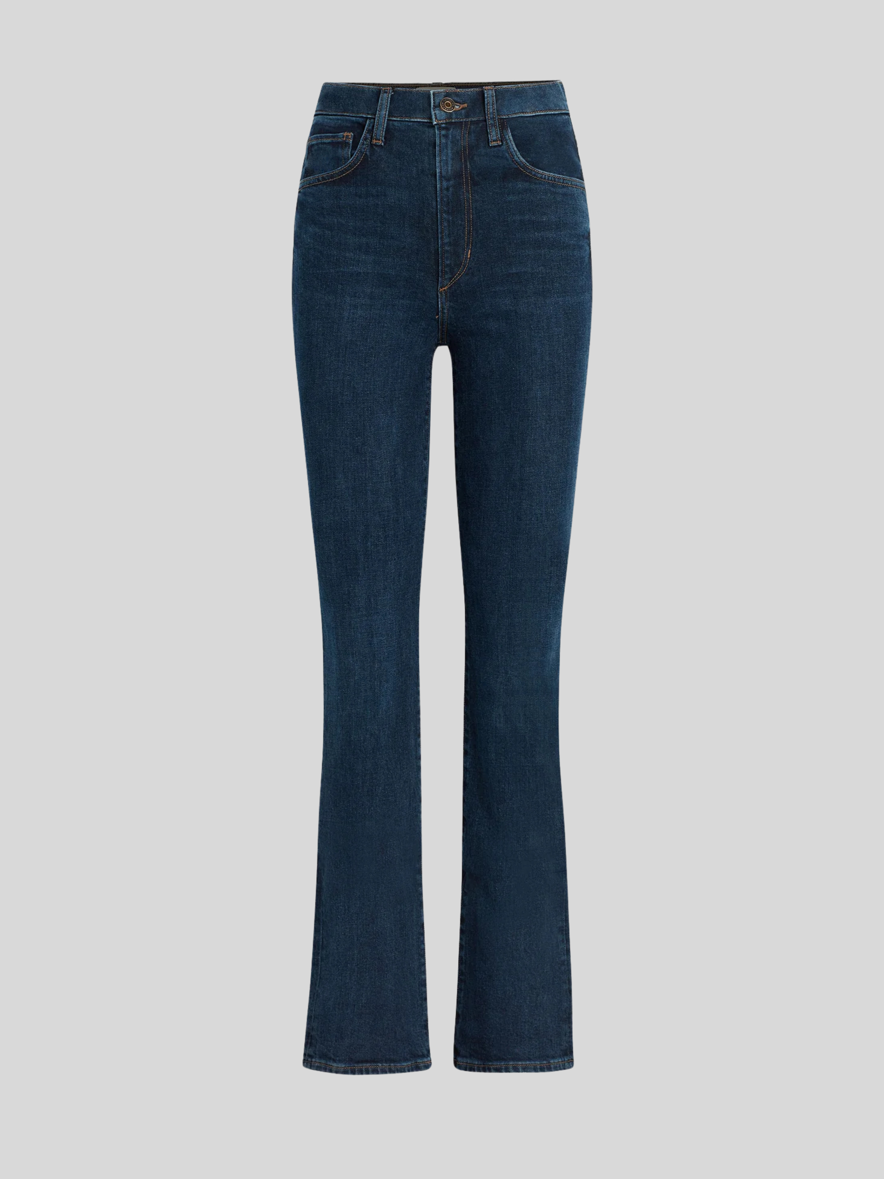 Fit Notes: Rise / Waist: extreme high rise / pinched Hips: fitted at hips Leg: slim mini boot Average Height: full length 11.25" rise 14.25" knee 16.5" leg opening 30" inseam Jordan is 5'4" wearing size 25