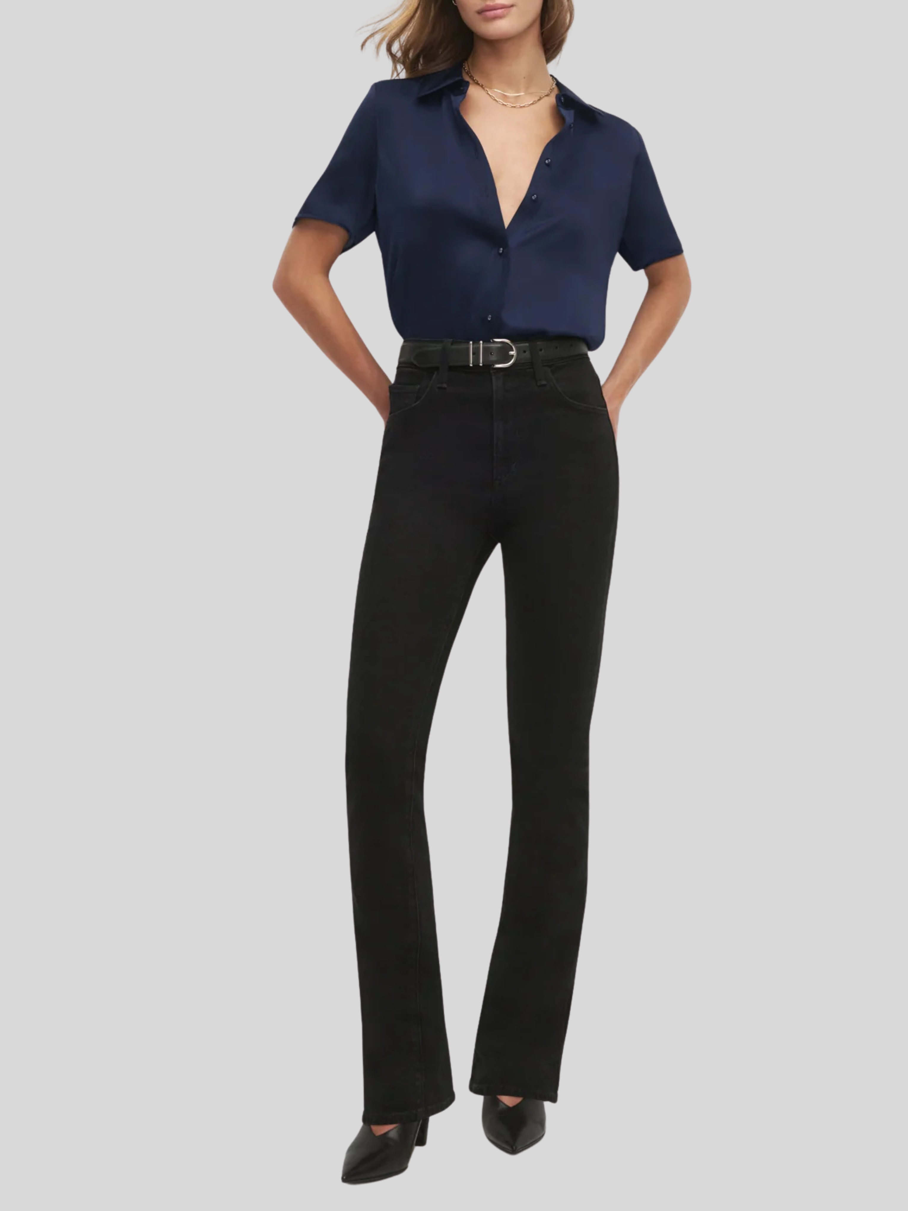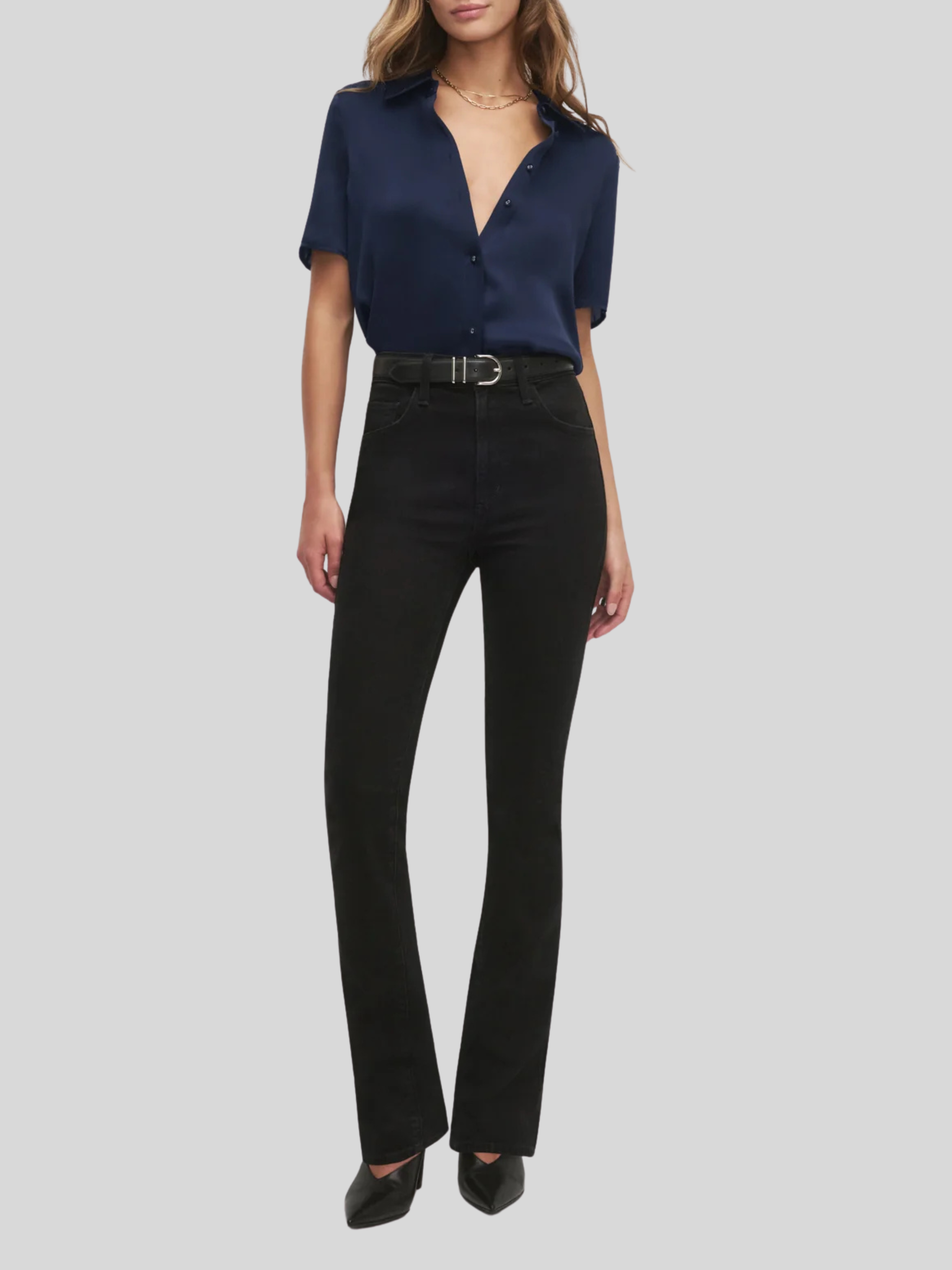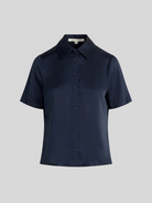 A silky, satin button-down shirt with serious style. The Take Me Seriously Top features a collared neckline and short sleeves. With a tailored fit, this Macchiato top is sure to be an everyday wear.