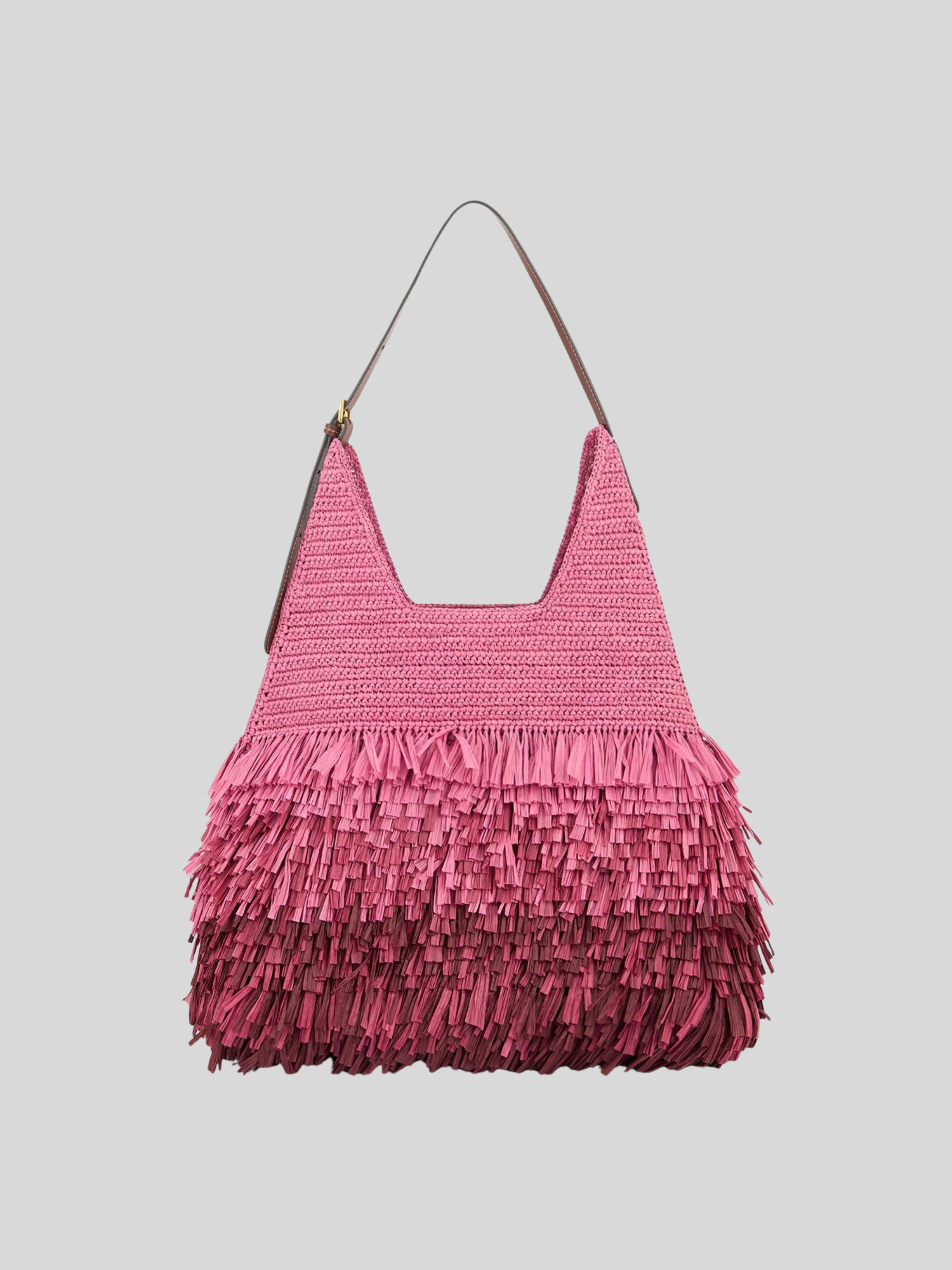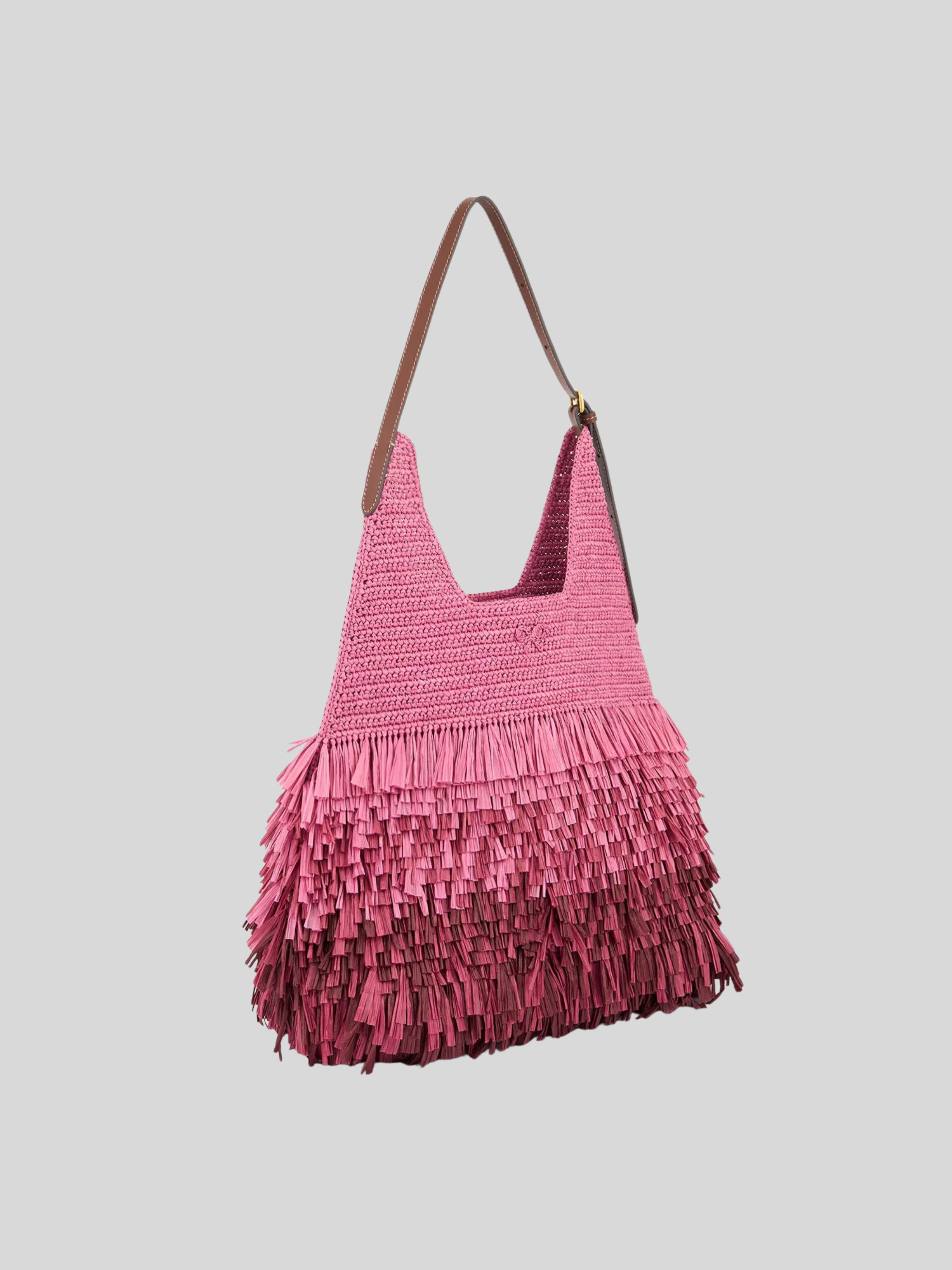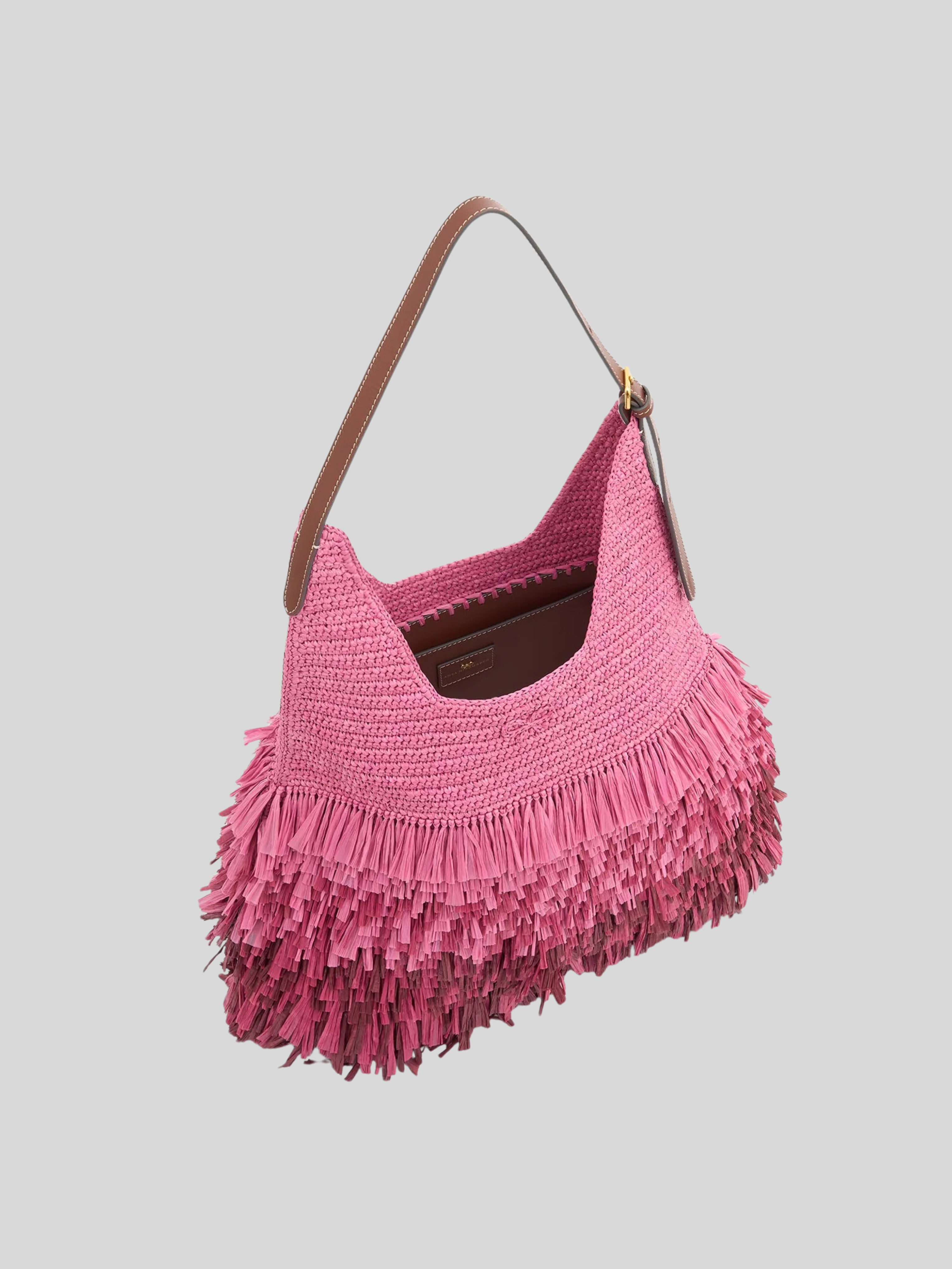 Bow Hobo Bag Shag in Bubblegum Raffia