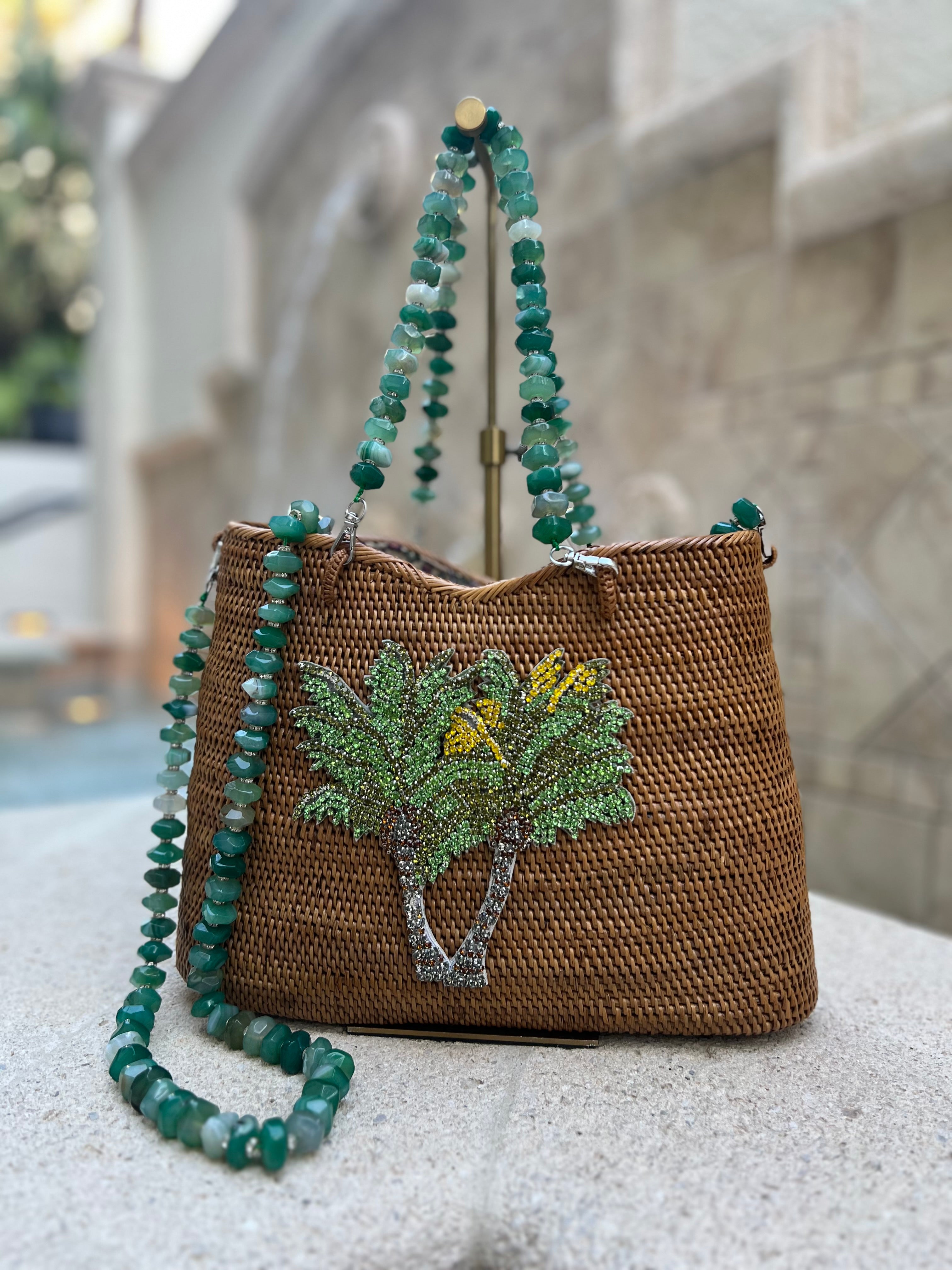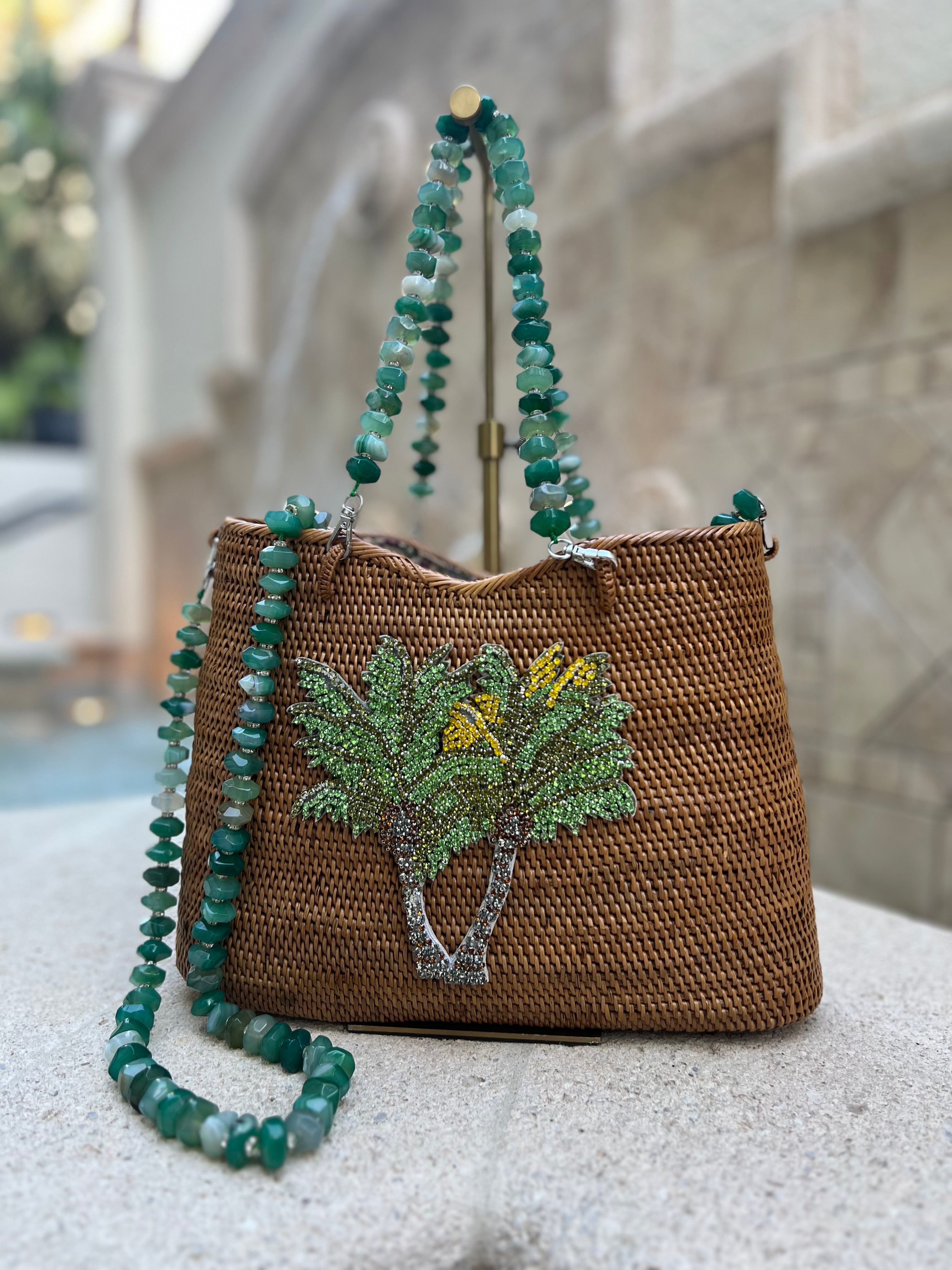Palm Tree Swarovski Handbag with Green Aventurine Handles and Straps
