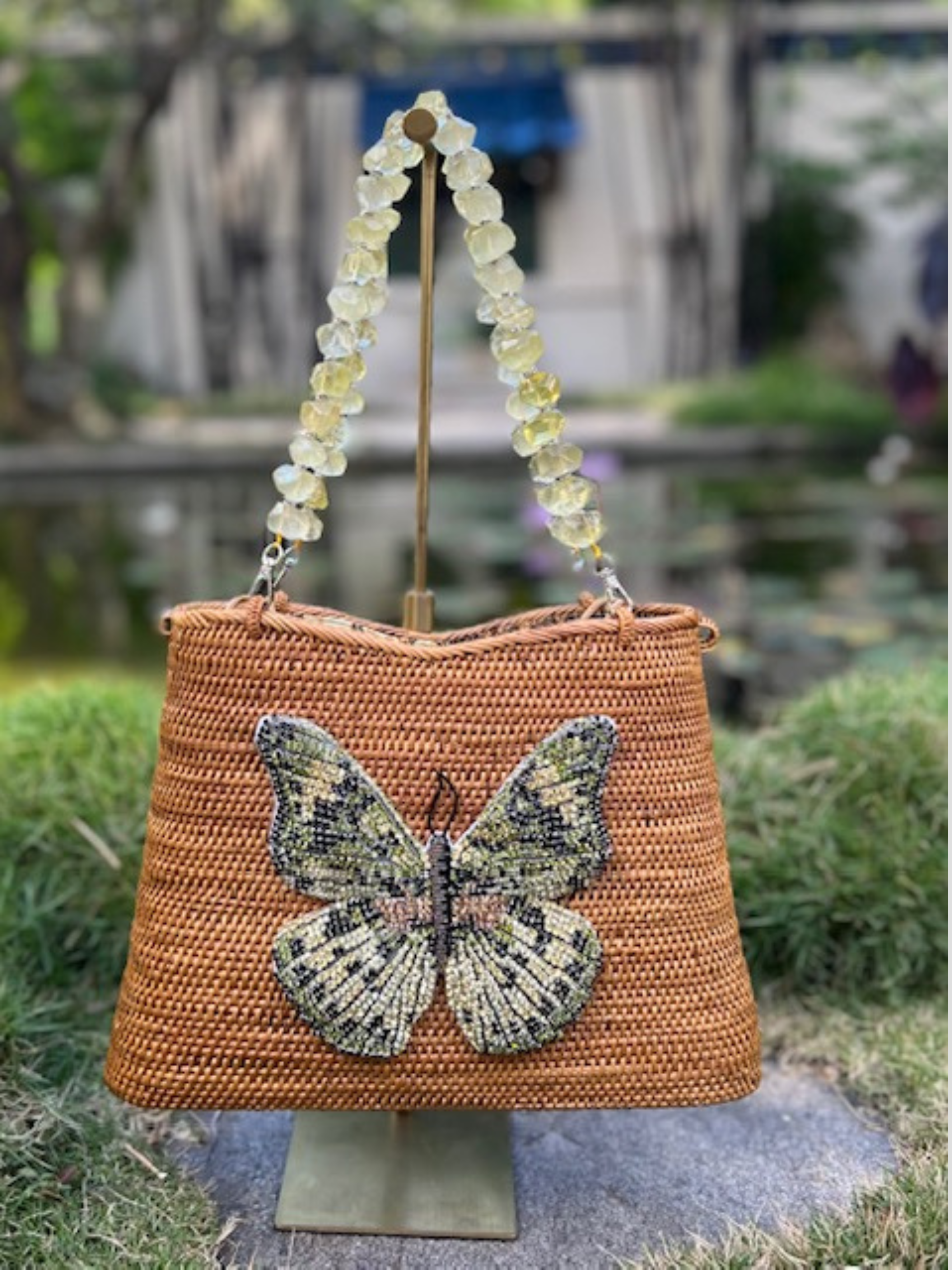 Swarovski Embroidered Euphaedra Butterfly Handbag Citrine Gemstone Handles