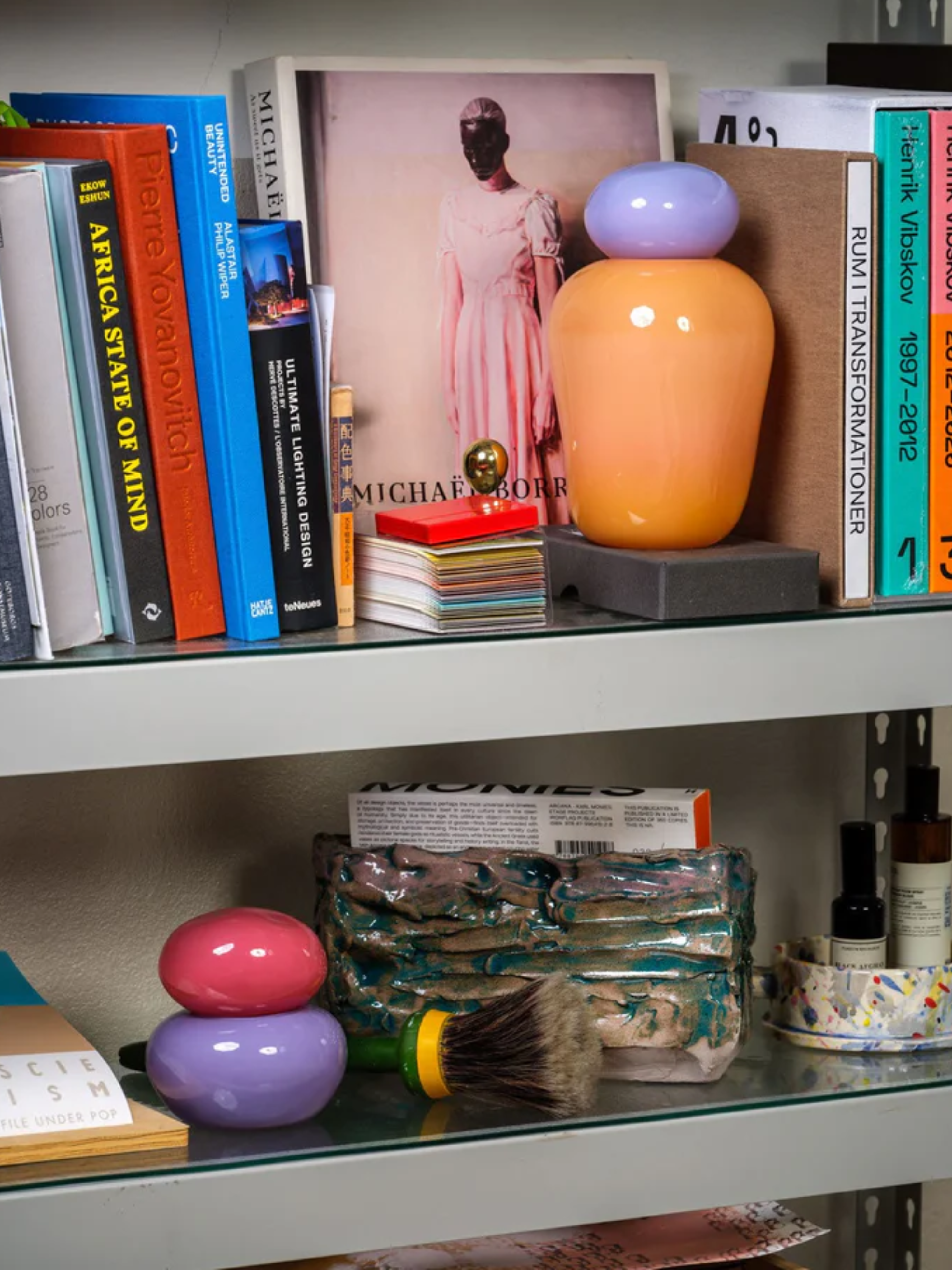 This Helle Mardahl Bonbonniere in Pink & Violet is a must-have for storing trinkets, thanks to its colorful glass lid and organic design. It's one of the first pieces designed by the expert, making it a true signature piece. Keep your small items organized with this unique and beautiful Bonbonniere.