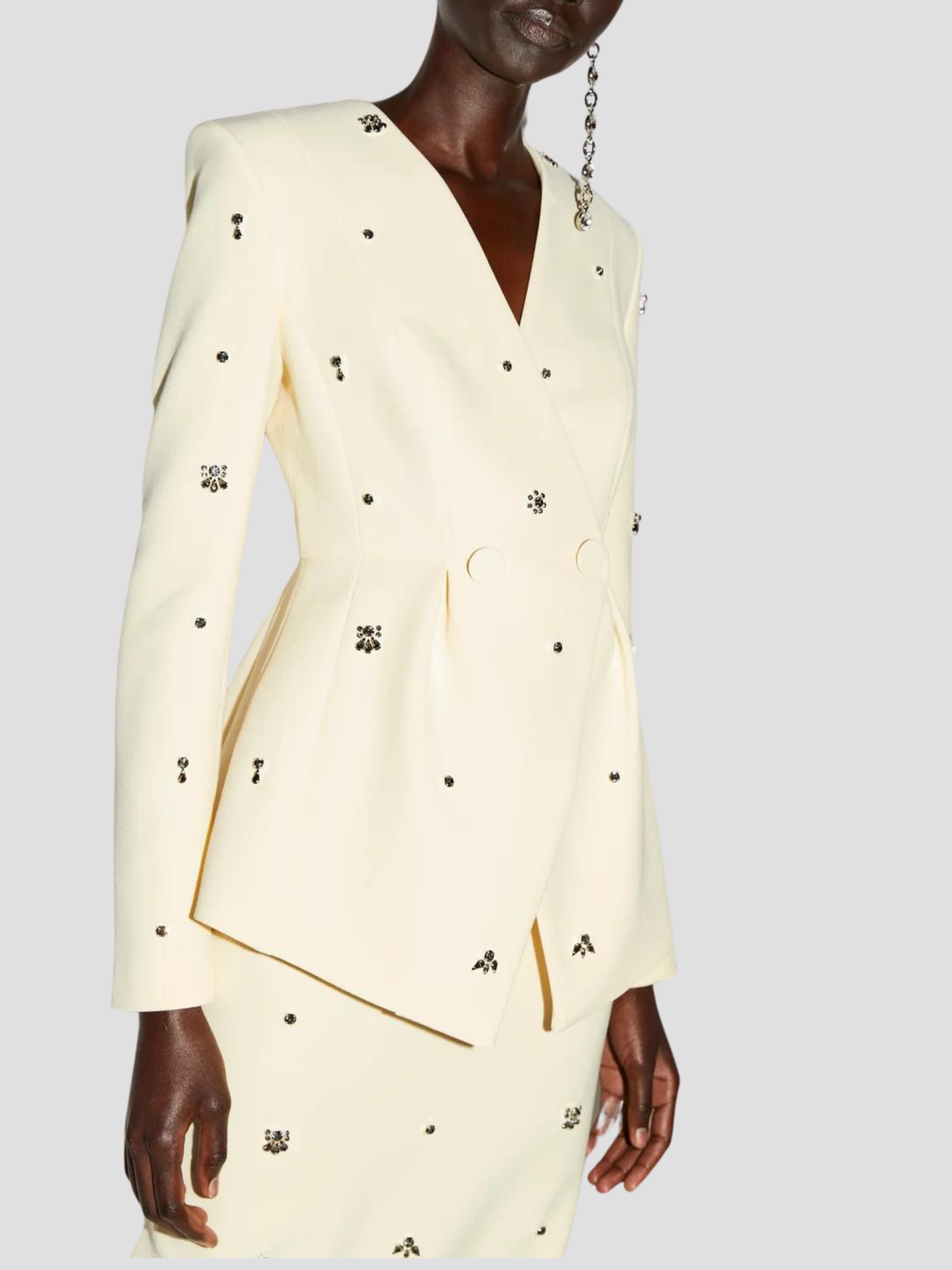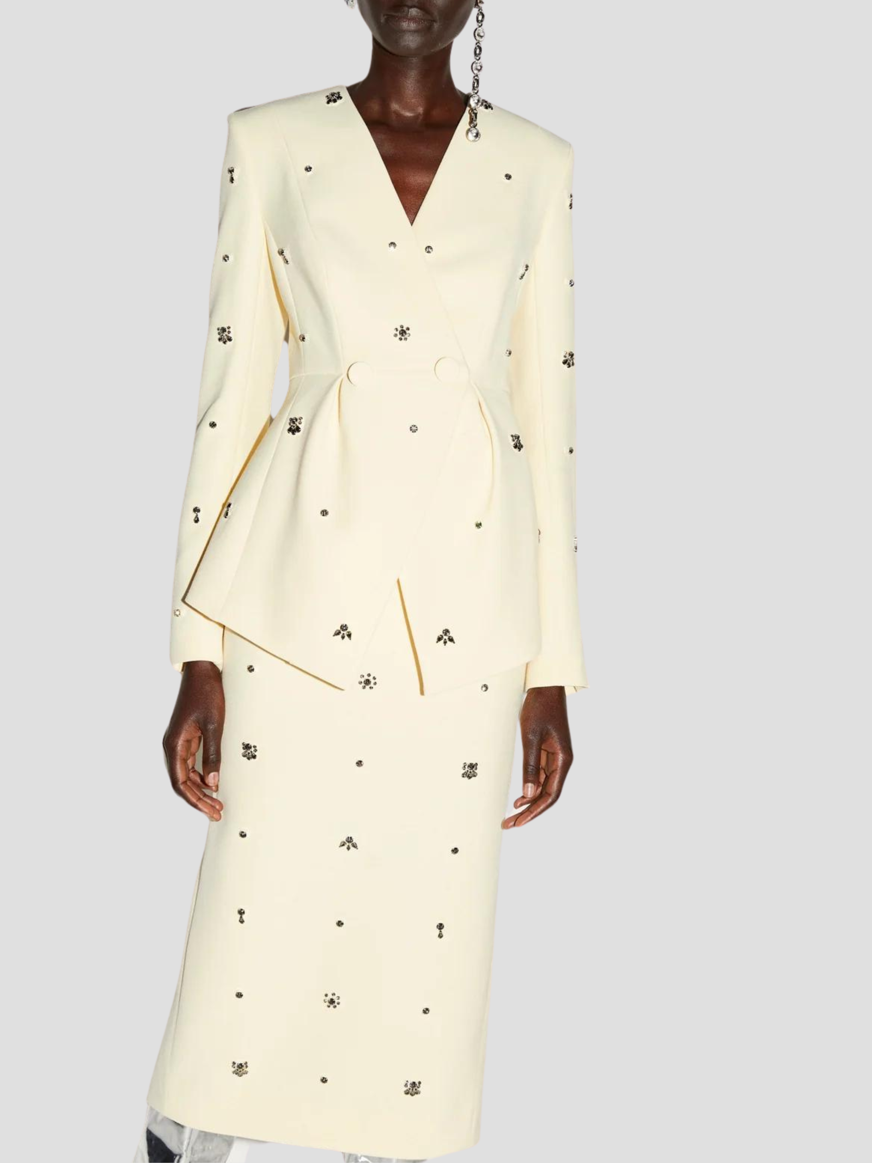 Thalia Gem-Embellished Midi Skirt in Yellow