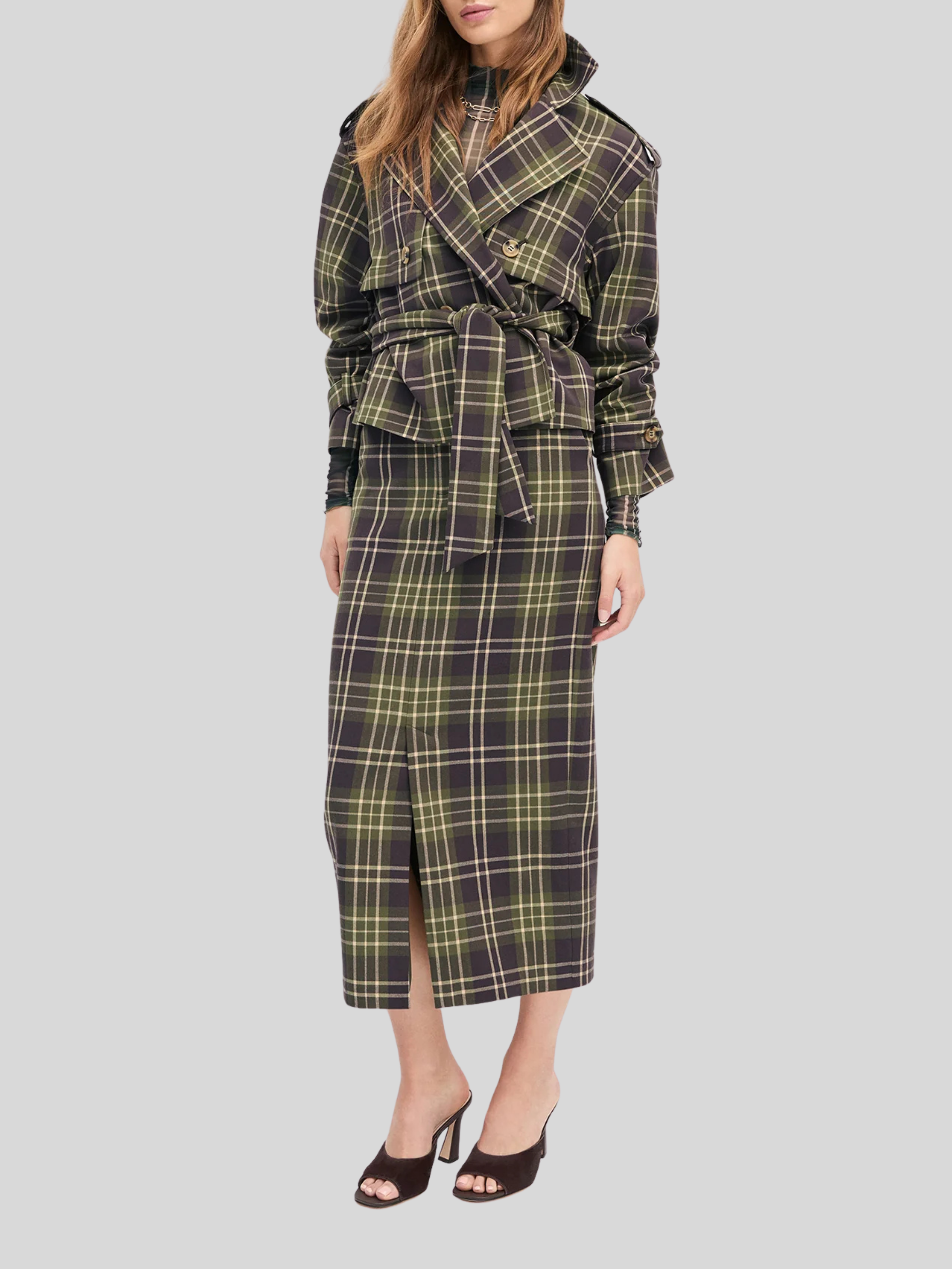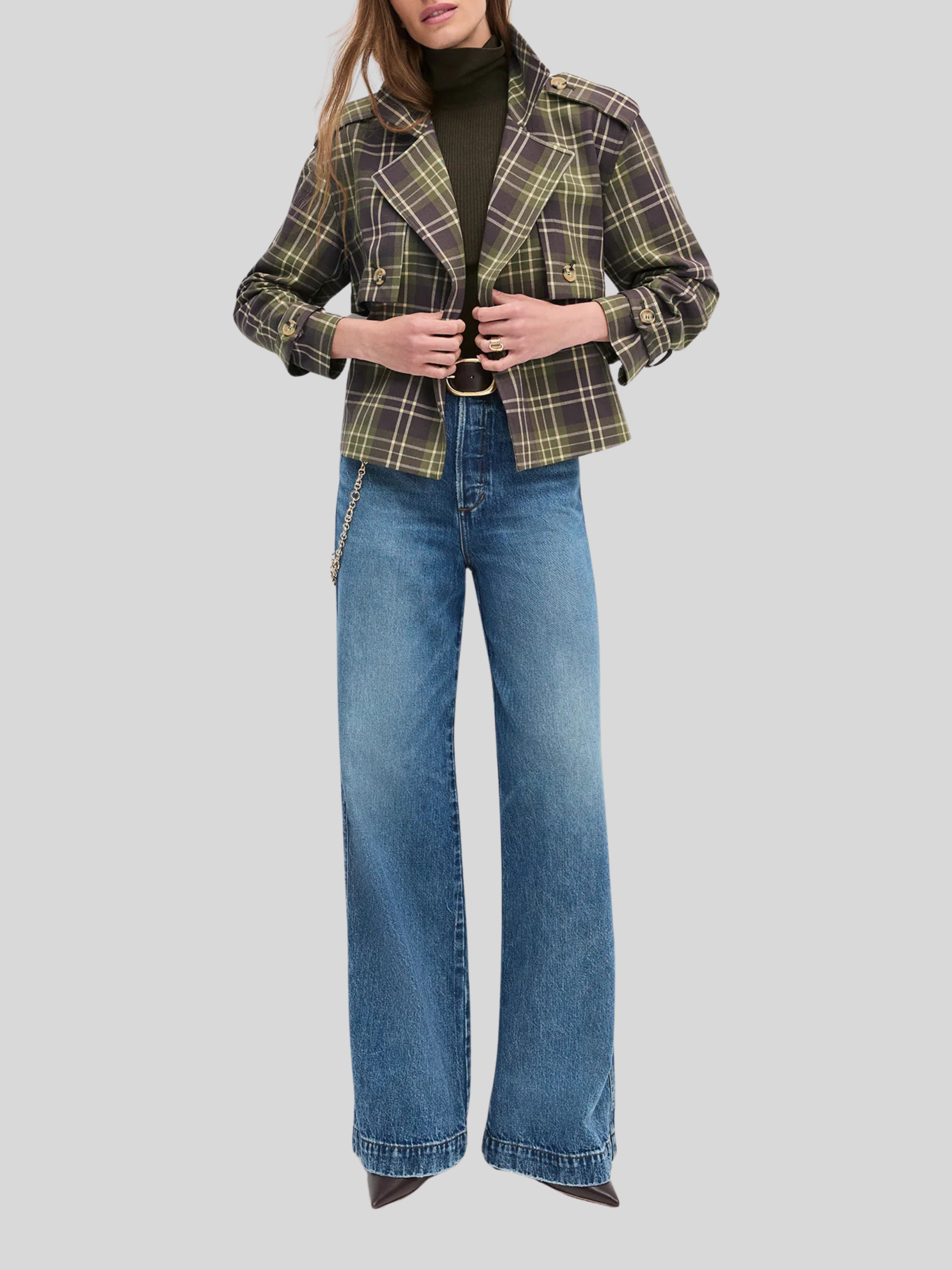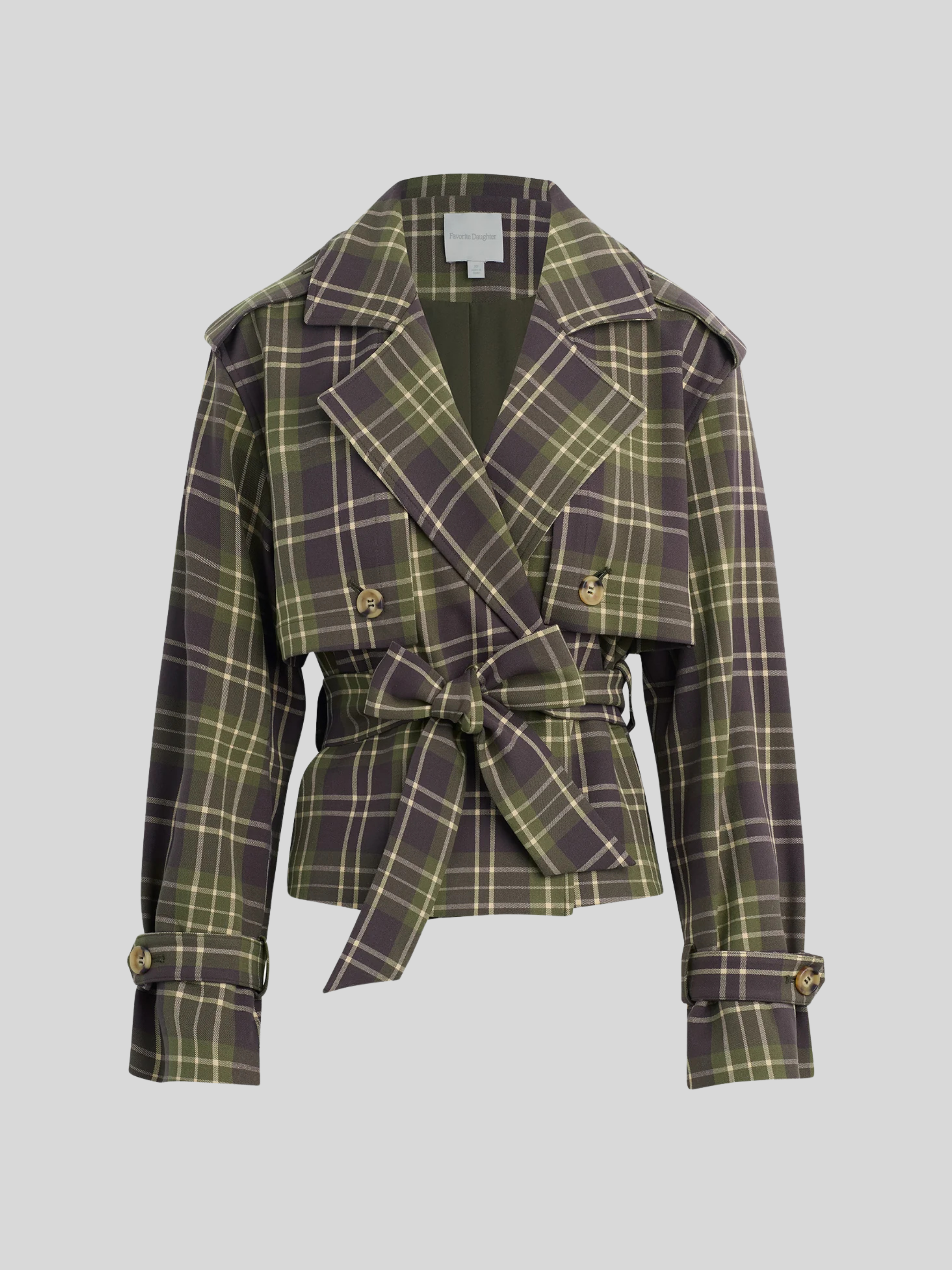 The timelessness of The Charles Trench will make it the most chic and classic article of clothing in your closet. Our latest rendition has a cropped length, cut from a yarn-dyed plaid with a slightly boxy silhouette and cinchable waist belt. The double-breasted style is finished with faux horn buttons and matching lining.