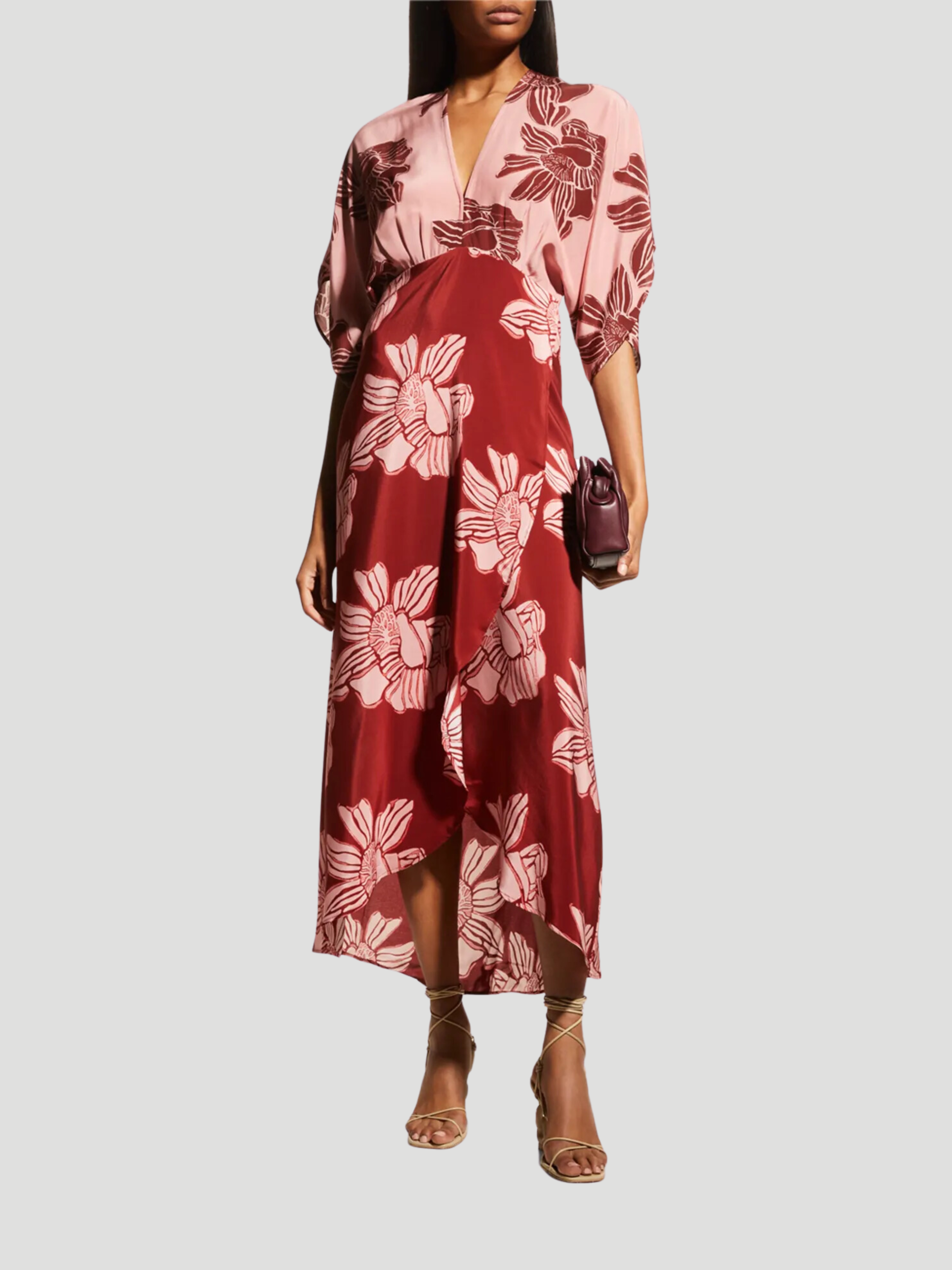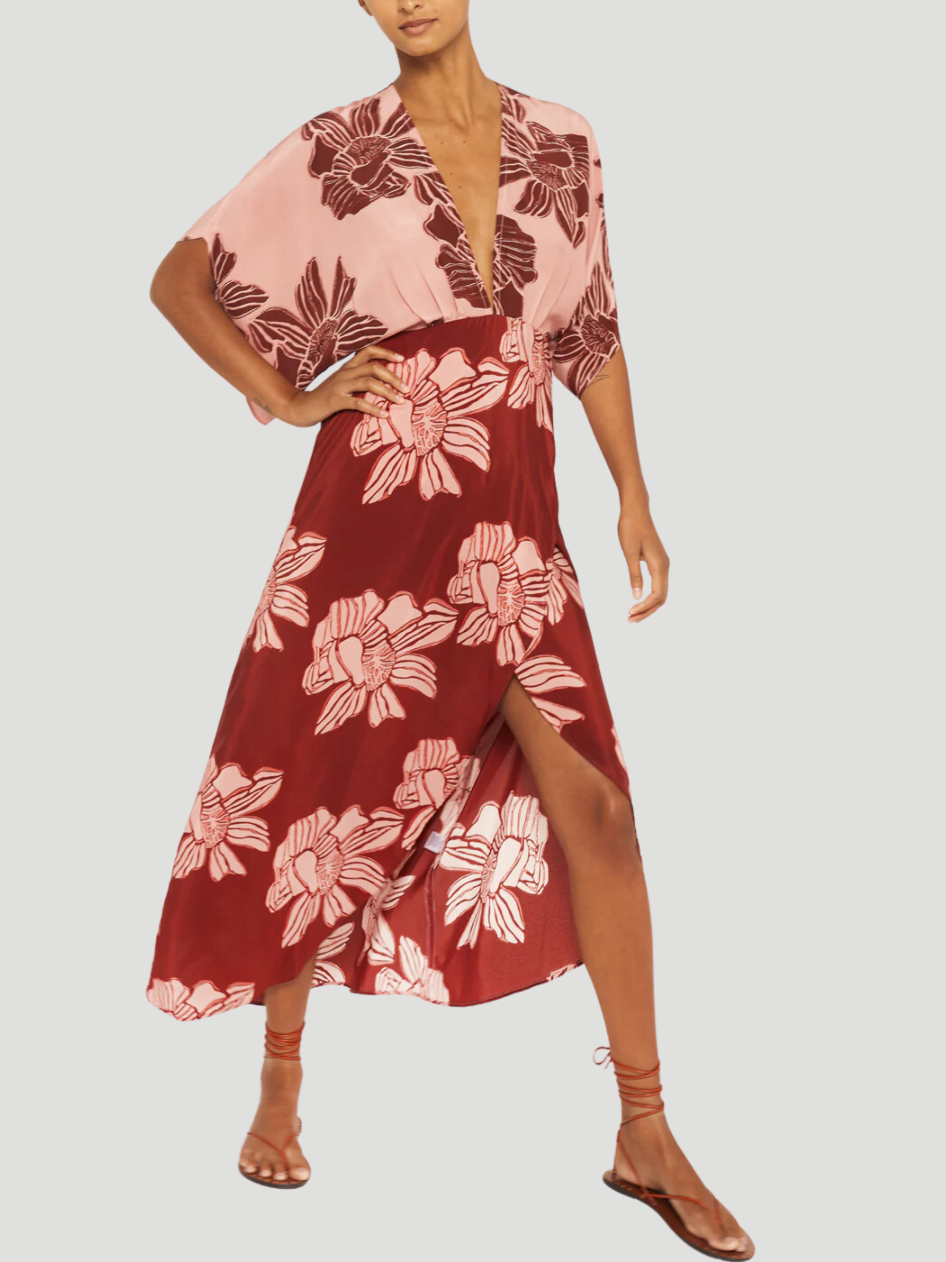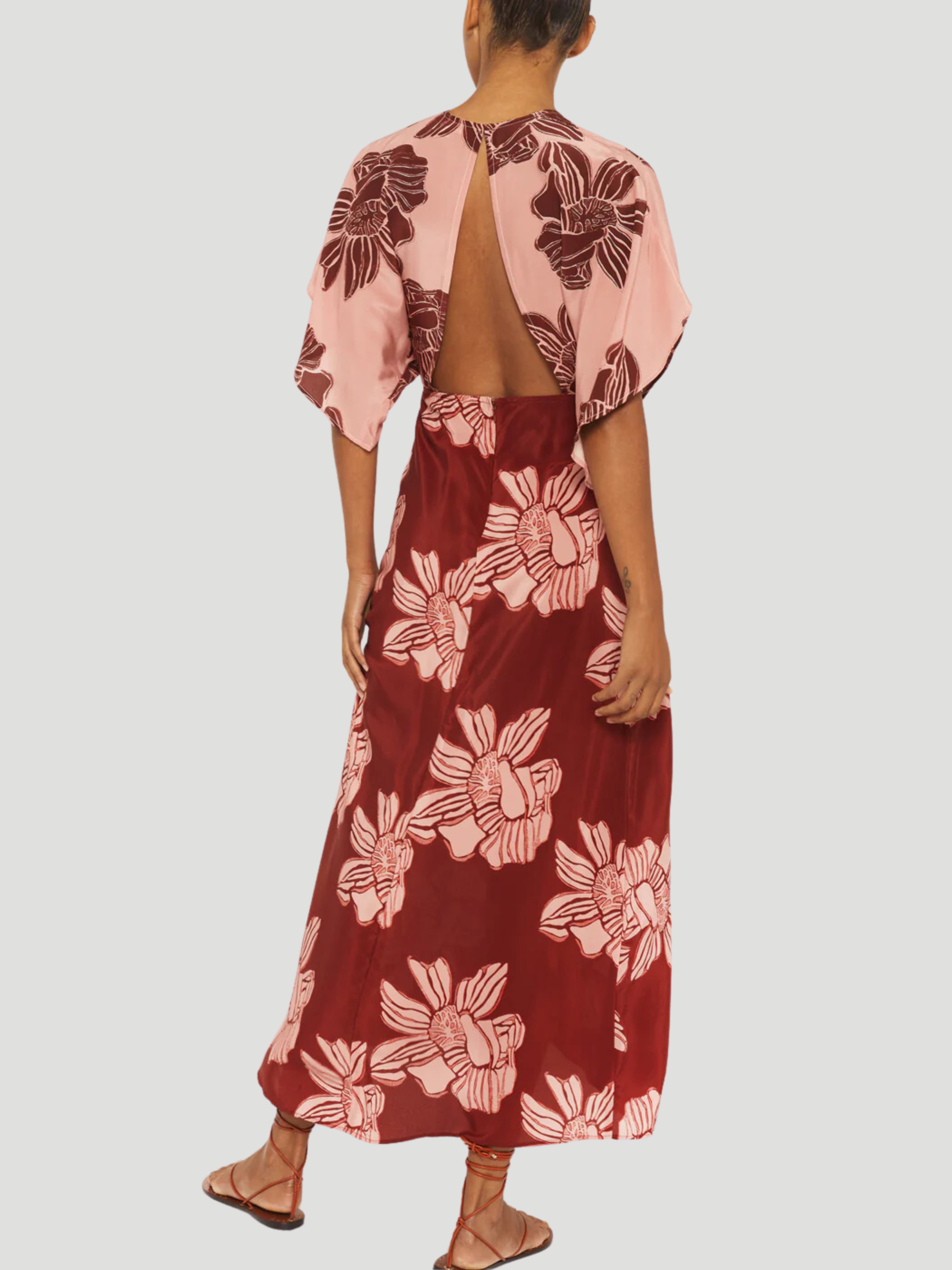 Katherine Pink Floral Kimono-Sleeve Silk Maxi Dress