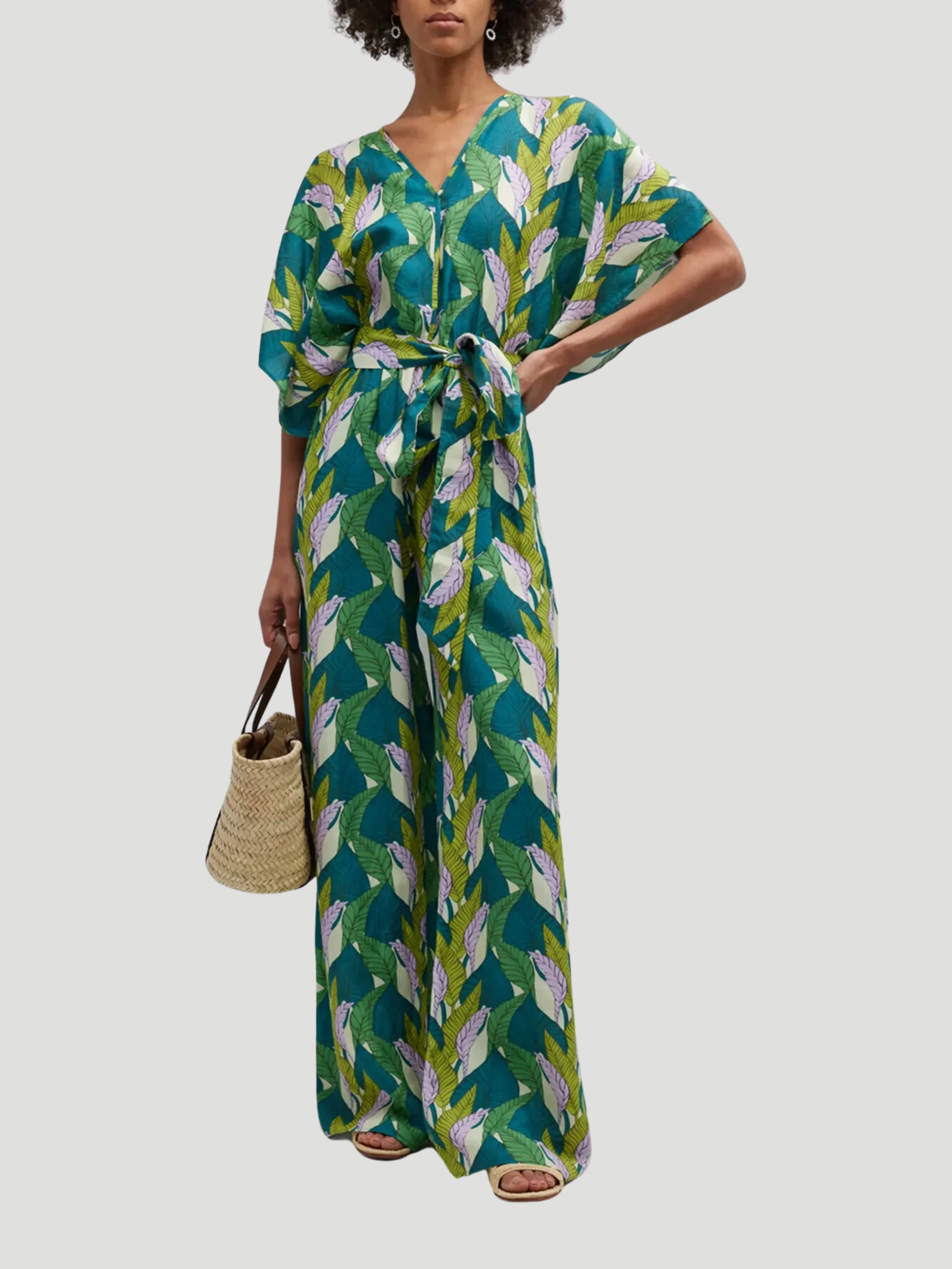 Expertly designed with an elastic waist, pockets, and front snaps, the Natasha Linen Cotton Jumpsuit from Jaline is both convenient and stylish. Complete with a self obi belt and extra length for tall women, this jumpsuit offers a flattering and versatile option for any occasion.