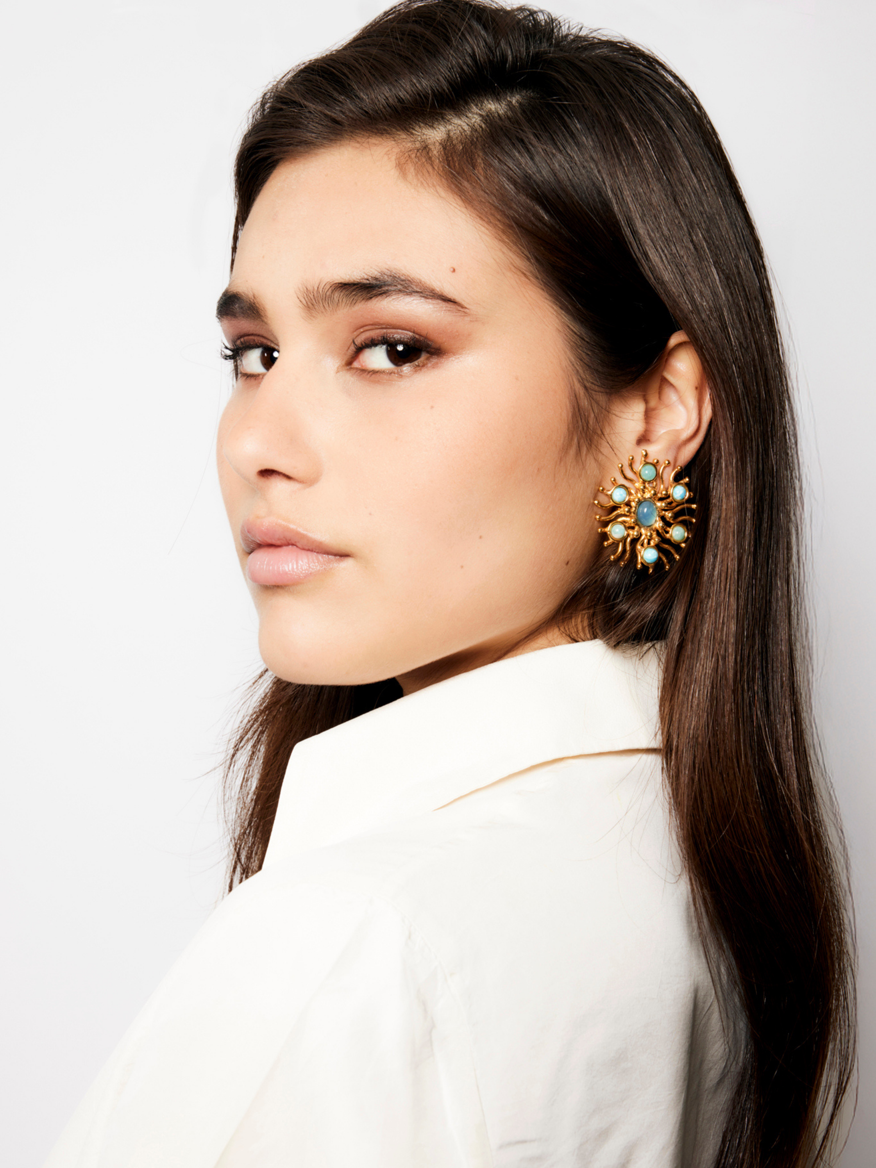 Boucles d’oreille/ Earrings: “Sunshine” – Pierre/Stone: Calcedoine/ Larimar