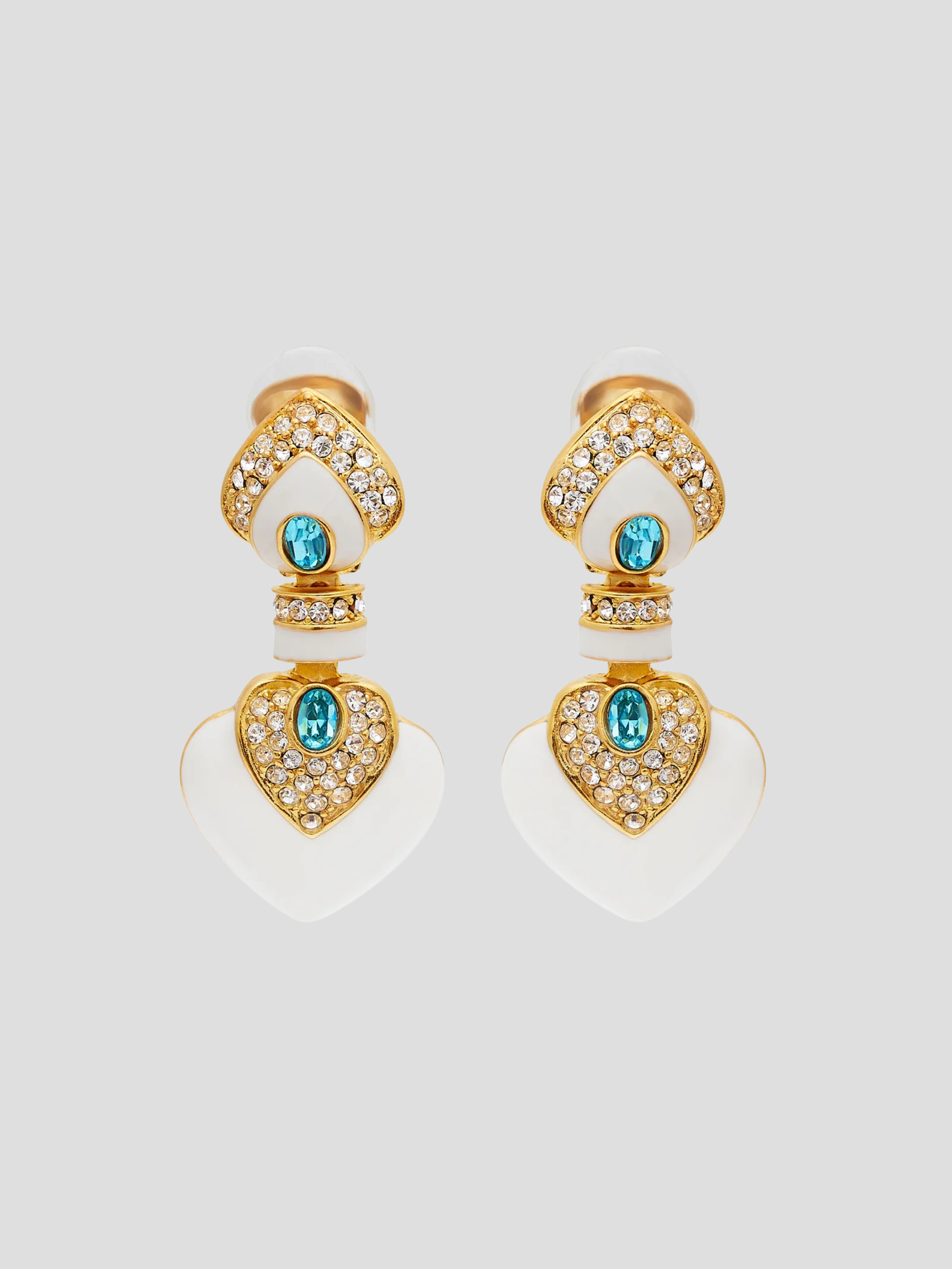 Elevate your ensemble with a touch of romance and sophistication with our White & Aqua Heart Drop Clip Earrings. Crafted with meticulous attention to detail, these earrings feature charming heart-shaped drops adorned with luminous white and aqua accents, exuding a playful yet elegant allure.
