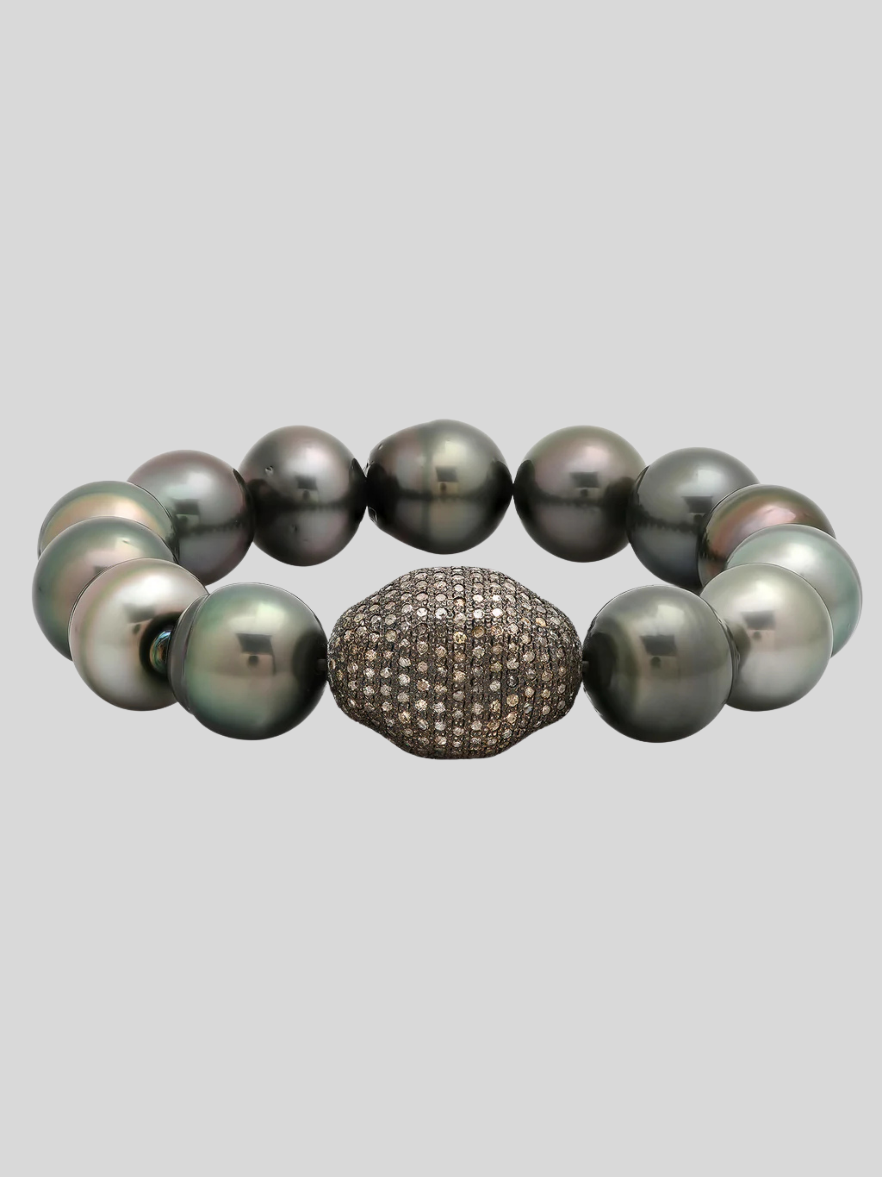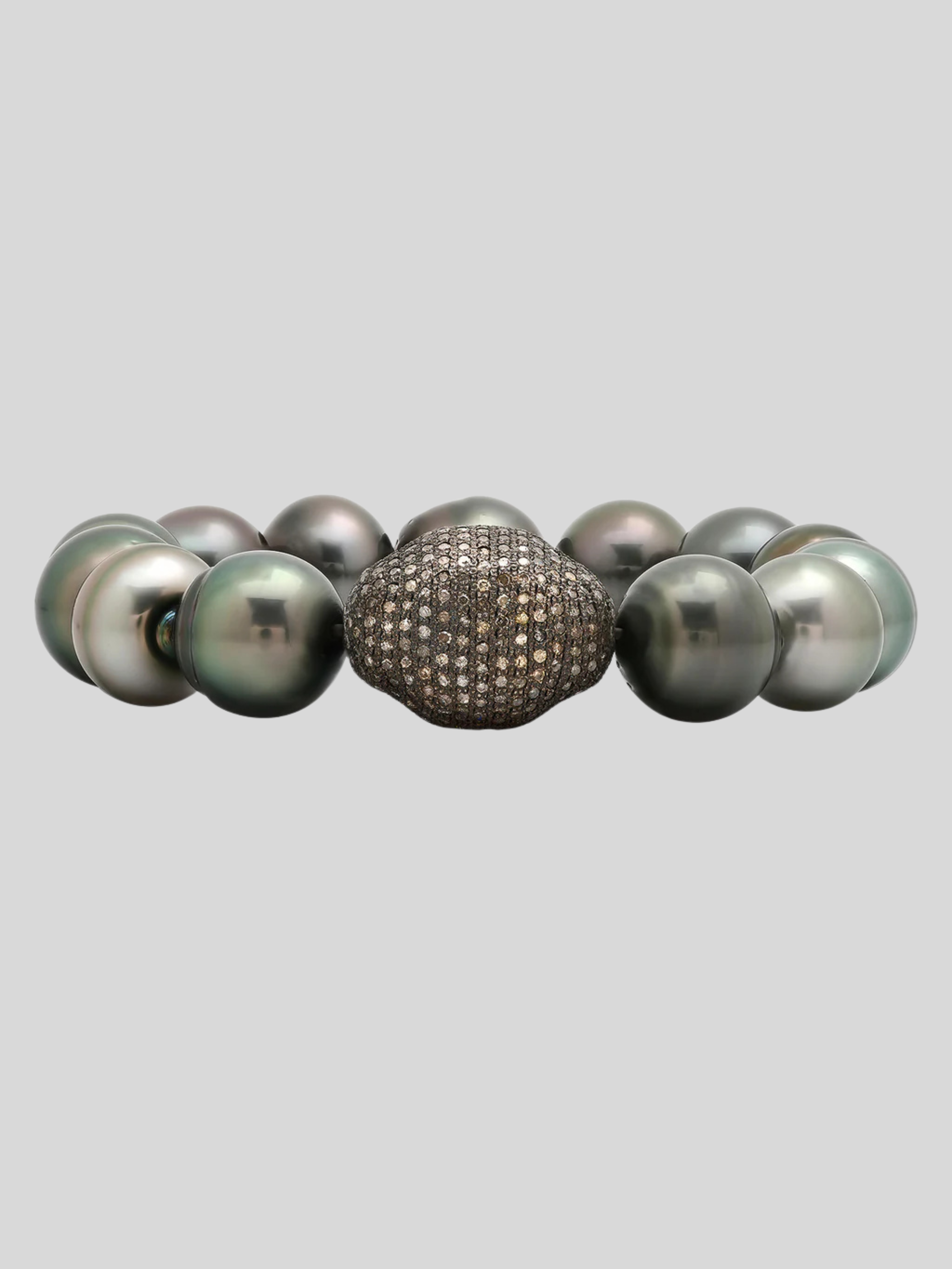 Pave Diamond Sterling Silver Rock Tahitian Stretch Bracelet